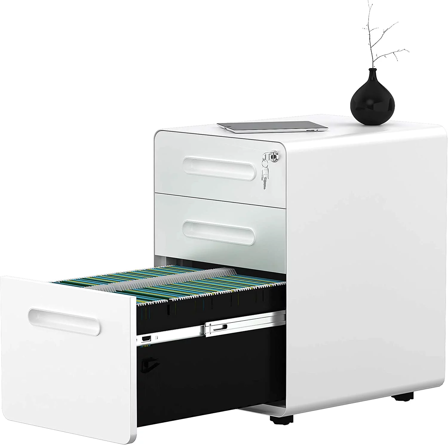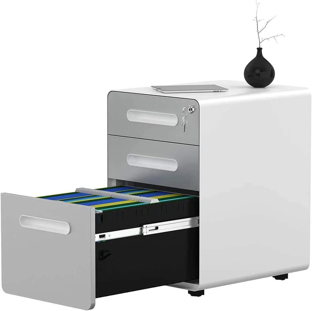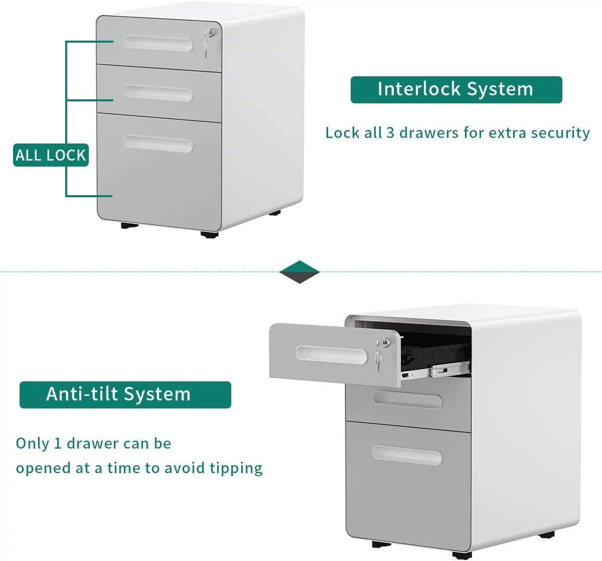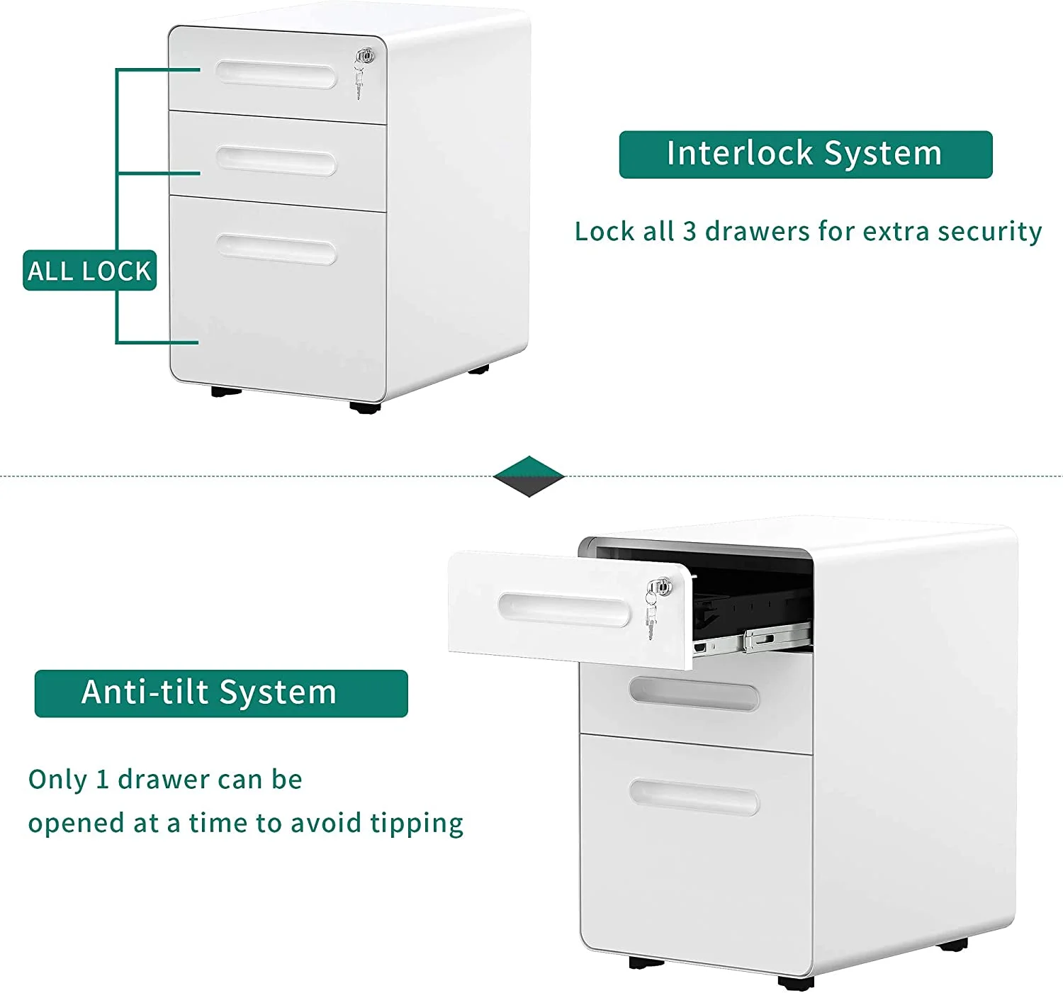3-Drawer Rolling File Cabinet, Metal Mobile File Cabinet with Lock, Filing Cabinet Under Desk fits Legal/Letter/A4 Size for Home/Office, Fully Assembled-White - Curated Treasures Market