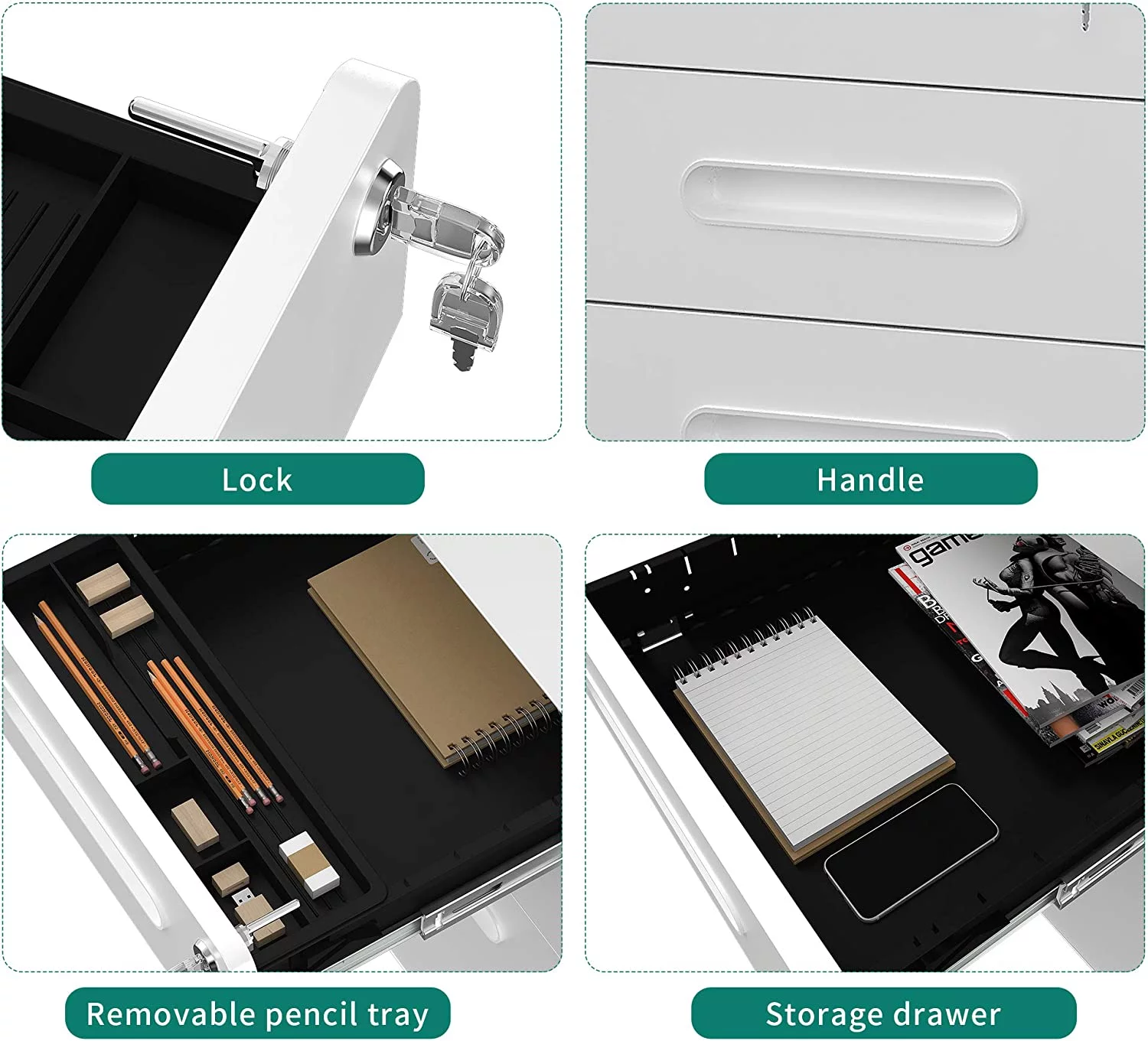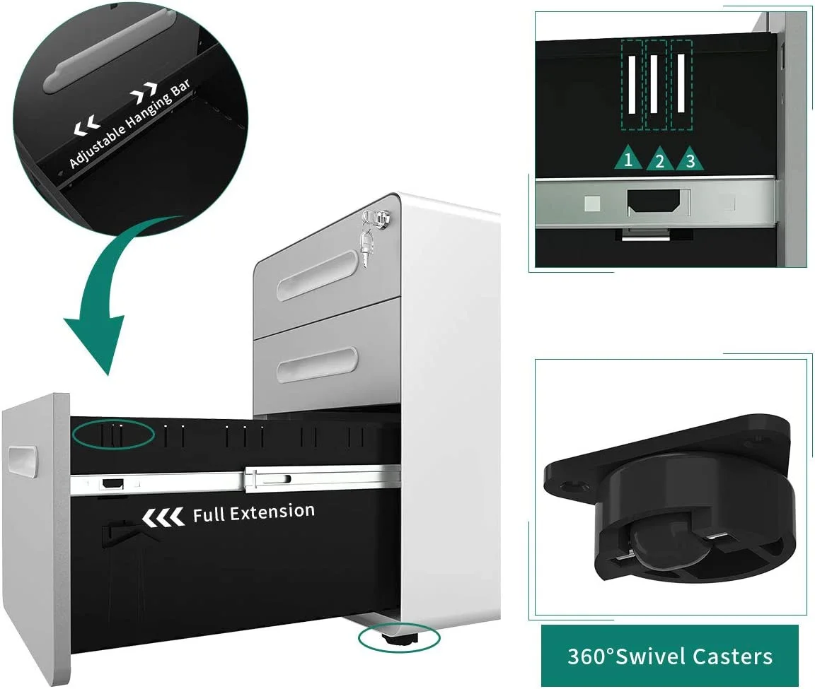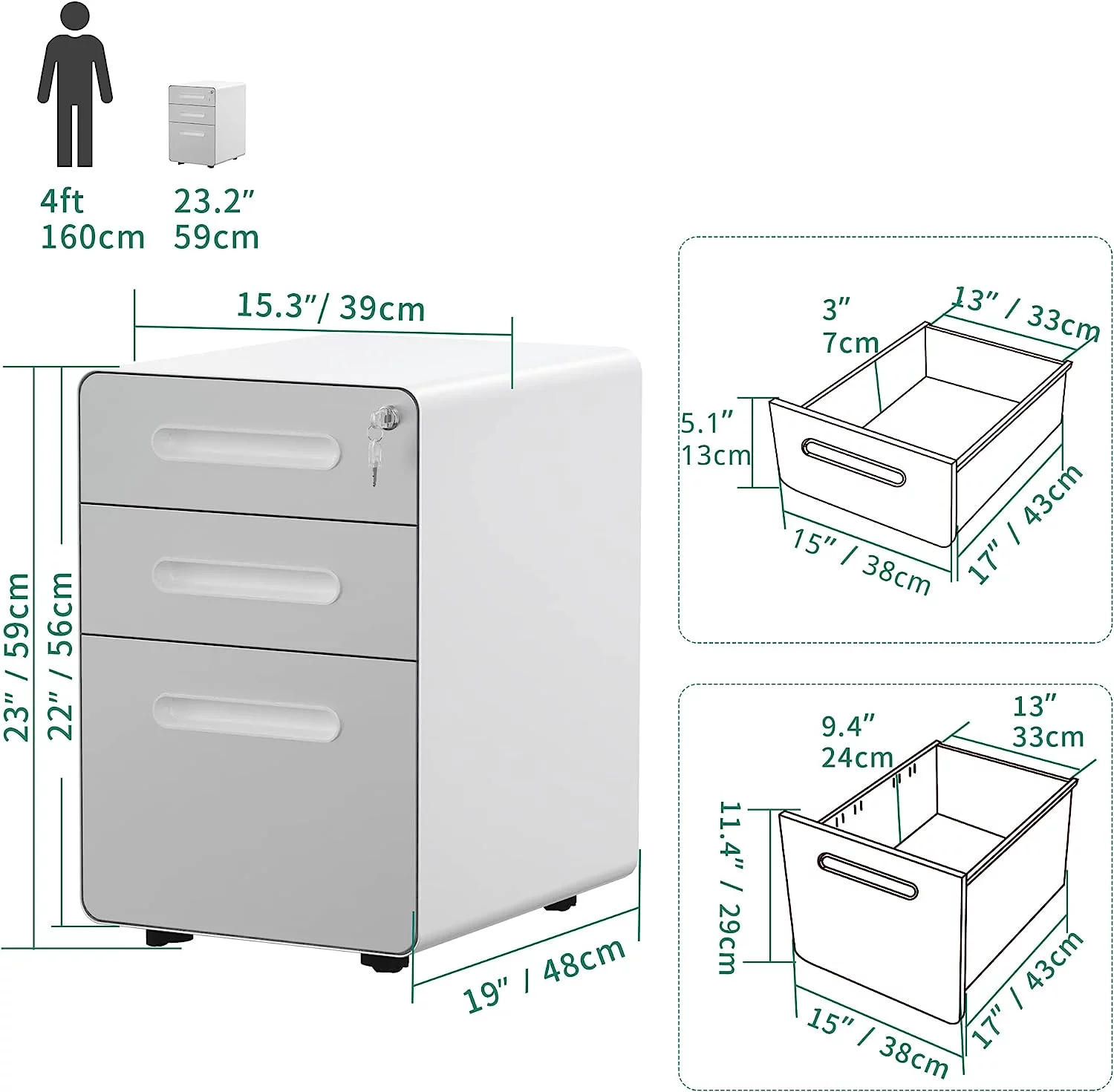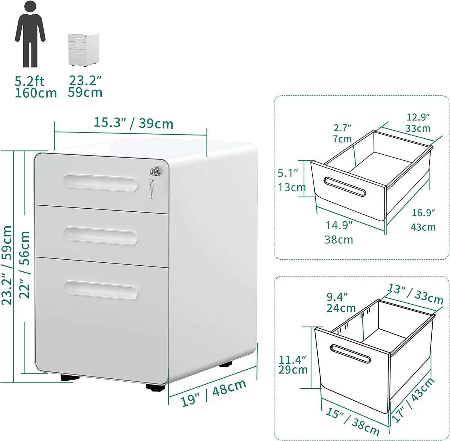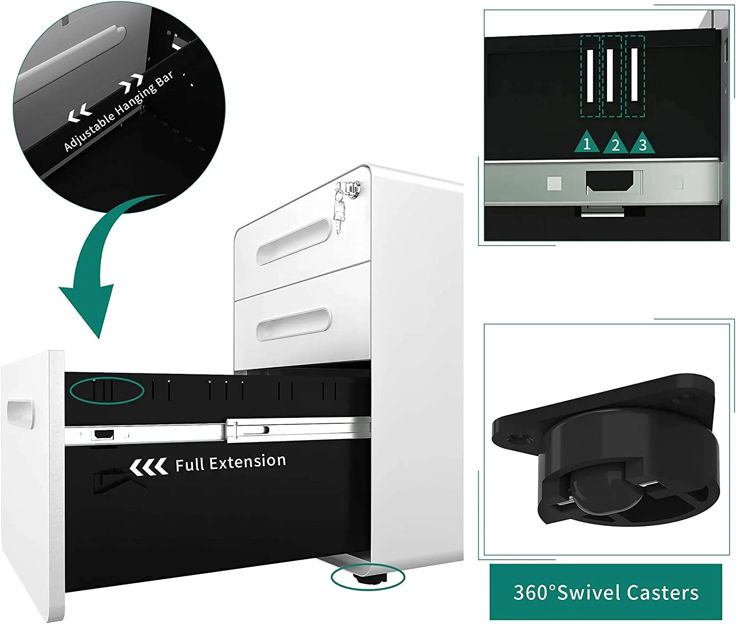 3-Drawer Rolling File Cabinet, Metal Mobile File Cabinet with Lock, Filing Cabinet Under Desk fits Legal/Letter/A4 Size for Home/Office, Fully Assembled-White - Curated Treasures Market