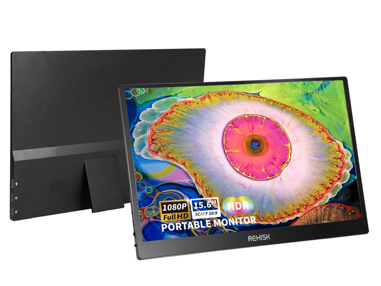 Rehisk 15.6" inch Portable Monitor FHD 1080P Build in stand Gaming Monitor with HDMI USB-C Display for Laptop - Curated Treasures Market