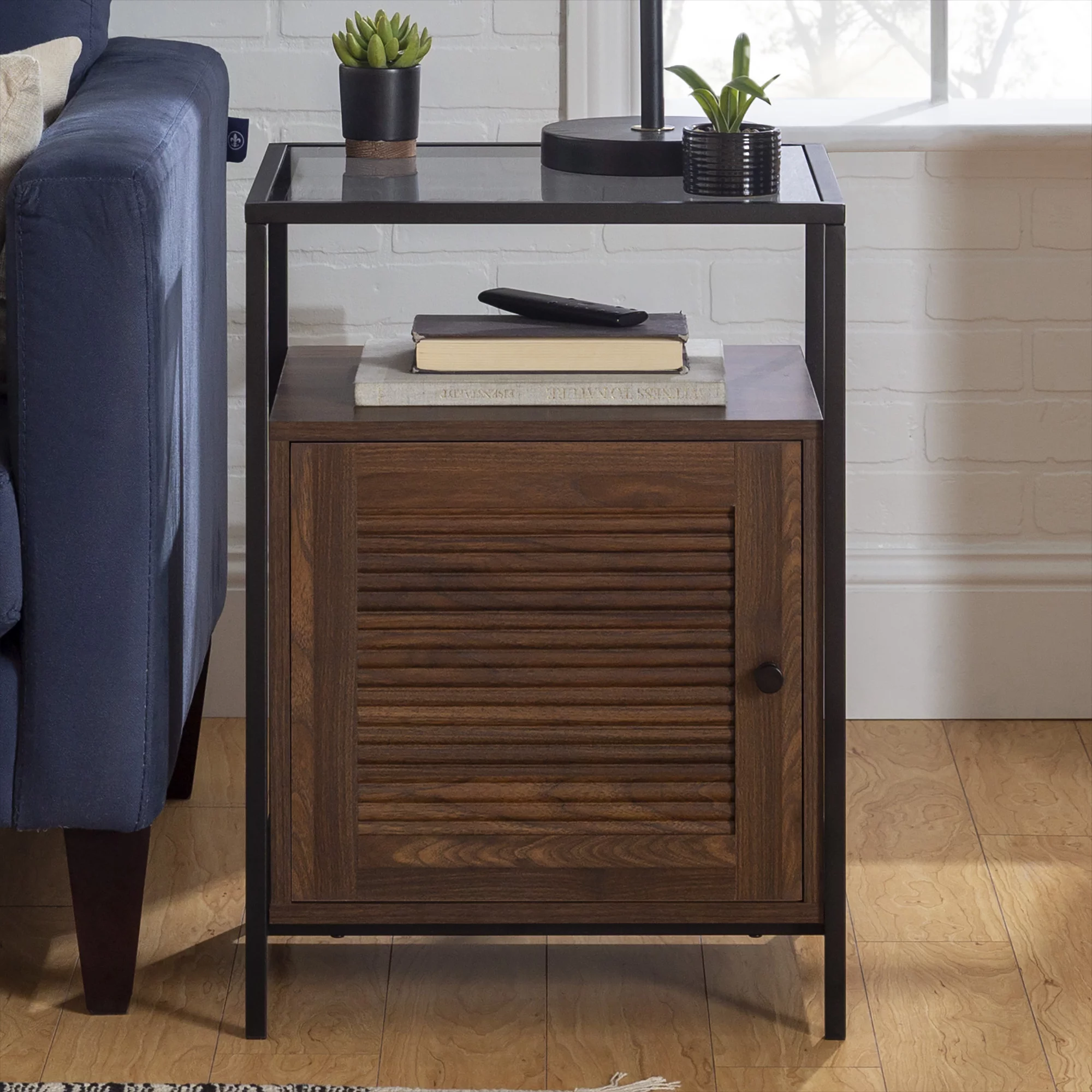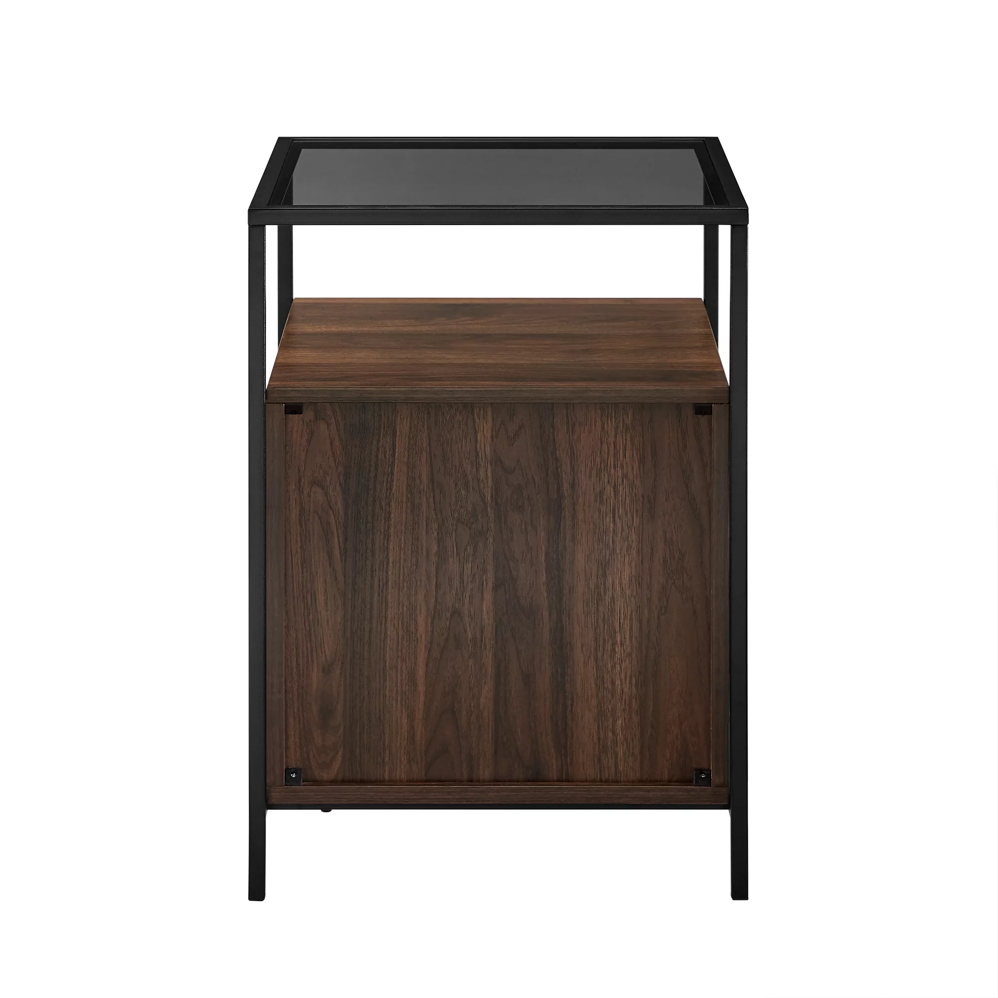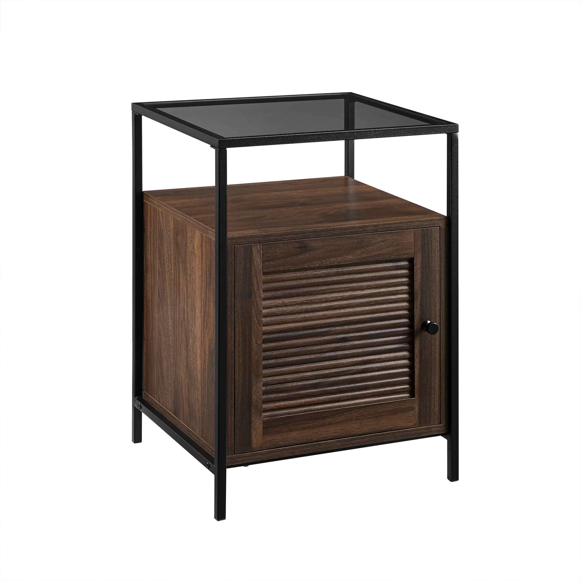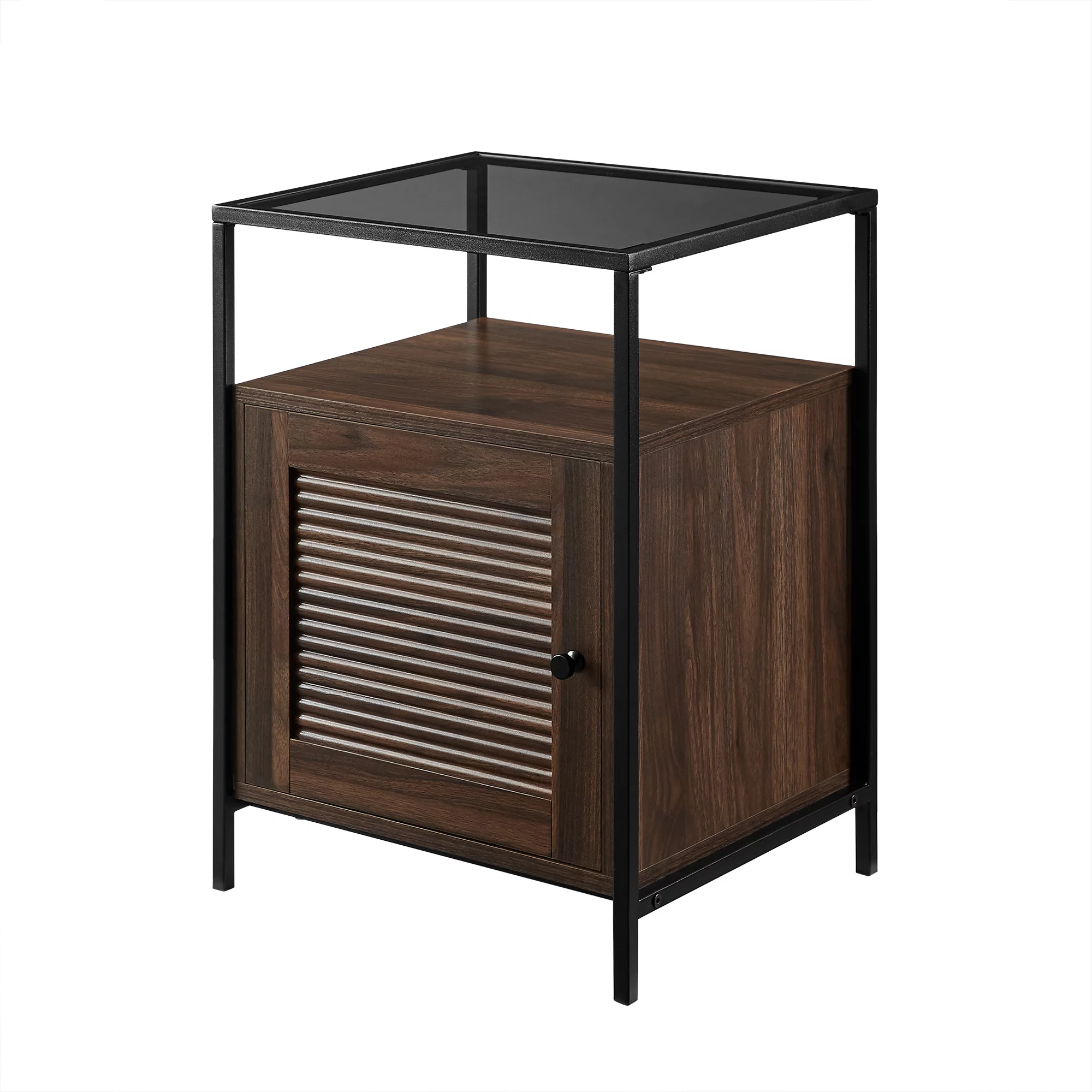 Burke Modern Glass Top Fluted Door Dark Walnut End Table by Manor Park - Curated Treasures Market