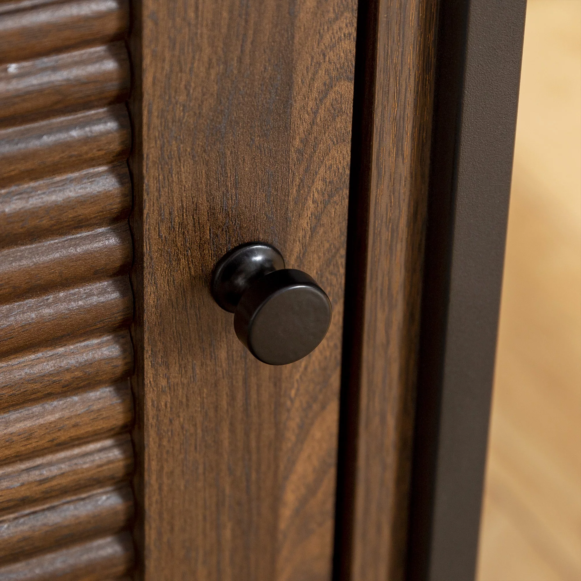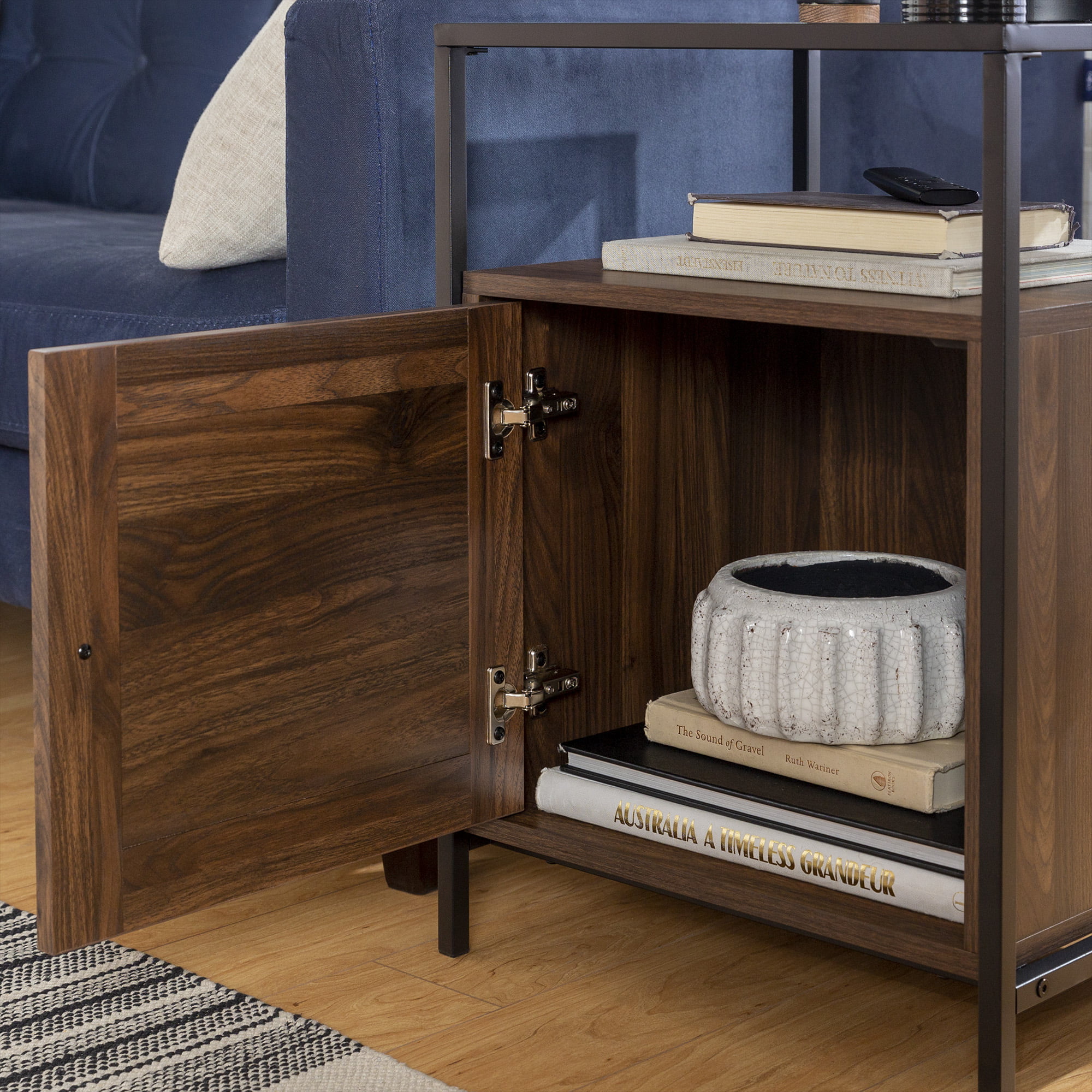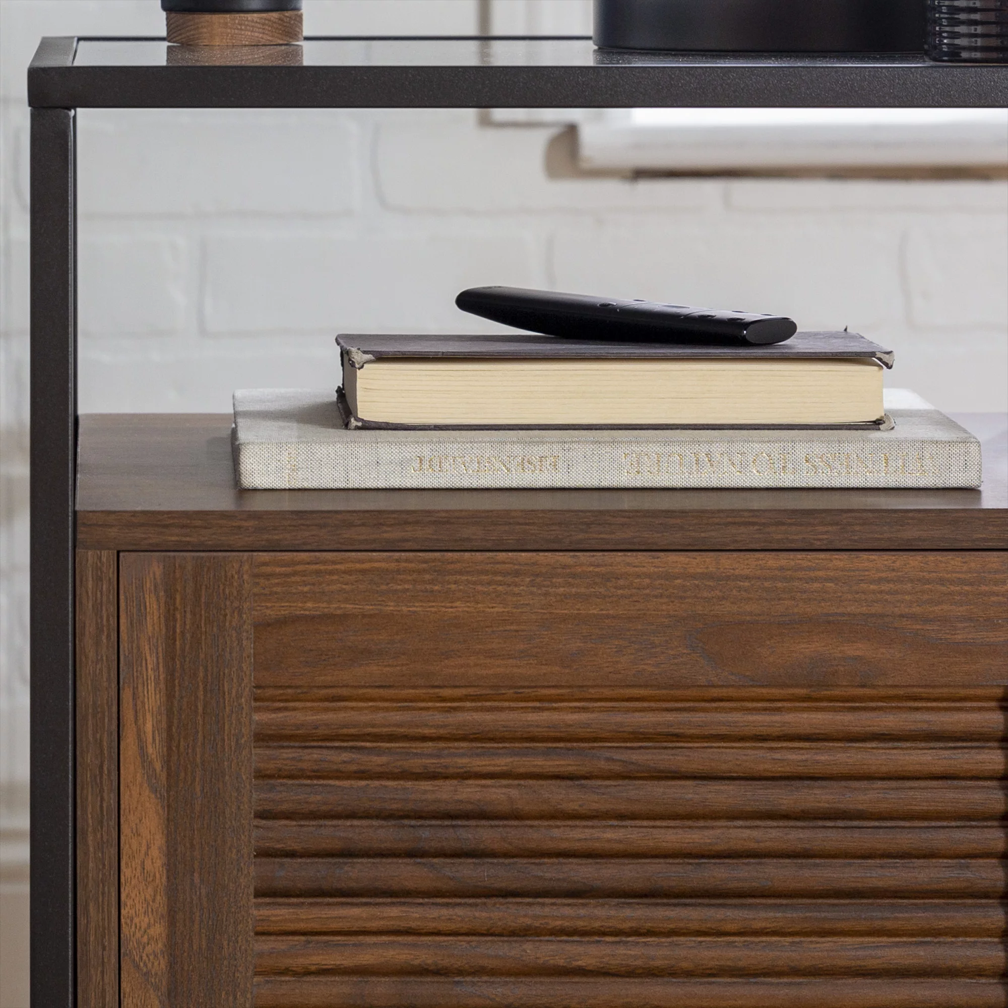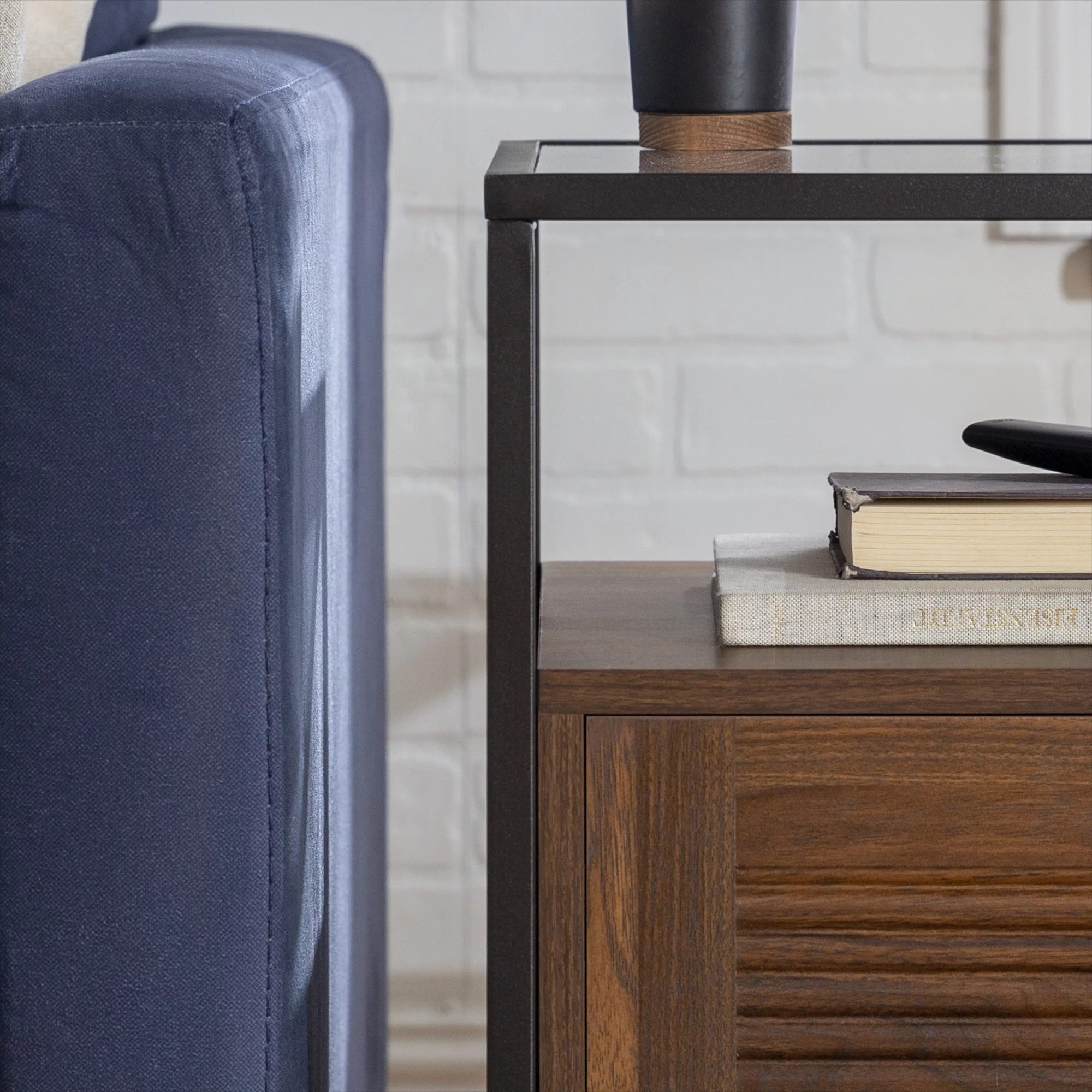 Burke Modern Glass Top Fluted Door Dark Walnut End Table by Manor Park - Curated Treasures Market