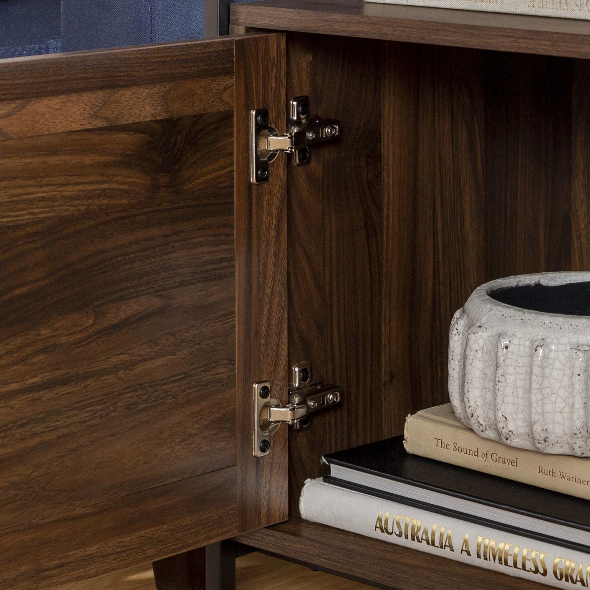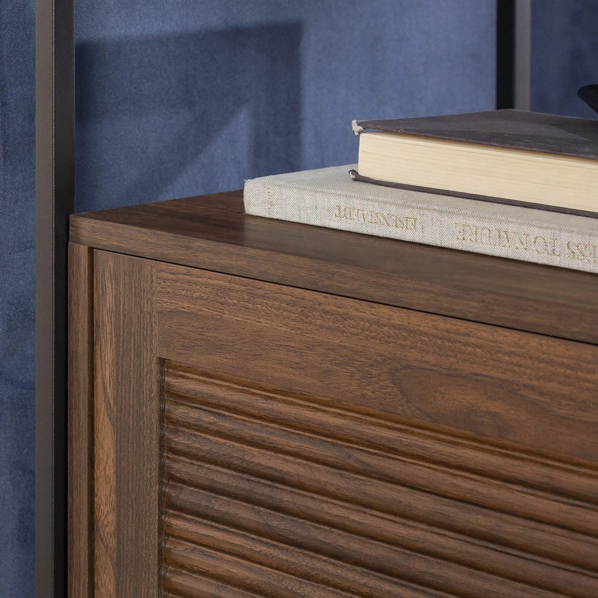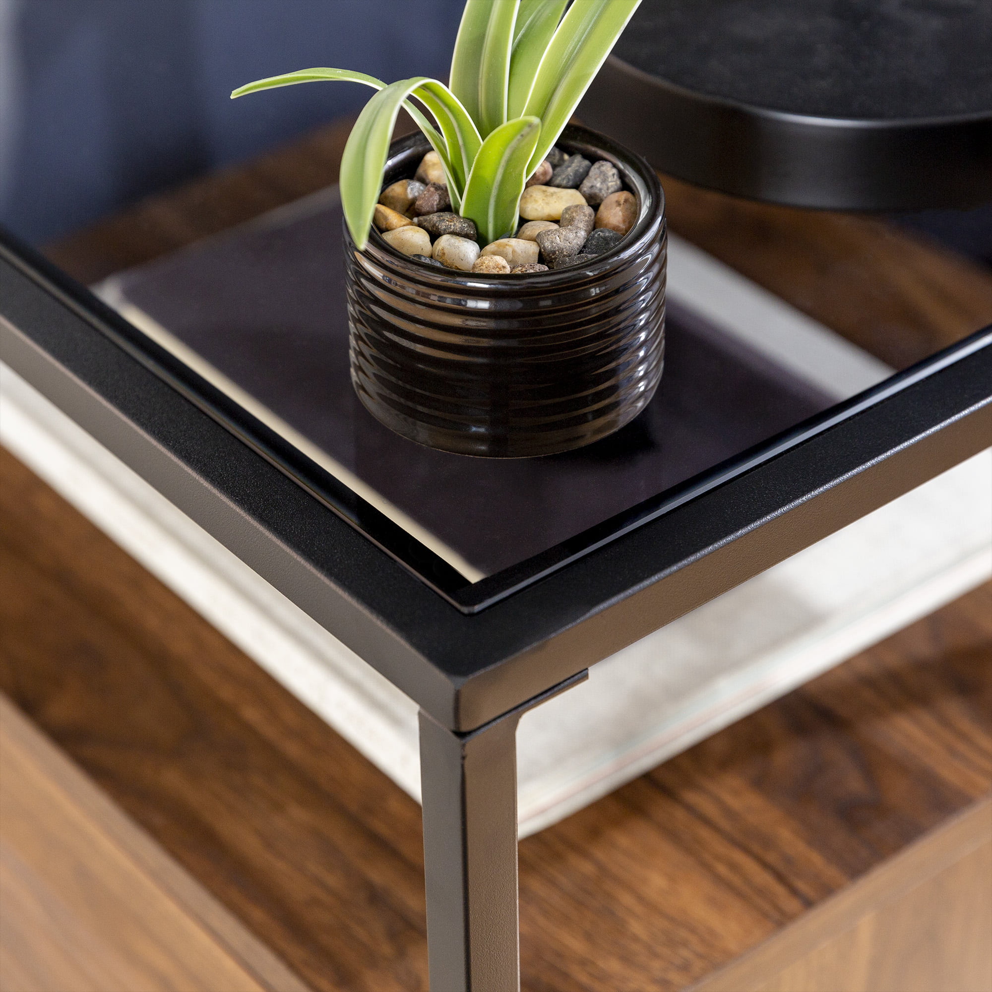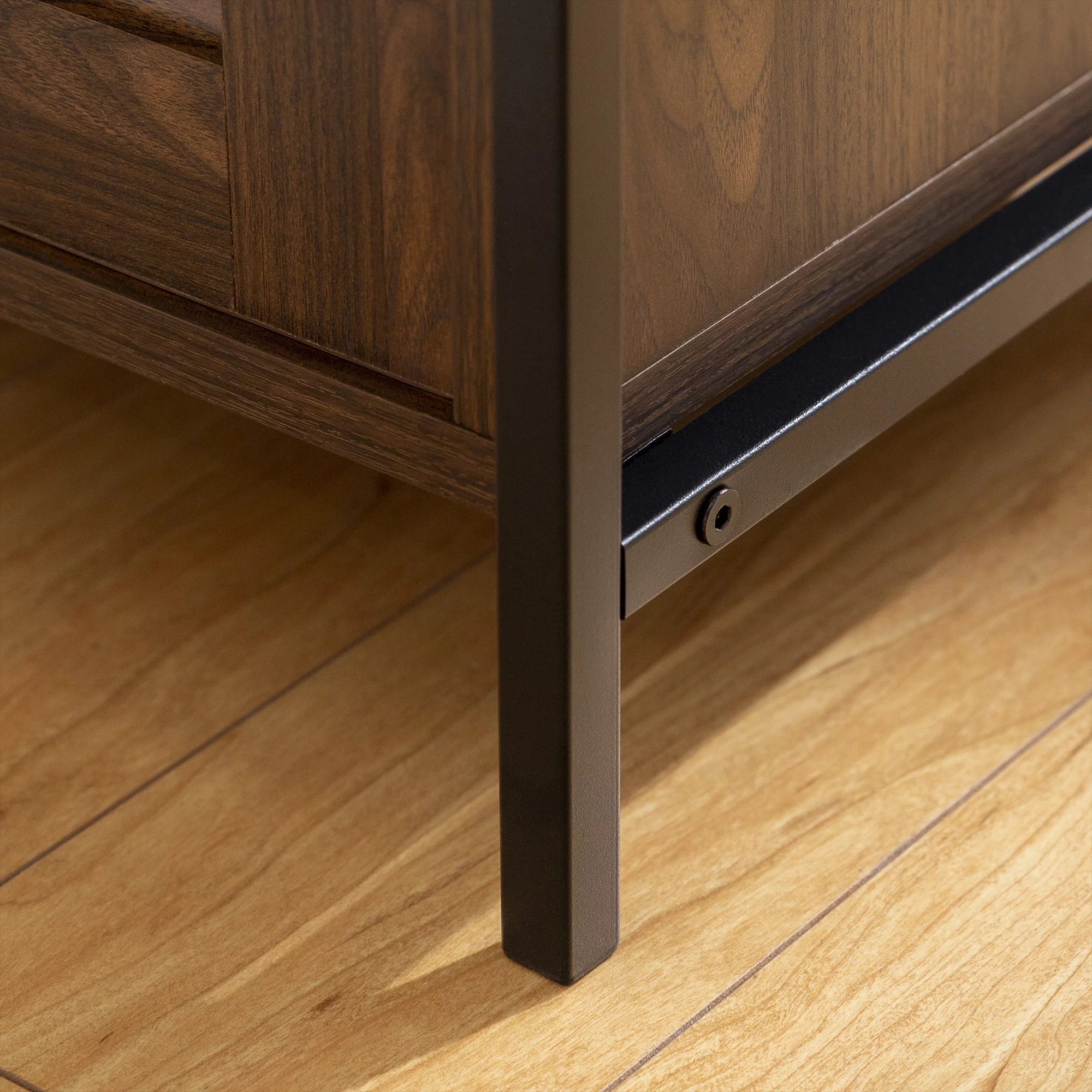 Burke Modern Glass Top Fluted Door Dark Walnut End Table by Manor Park - Curated Treasures Market