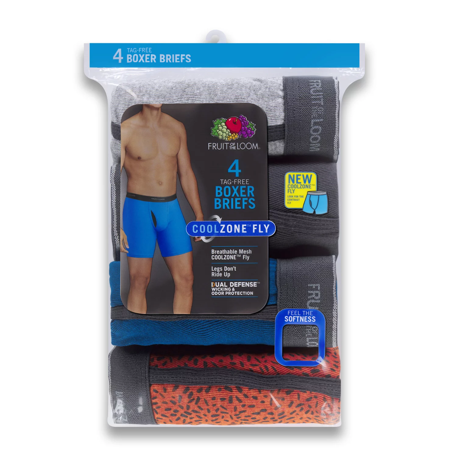 Fruit of the Loom Men's CoolZone Fly Ringer Boxer Briefs, Extended Sizes, 4 Pack - Curated Treasures Market