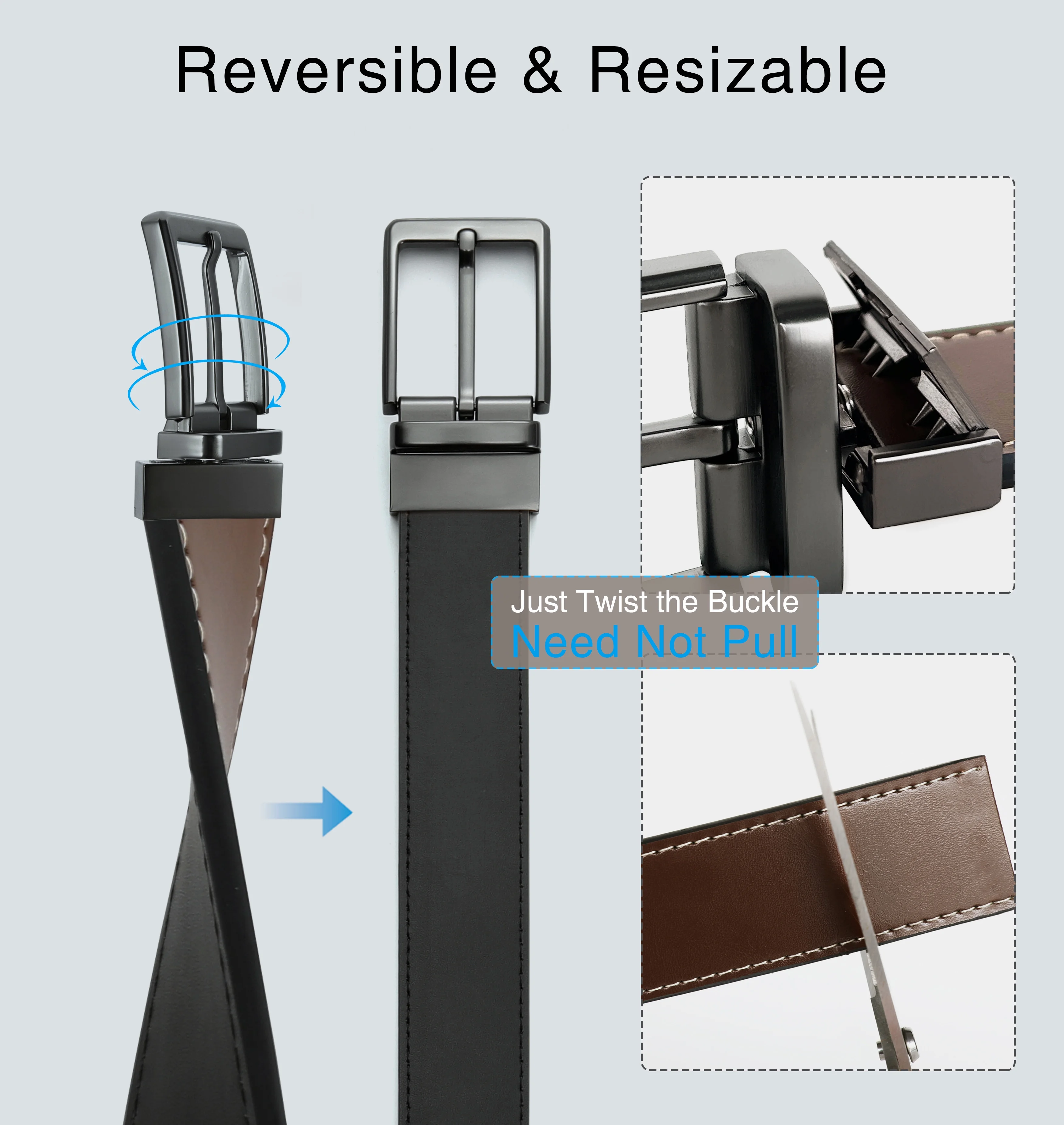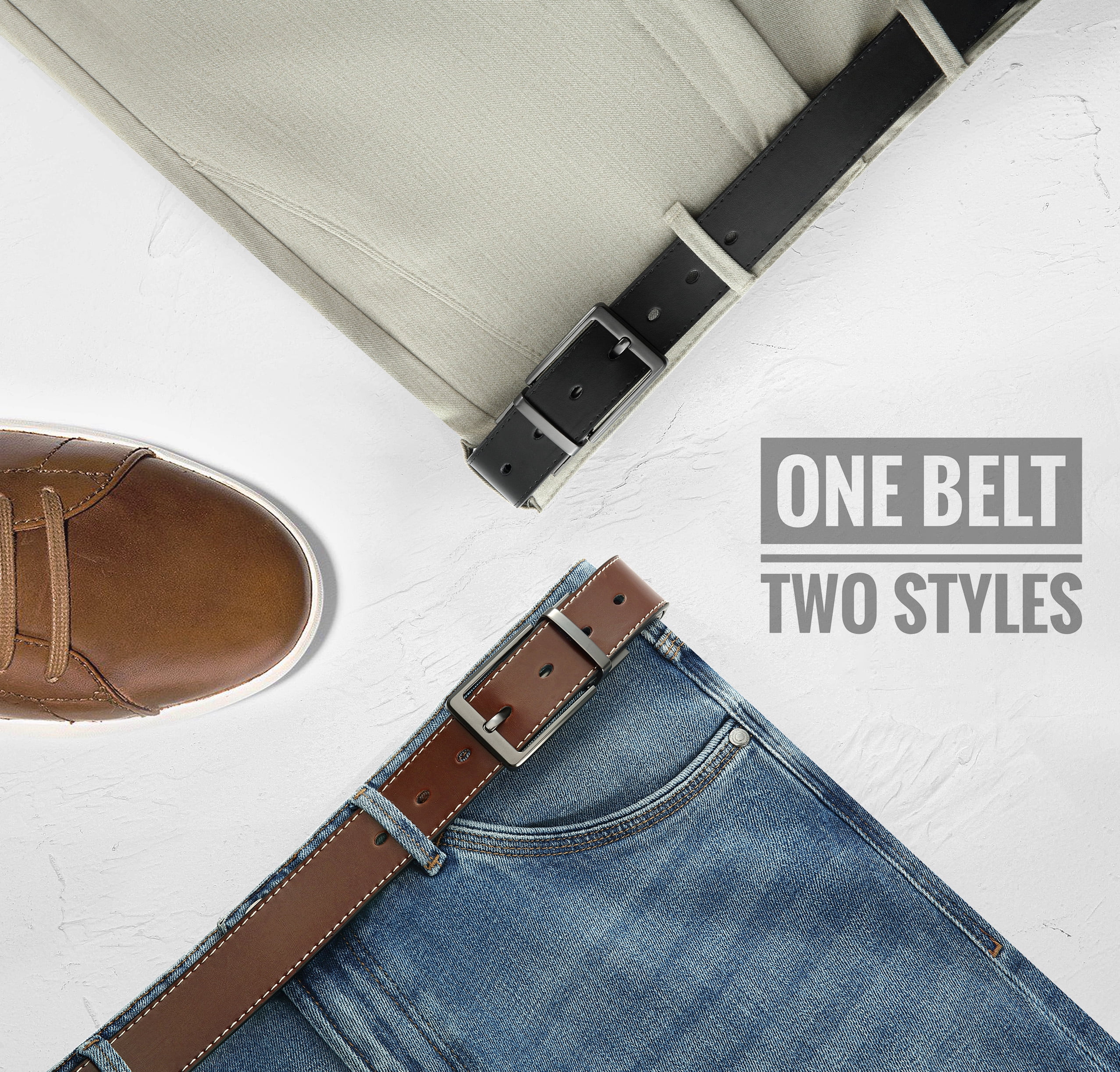 YOETEY Mens Belt, Reversible Leather Belt, Two in One Classic Style for Formal Casual 1 3/8"(35mm) - Curated Treasures Market