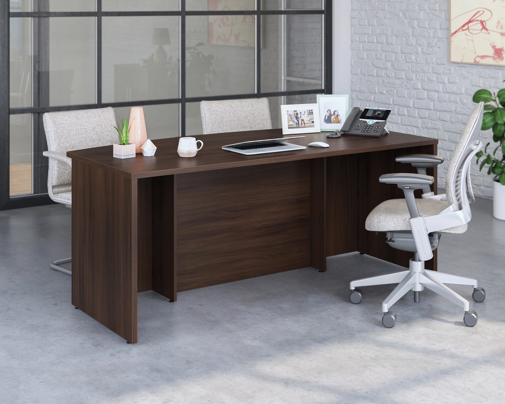 Affirm 72" Bowfront Executive Office Desk in Noble Elm - Curated Treasures Market