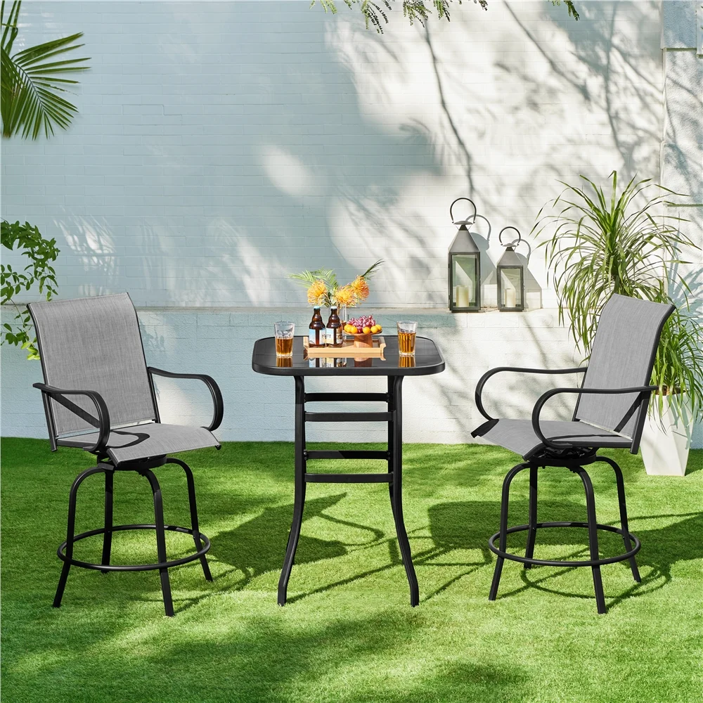 Yaheetech Outdoor Swivel Texteline Bar Stools with Armrest and Footrest, Set of 2, Black/Light Gray - Curated Treasures Market