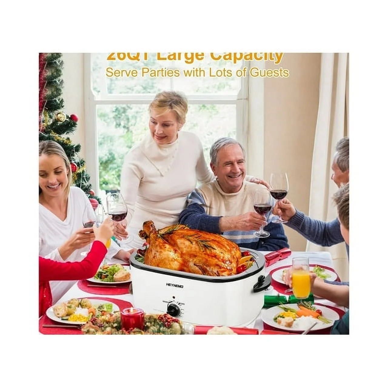 24 Quart Electric Roaster Oven Stainless Steel Roaster Pan With Self-Basting Lid Removable Insert Pot, White - Curated Treasures Market
