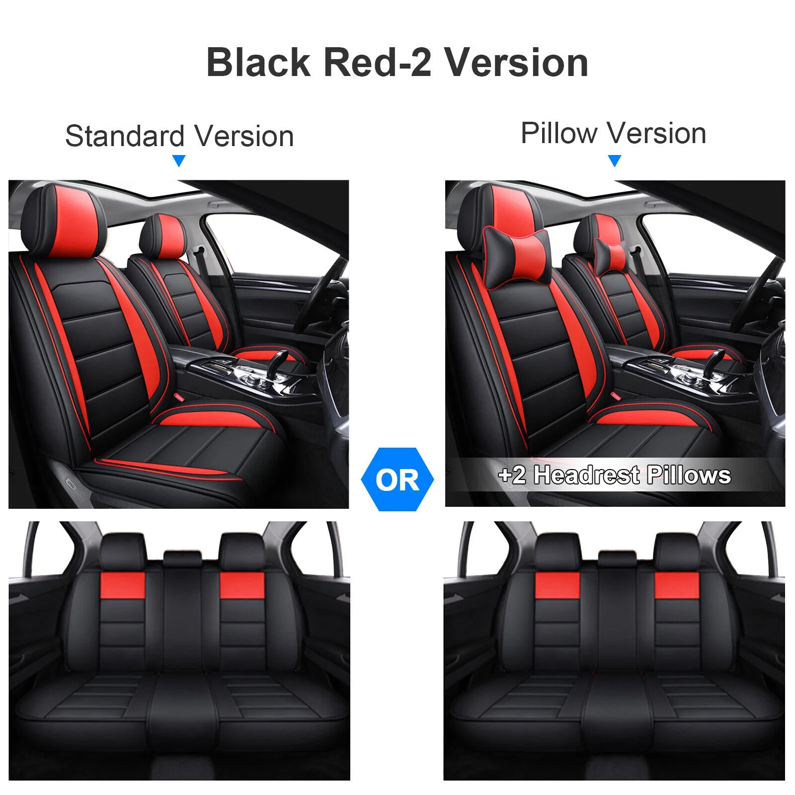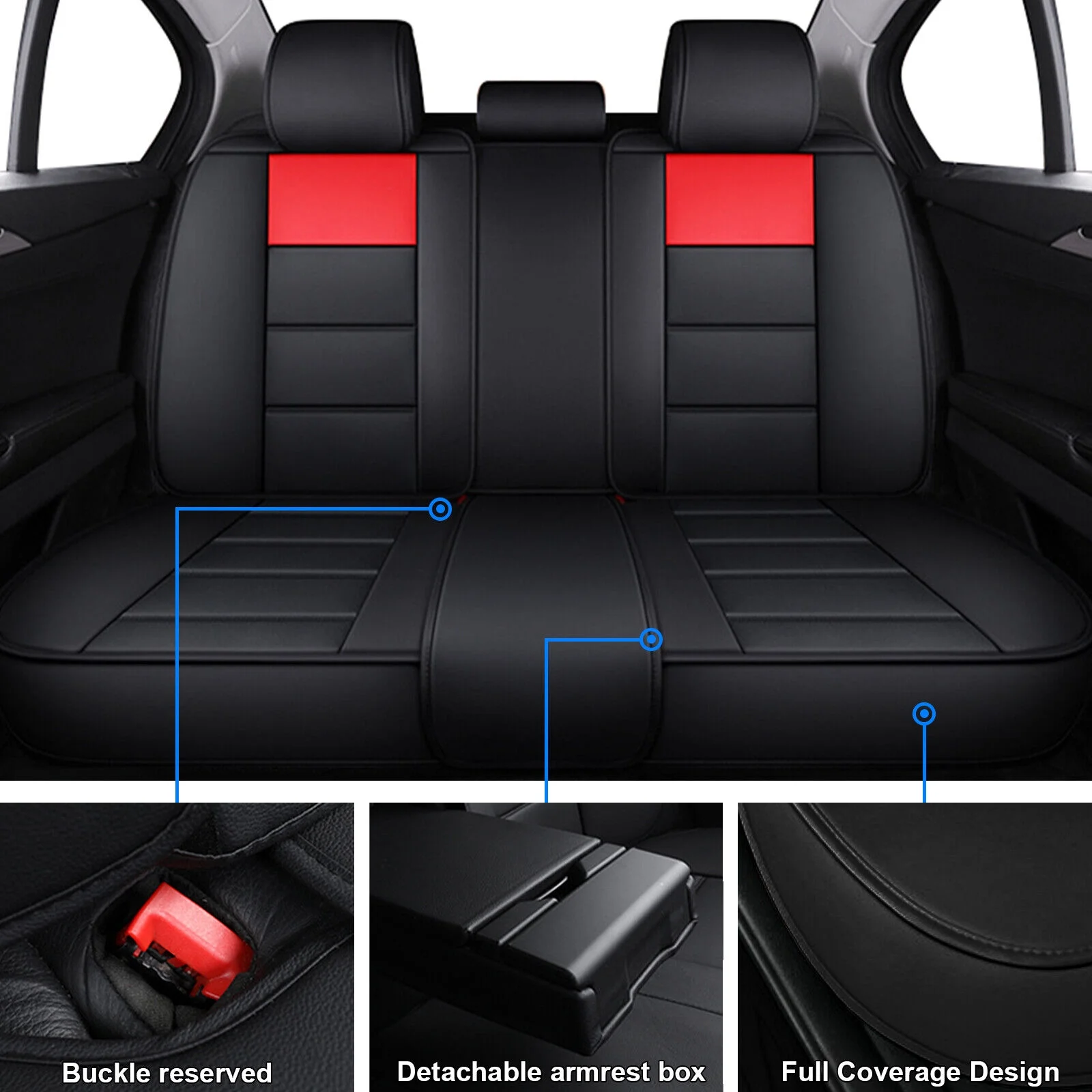 Car Seat Covers for Toyota Corolla, Premium 5 Seats PU Leather Auto Seat Cushions Protector, Front Rear Full Set for RAV4/ Echo/ Matrix/ Prius Black&Red - Curated Treasures Market