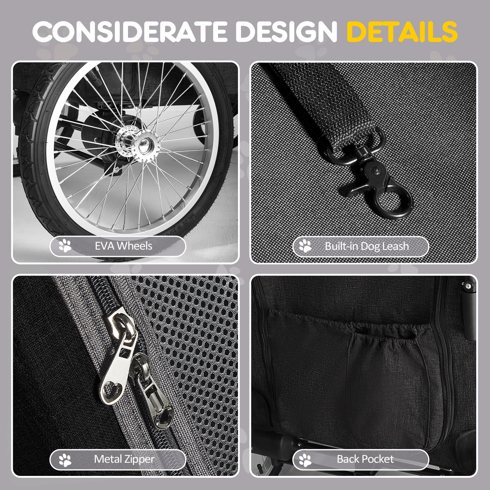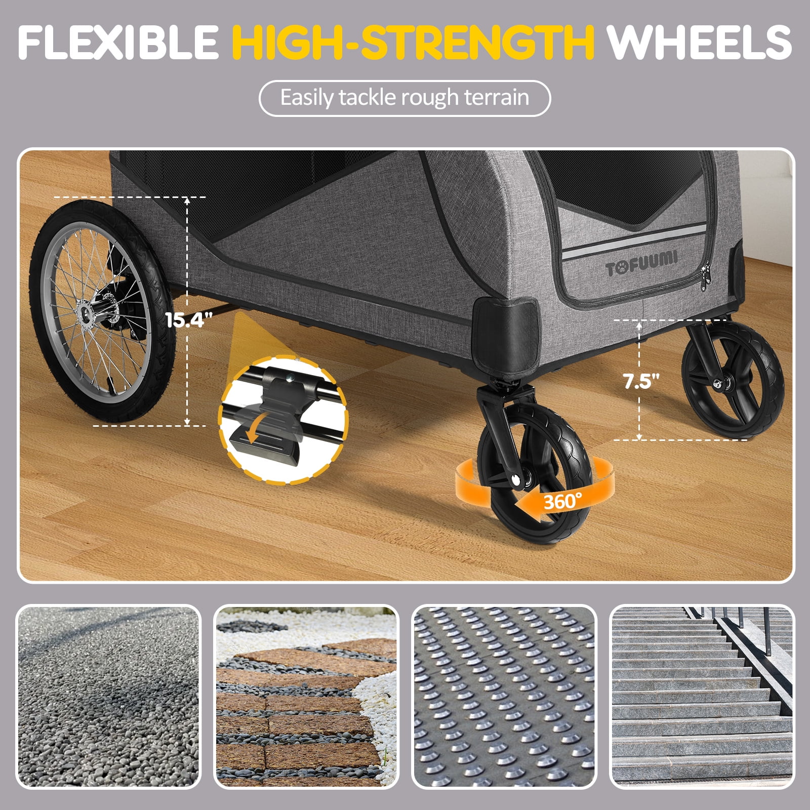 TOFUUMI 4 Wheel Dog Stroller, Folding Pet Stroller for Large Dogs,Up to 132 lbs, Gray - Curated Treasures Market