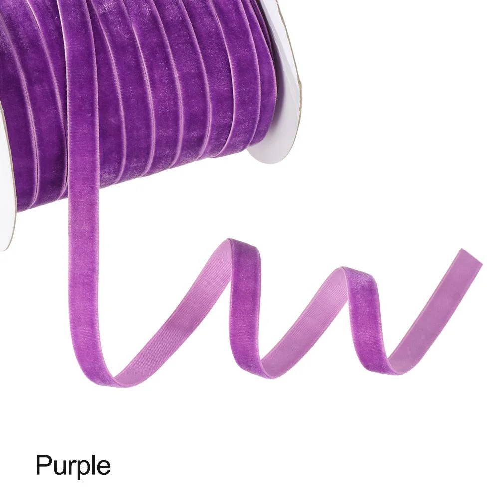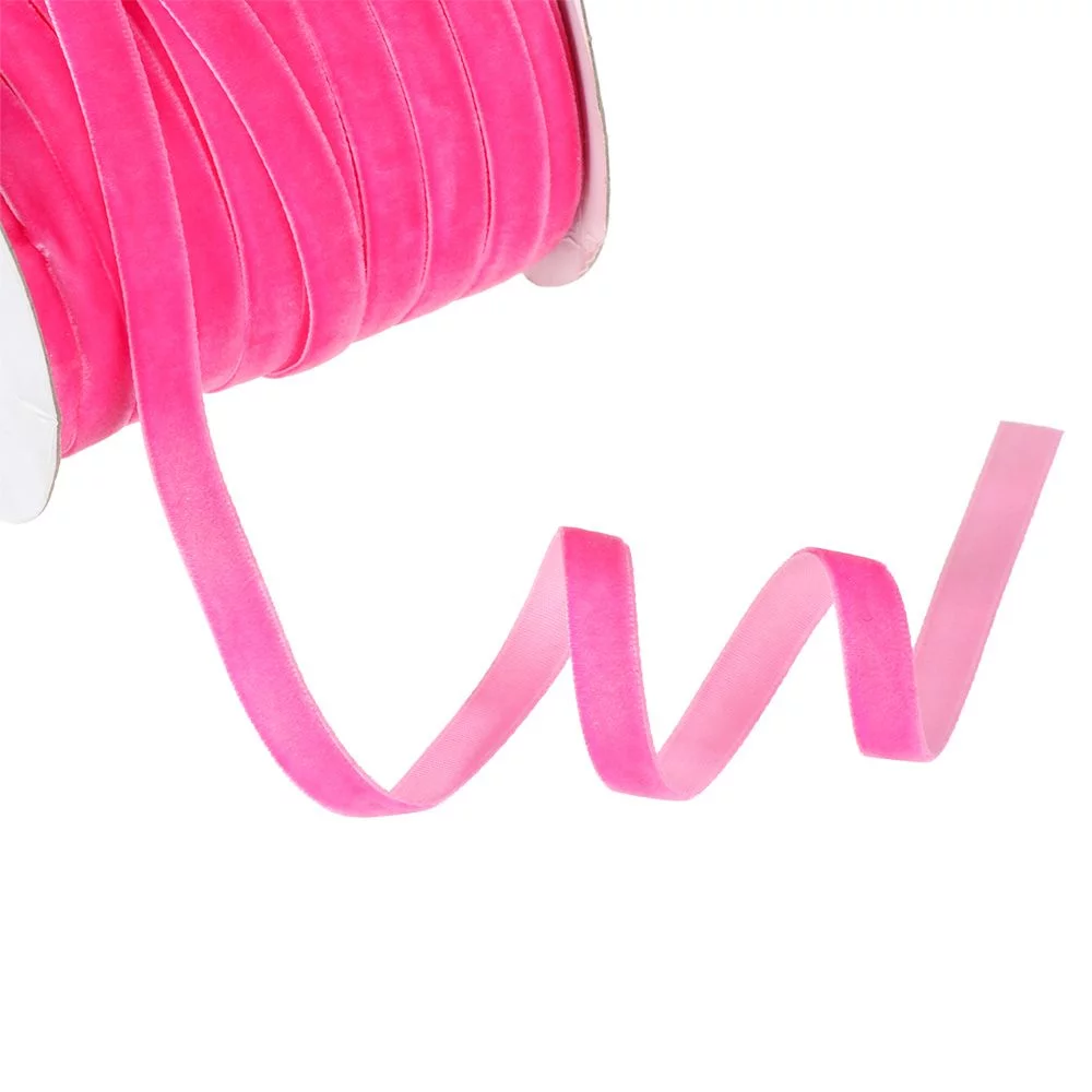 50yards 10mm Crafts Gifts Home Packaging Strap Flocking Silk Velvet Ribbon Wrapping Band ROSE RED - Curated Treasures Market