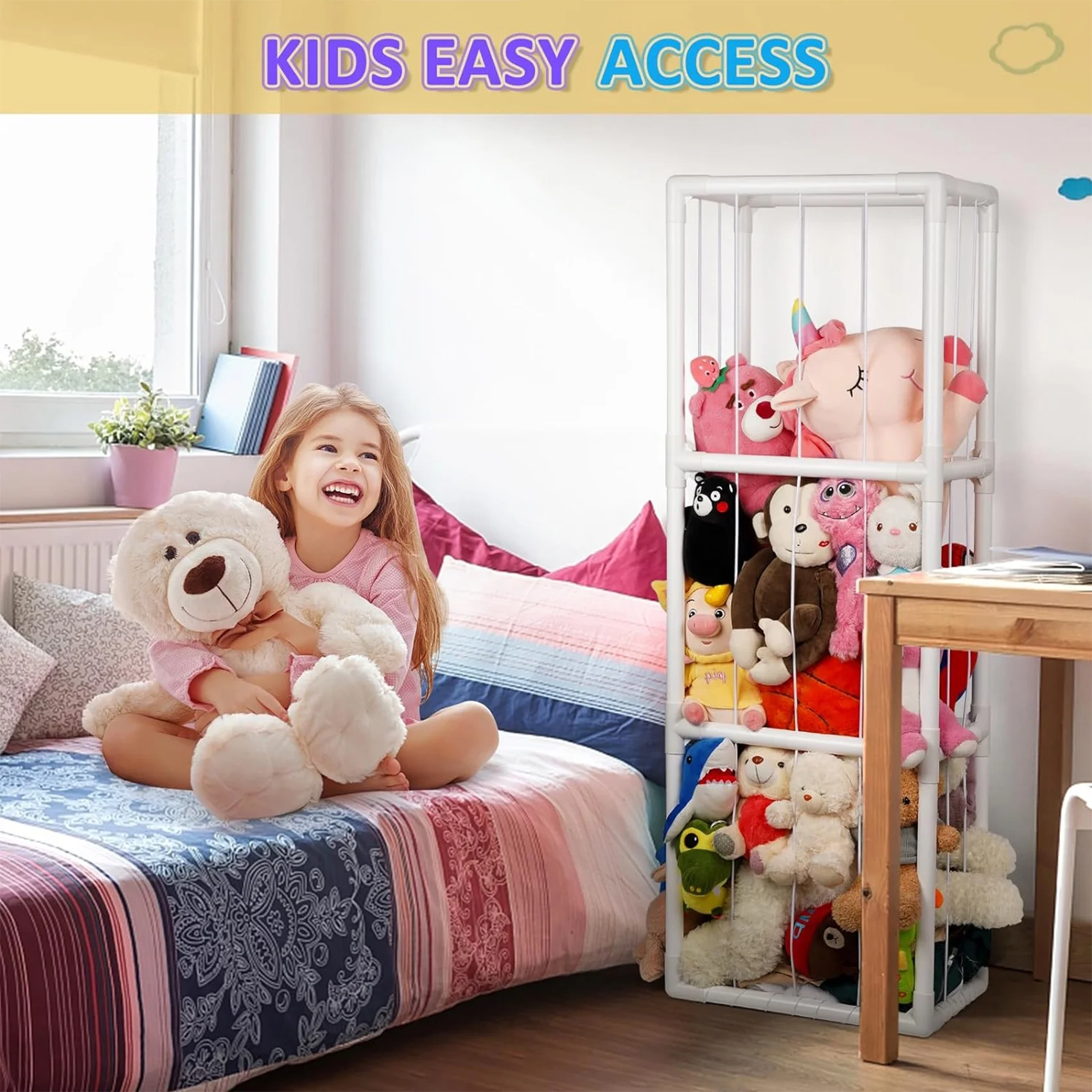 Loghot Stuffed Animal Storage Holder, Toy Organizer, PVC Plush Storage Organizer Shelf for Kids Play Room Bedroom, White - Curated Treasures Market
