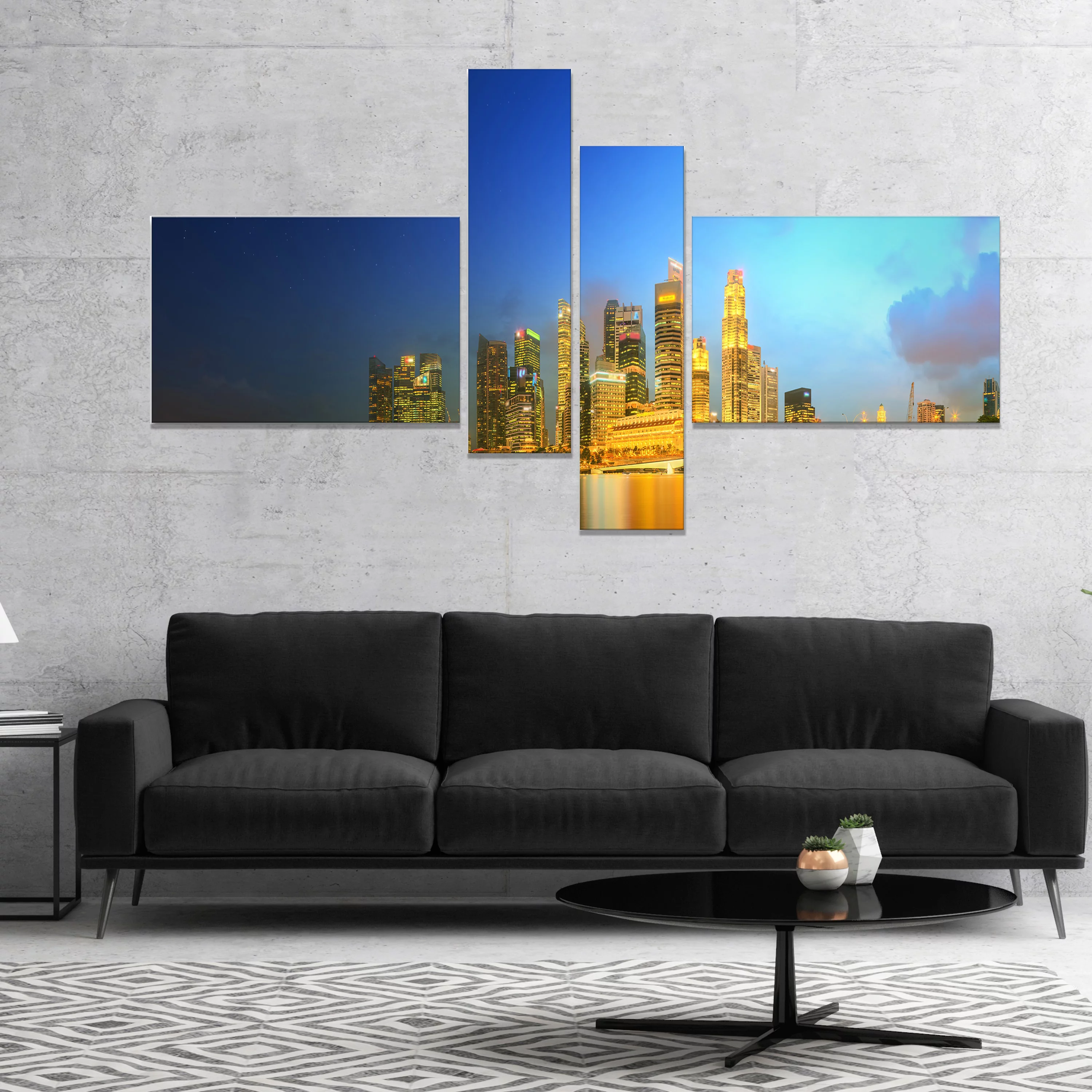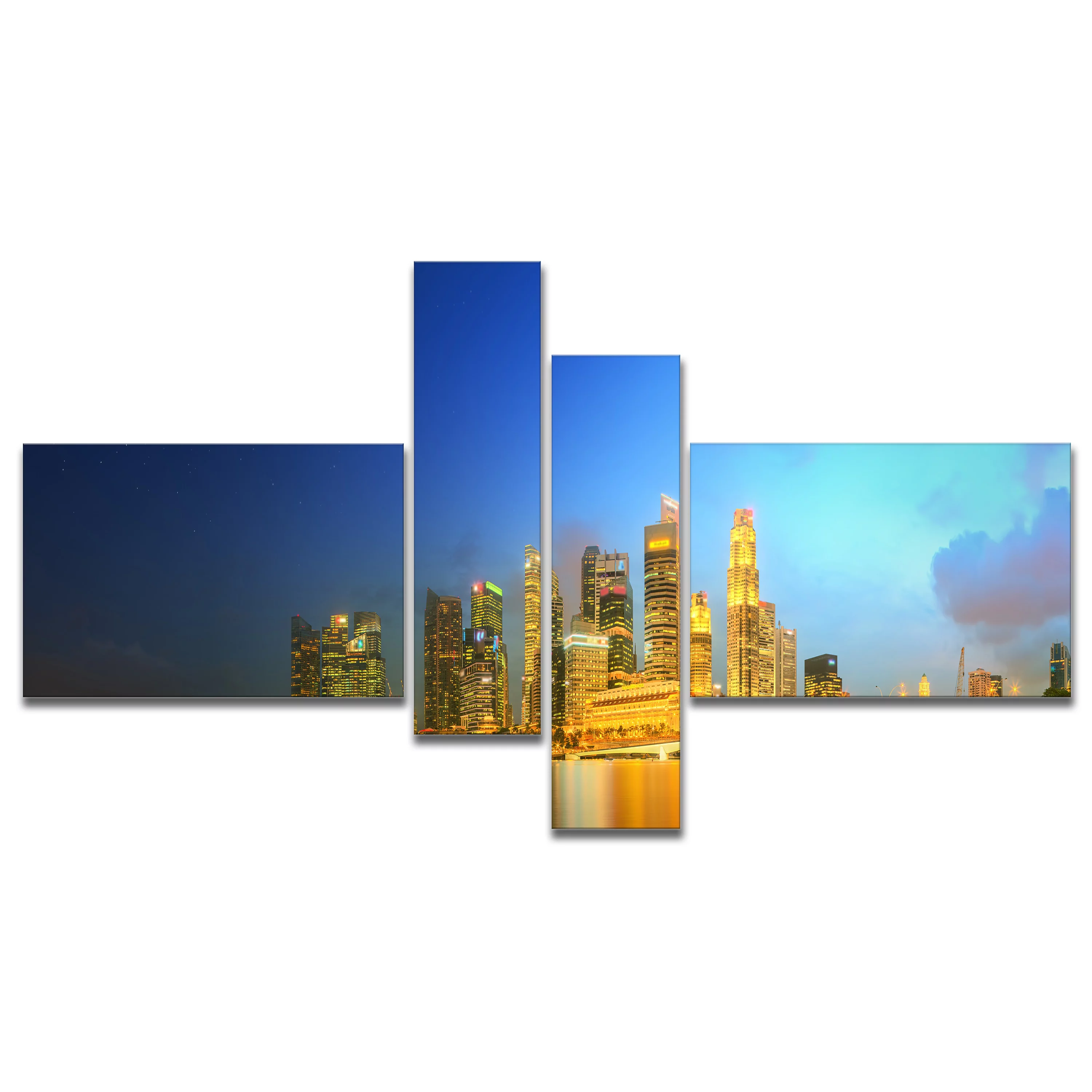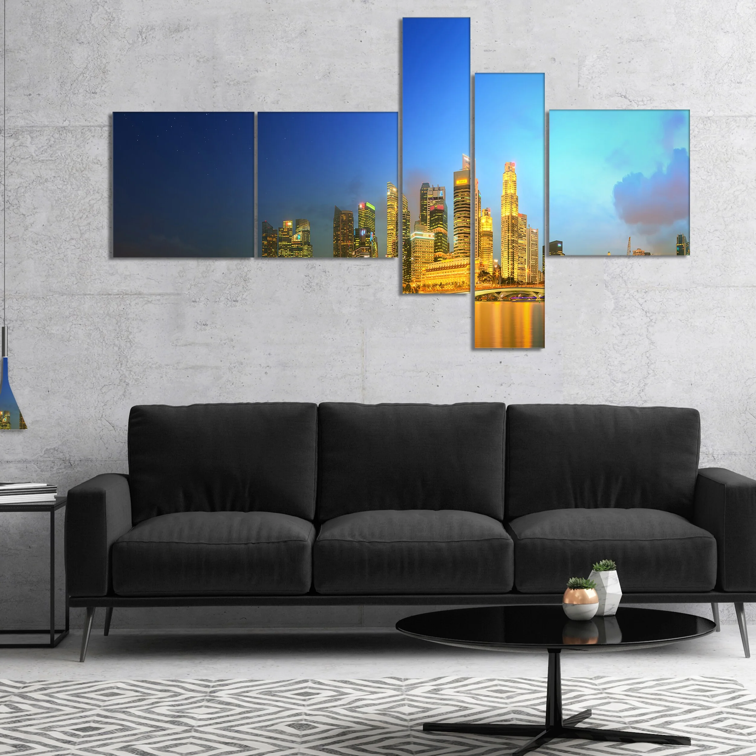 DESIGN ART Designart "Singapore Skyline and Marina Bay" Cityscape Canvas Art Print - Multi-color 60 in. wide x 32 in. high - 5 Panels - Curated Treasures Market