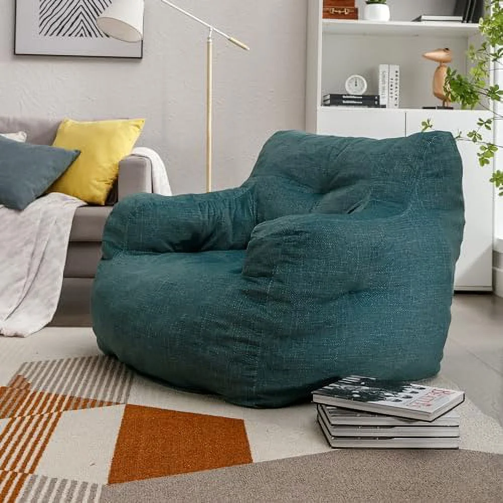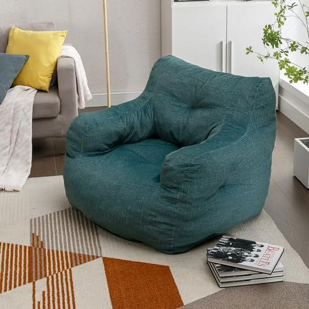 STXFS Bean Bag Chair Large Bean Bag Chair for Adults with Armrest Comfy Bean Bag Sofa with Foam Filling Fluffy Lazy Chair Soft Teddy Fabric Tufted Bean Bag for Dorm Bedroom Gaming Dark Gr - Curated Treasures Market