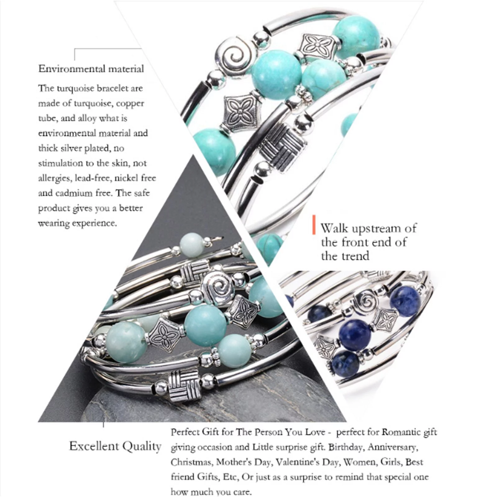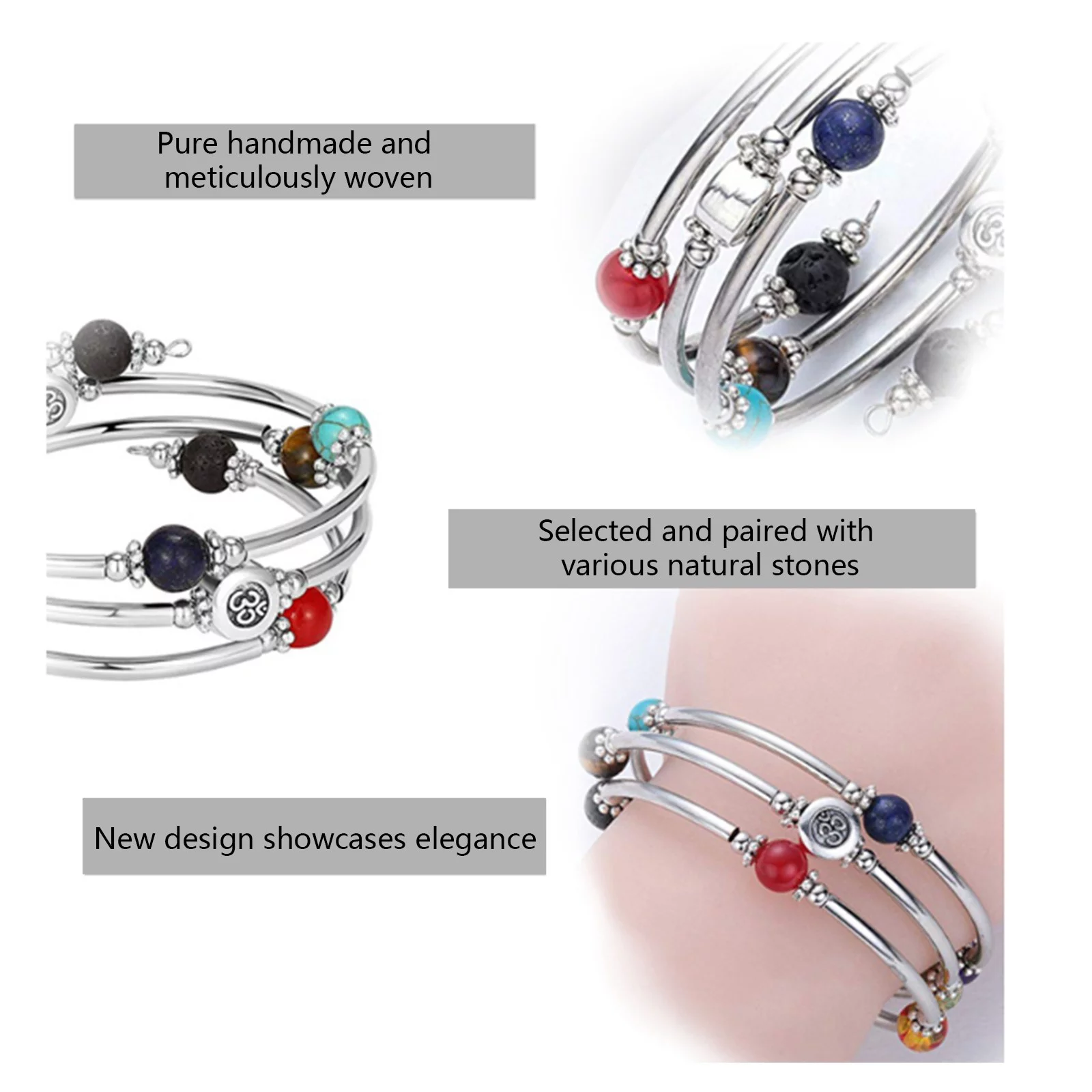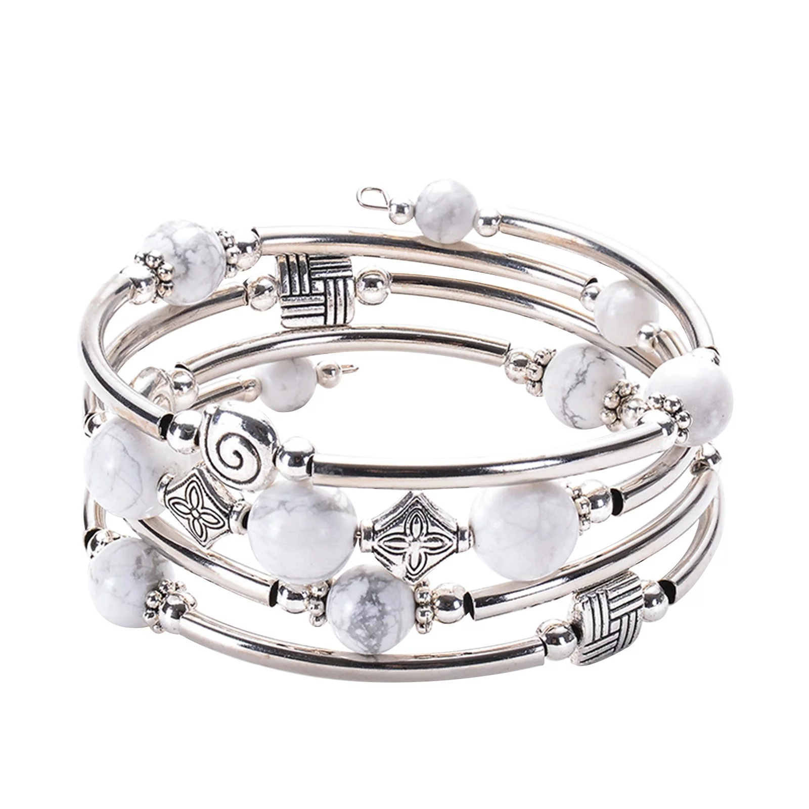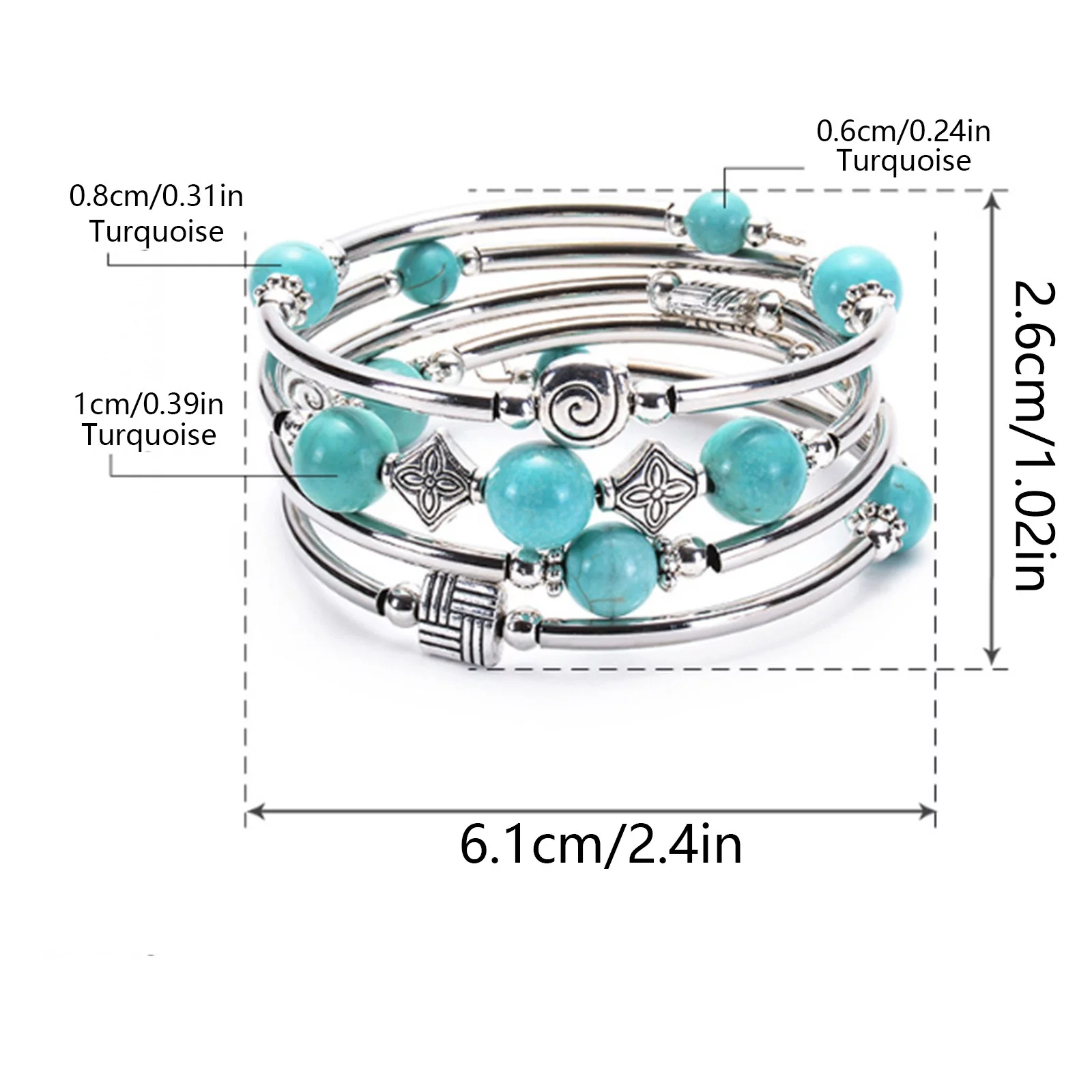 BOLUOYI Earrings for Women Gold Plated Graduation Dress Hand Multilayer Bracelet Volcanic Stone Turquoise Tiger Eye Spiral Memory Bracelet - Curated Treasures Market