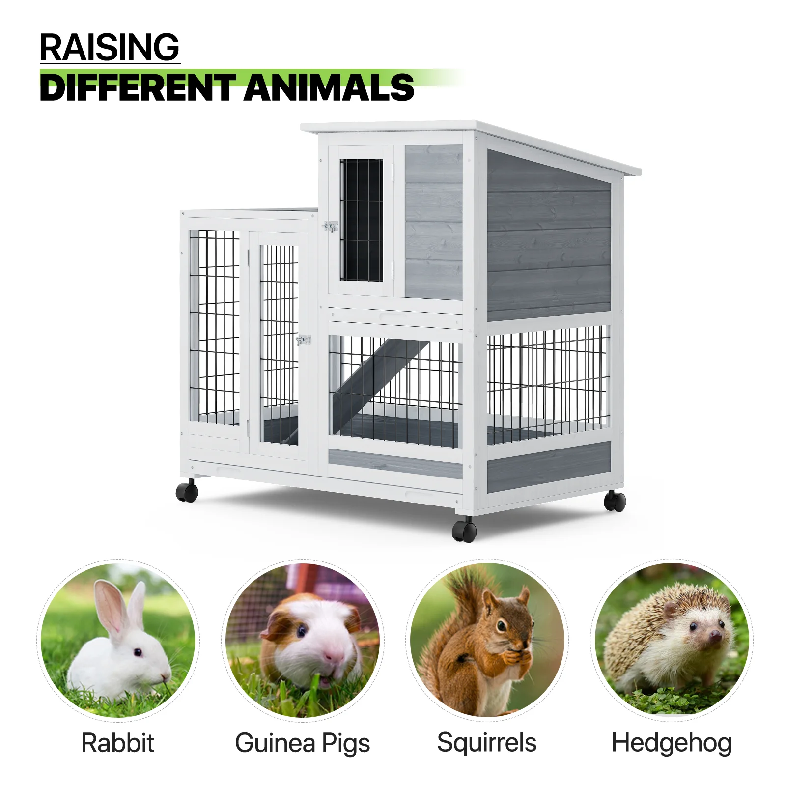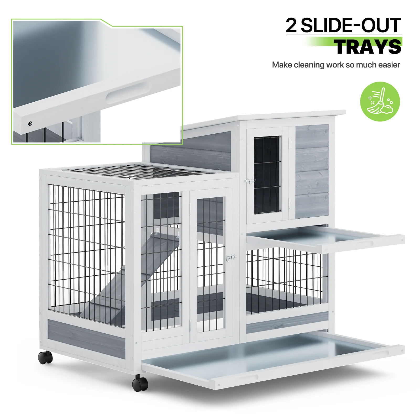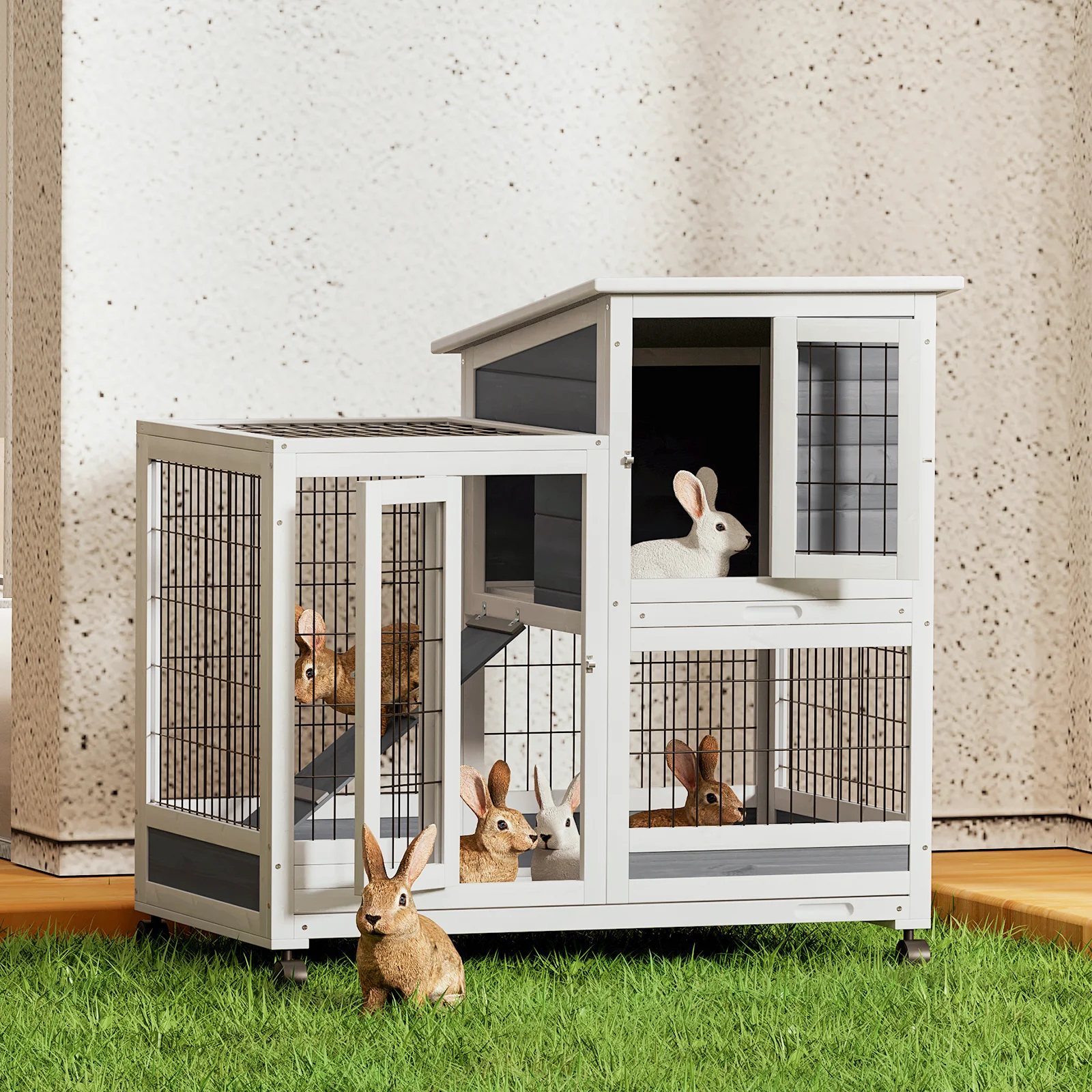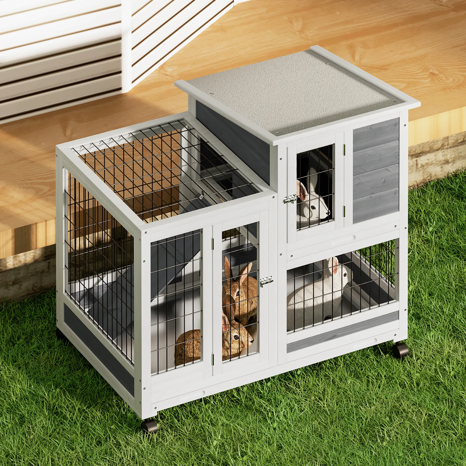 Magshion 36" Rabbit Hutch with Wheel, Safe & Cozy Wooden Bunny Cage for Small Animal with Anti-Slip Ramp, Gray - Curated Treasures Market