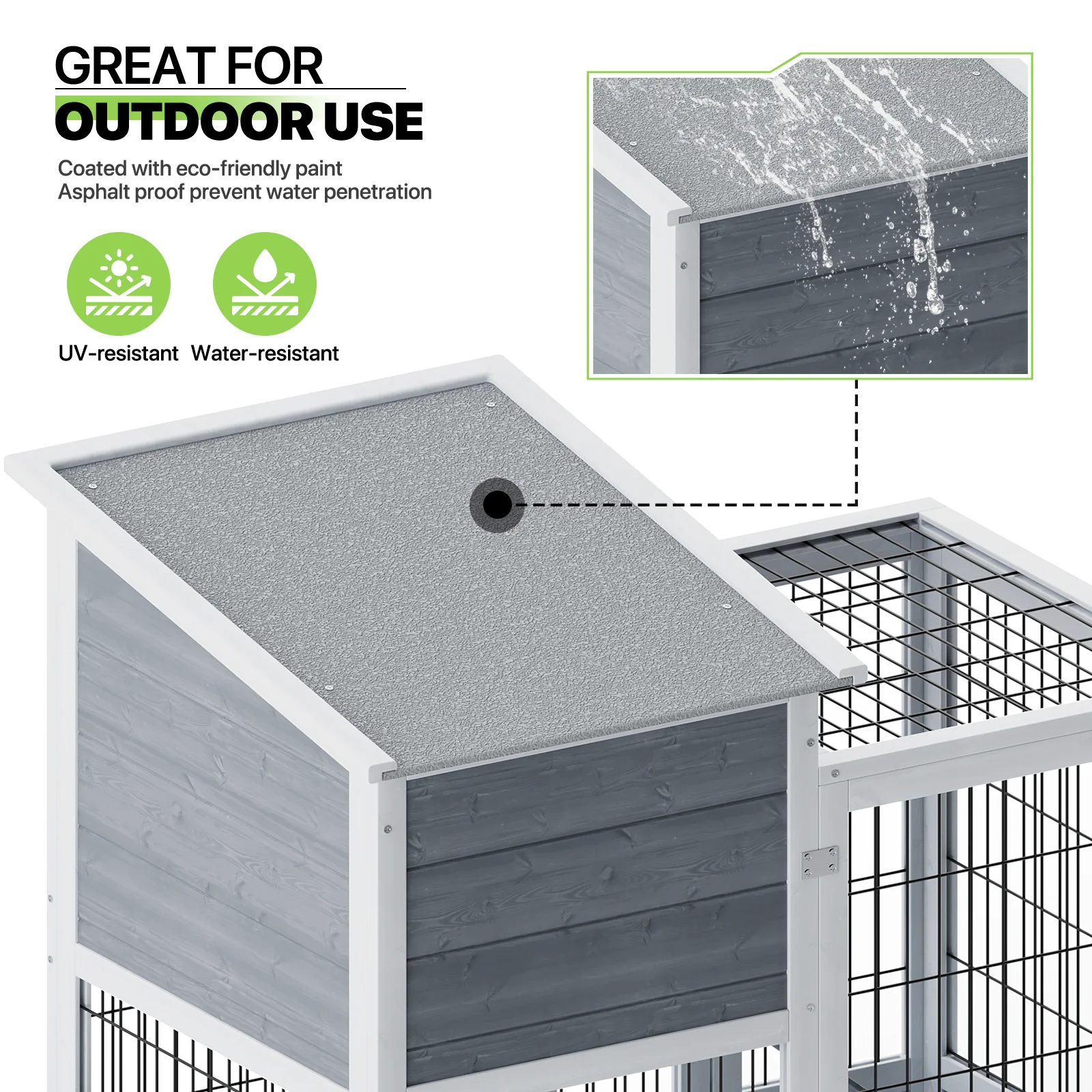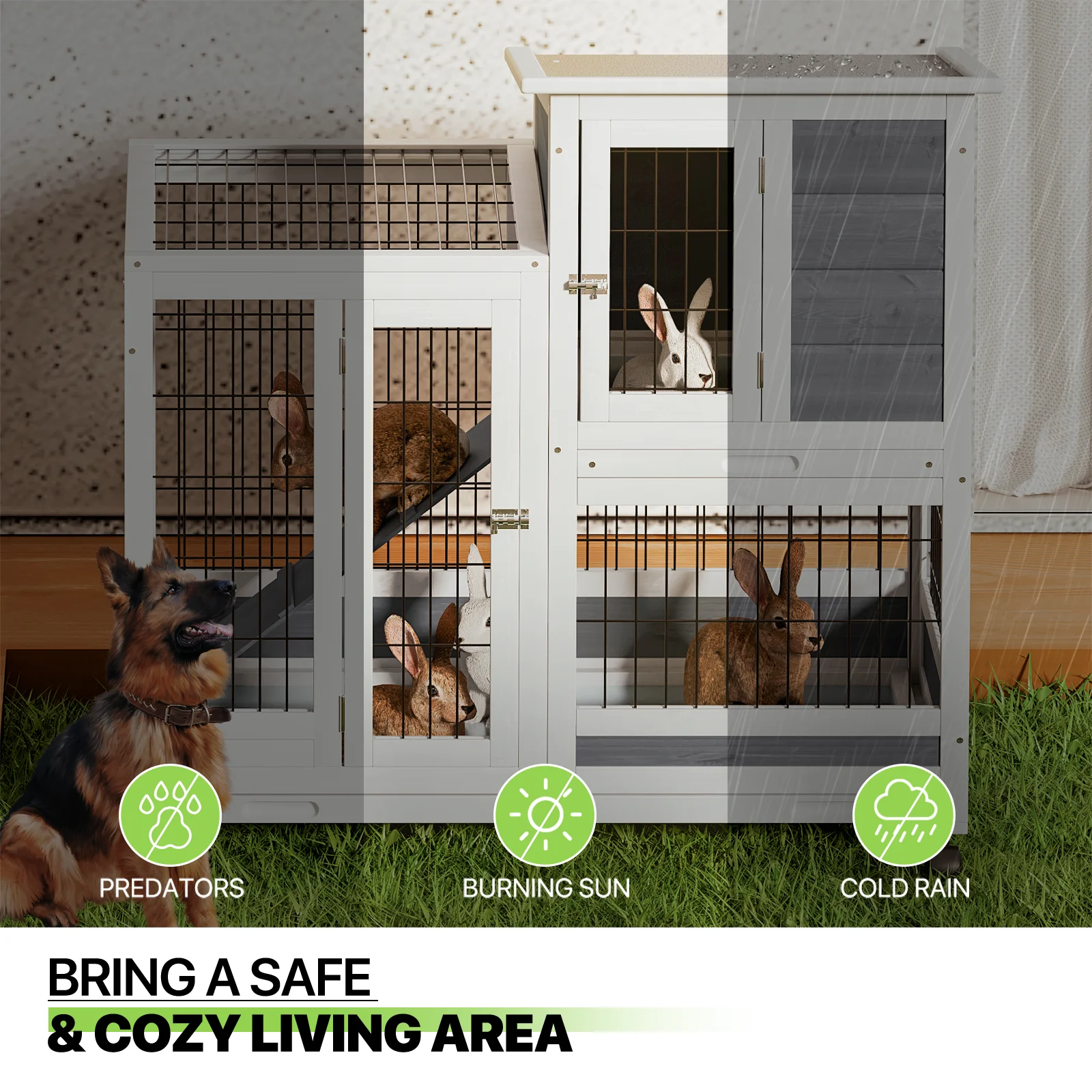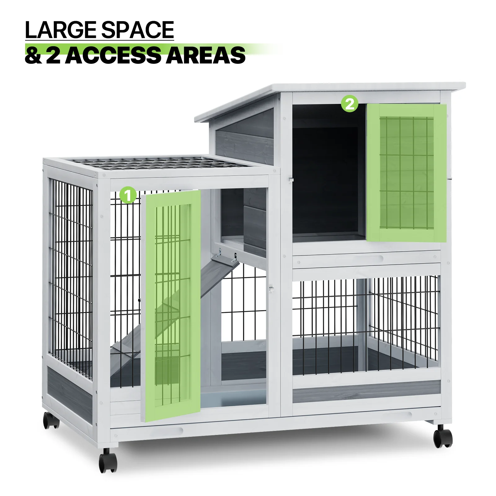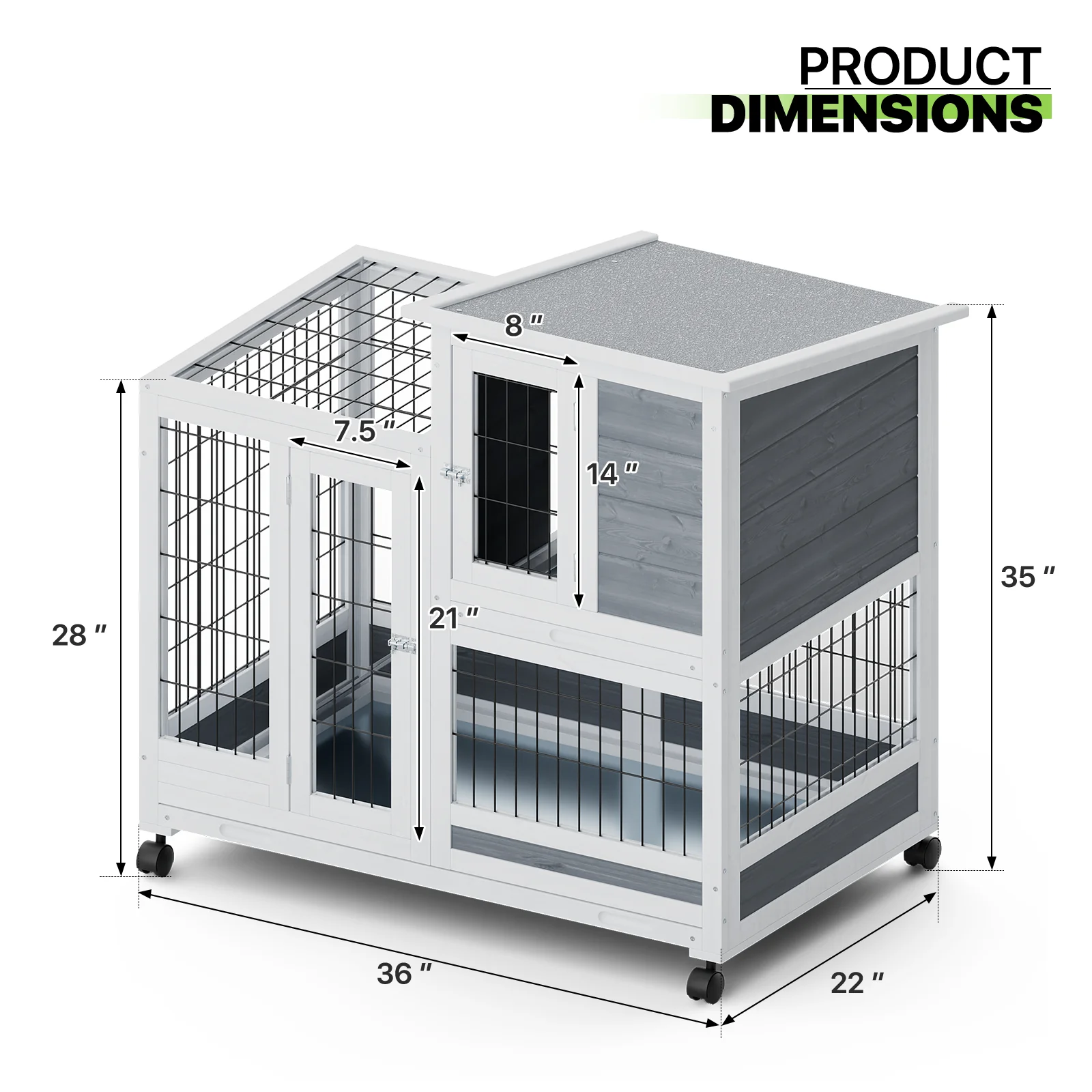 Magshion 36" Rabbit Hutch with Wheel, Safe & Cozy Wooden Bunny Cage for Small Animal with Anti-Slip Ramp, Gray - Curated Treasures Market