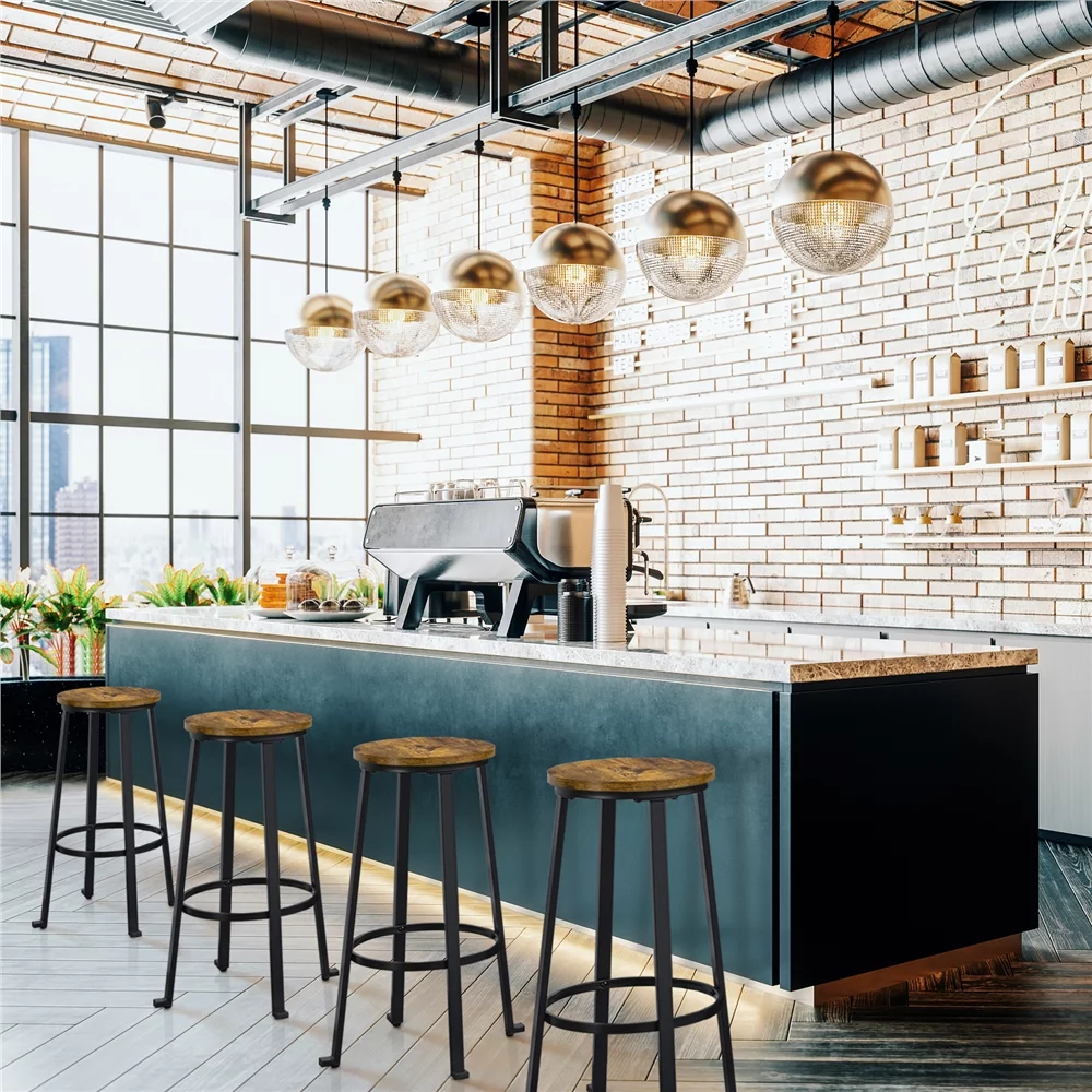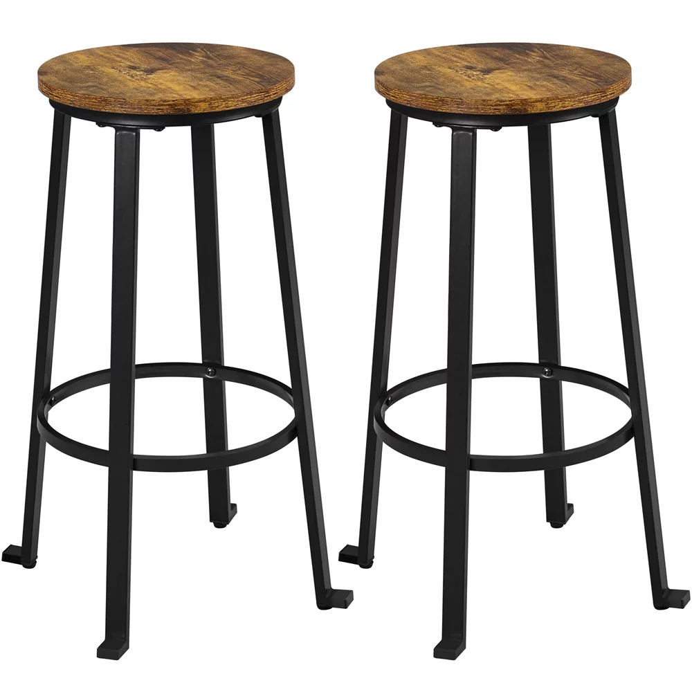Yaheetech 2pcs 29.5'' H Pub Height Stools Bar Stools with Metal Frame and Round Top, Rustic Brown - Curated Treasures Market