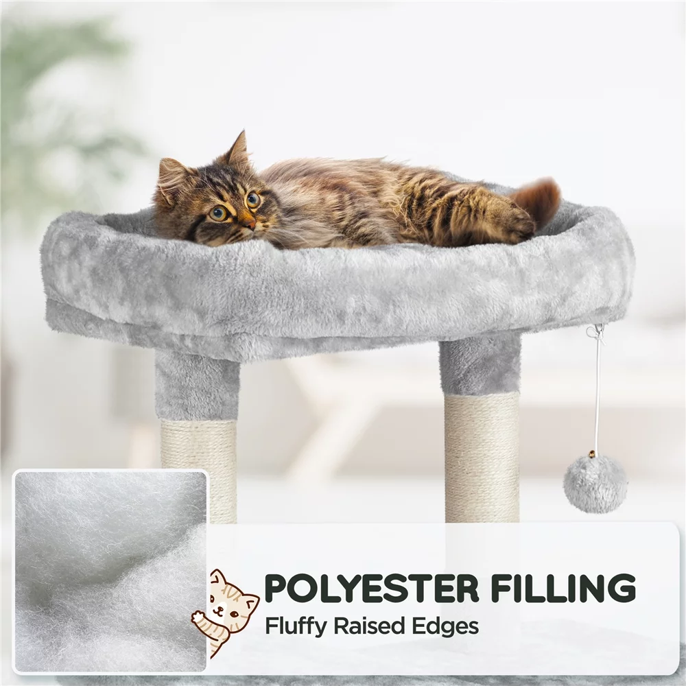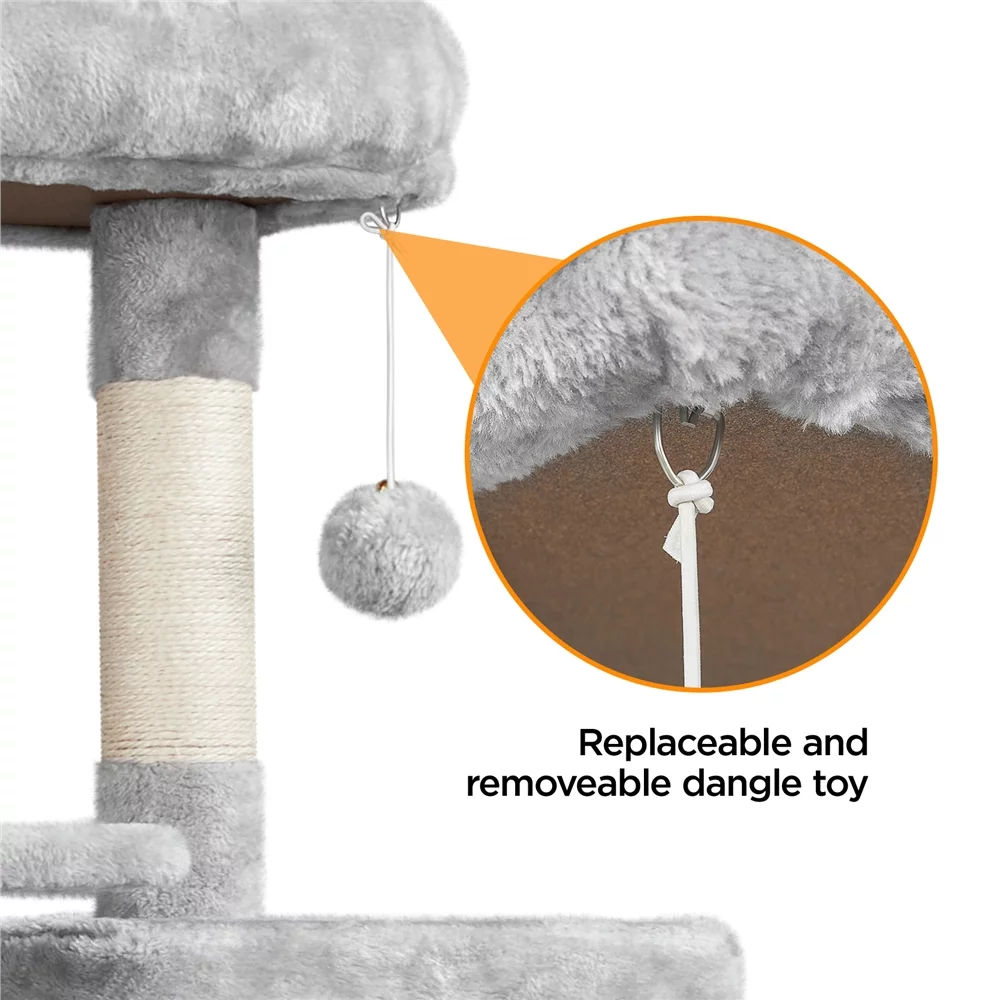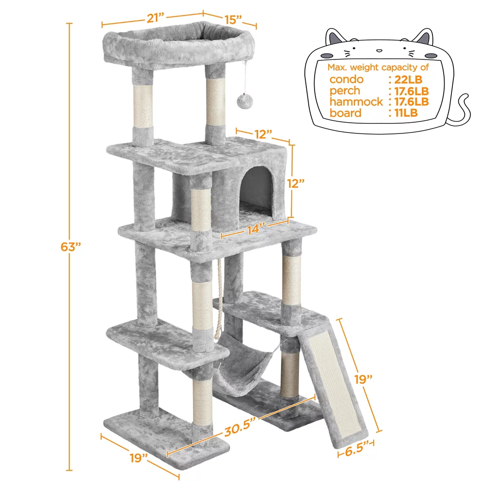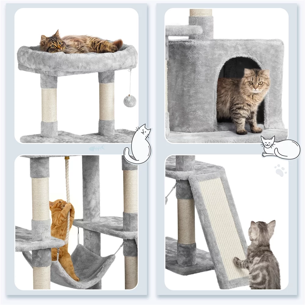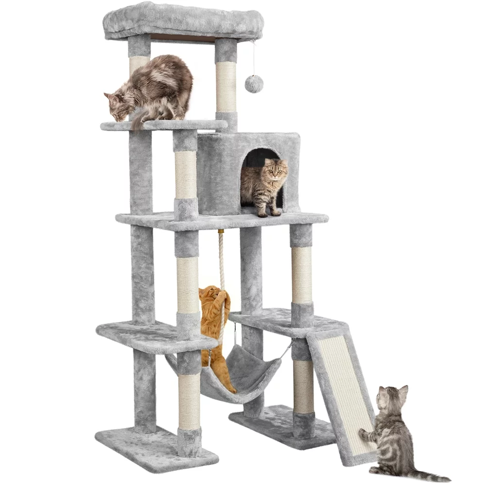 Easyfashion 63" Height Large Plush Cat Tree Condos with Hammock, Light Gray - Curated Treasures Market