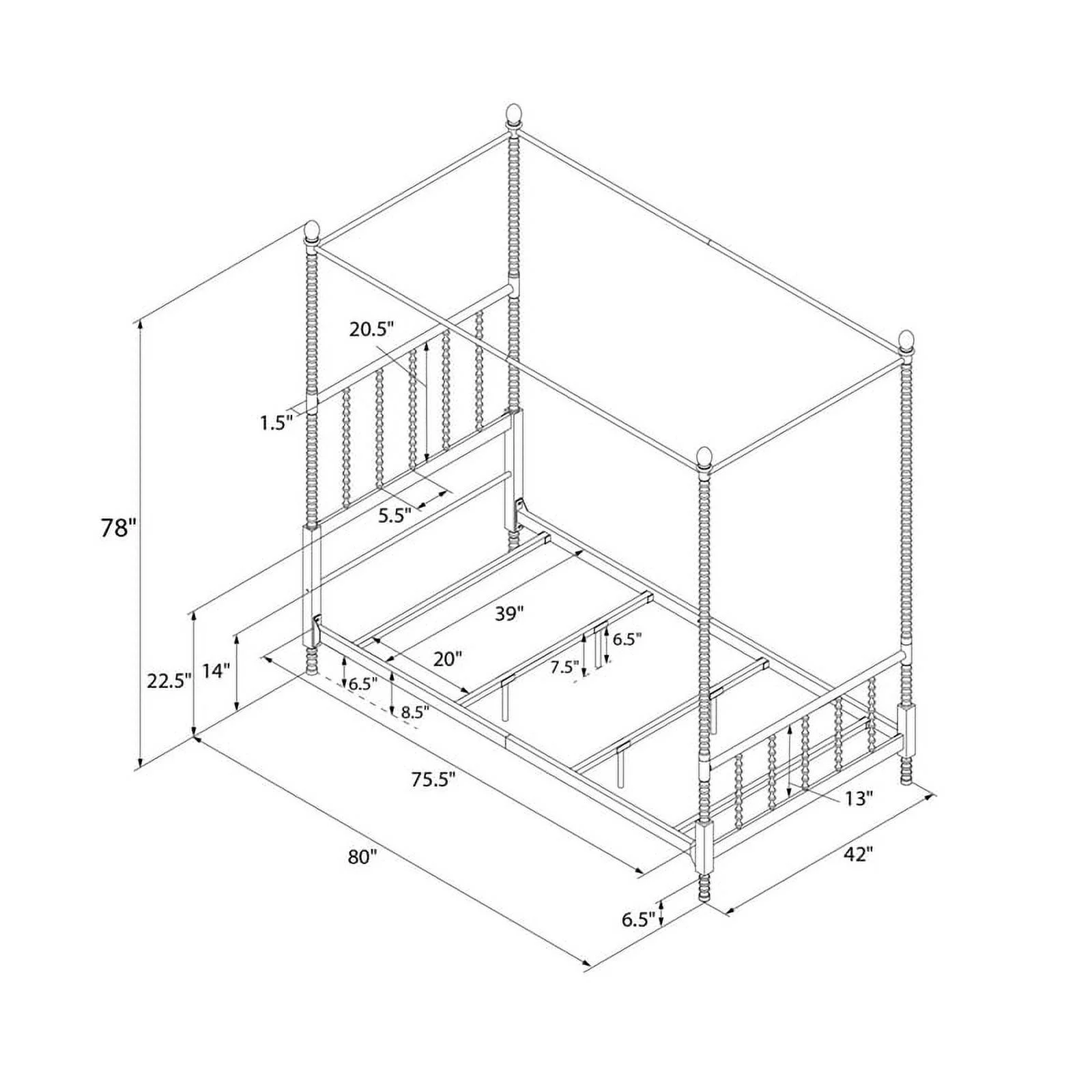 DHP Emerson Traditional Metal Canopy Bed, Twin, White - Curated Treasures Market