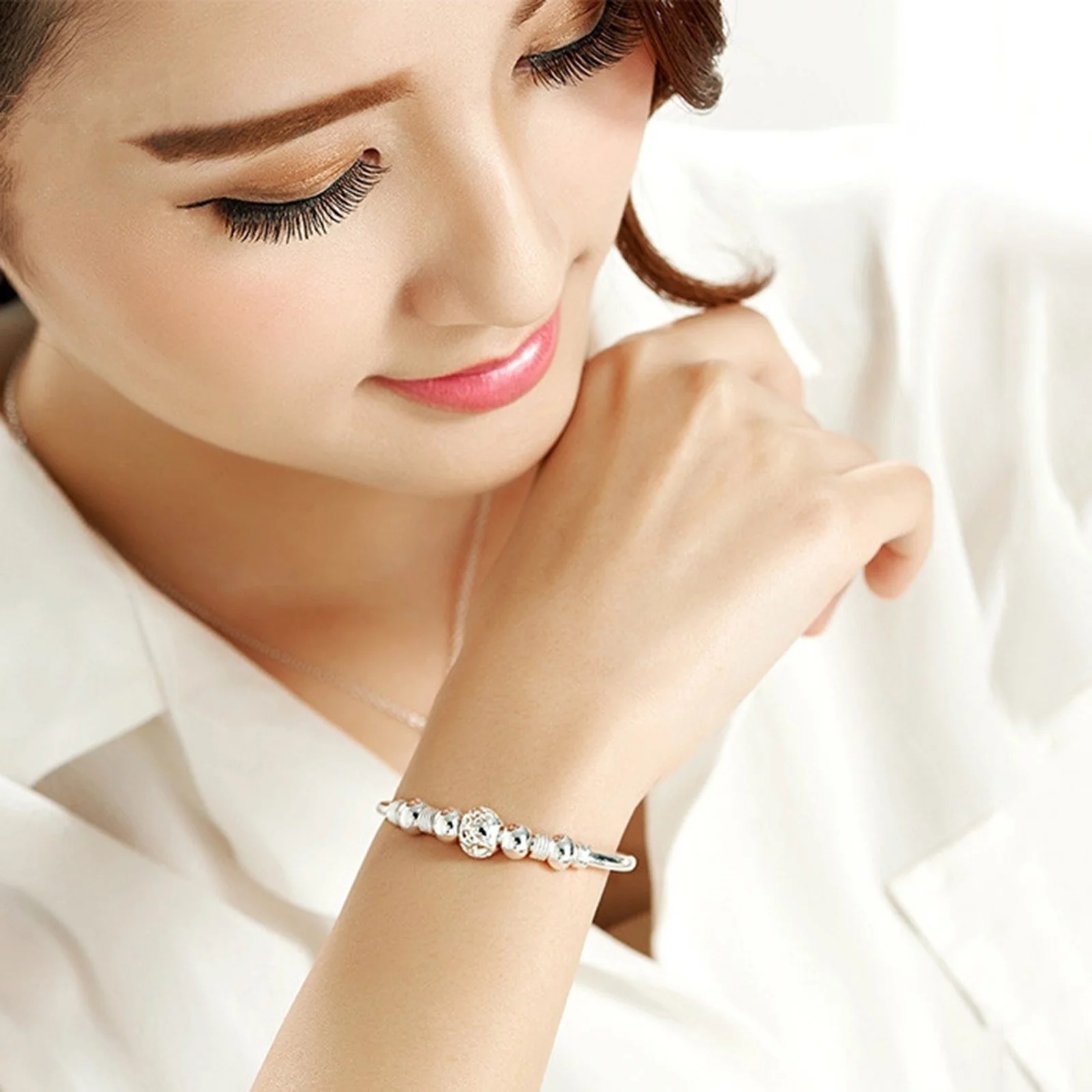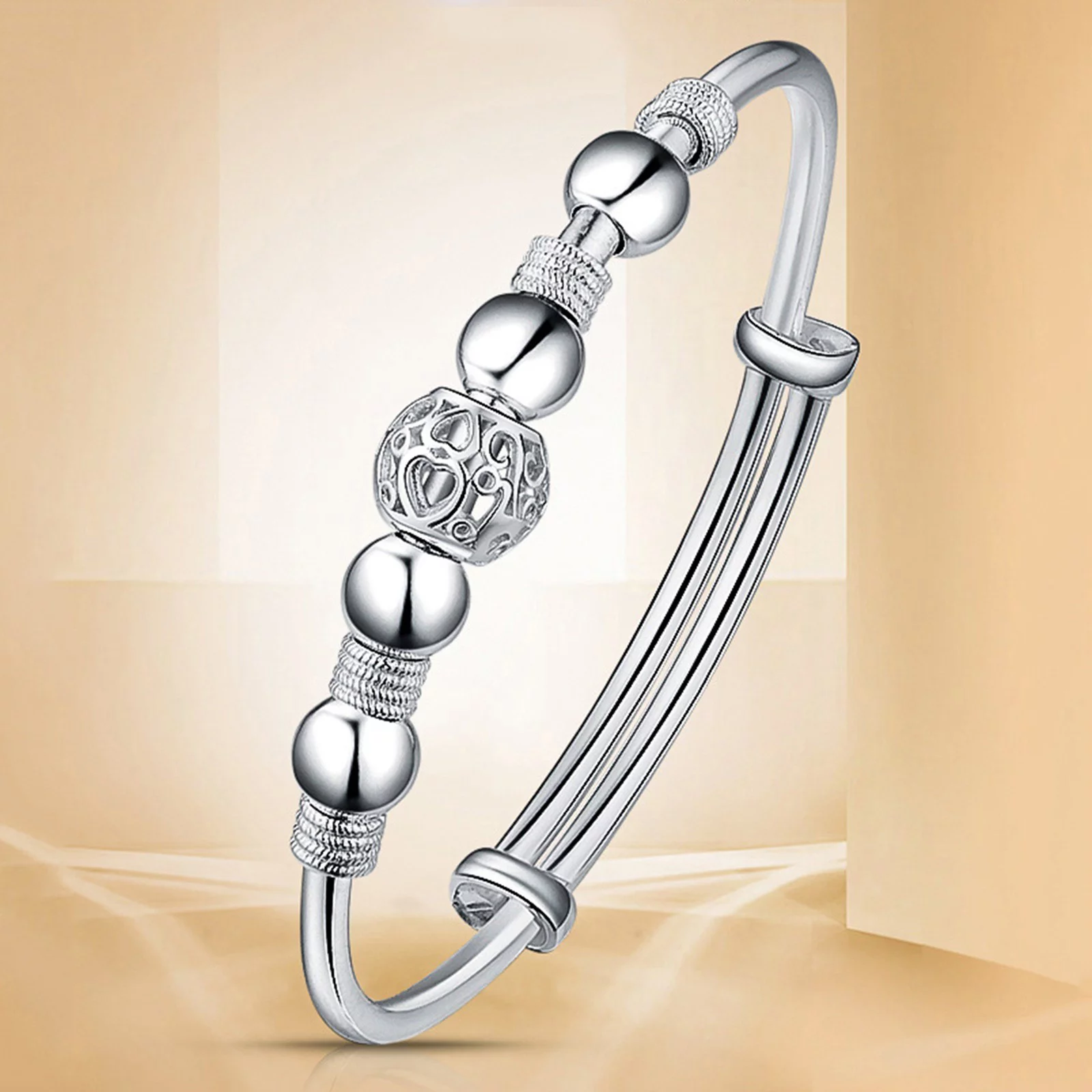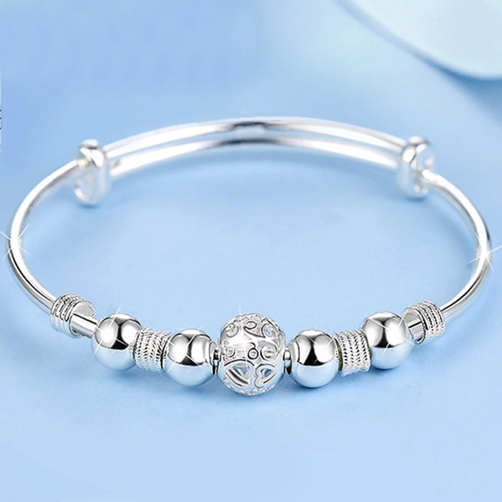 BOLUOYI Earrings for Women Sterling Graduation Gifts 1Pc Silver Beads Bracelet Silver Length Adjustable Bracelet Jewelry Charm Bracelet Turn Luck Bracelet Birthday Surprise Gift for Woman - Curated Treasures Market