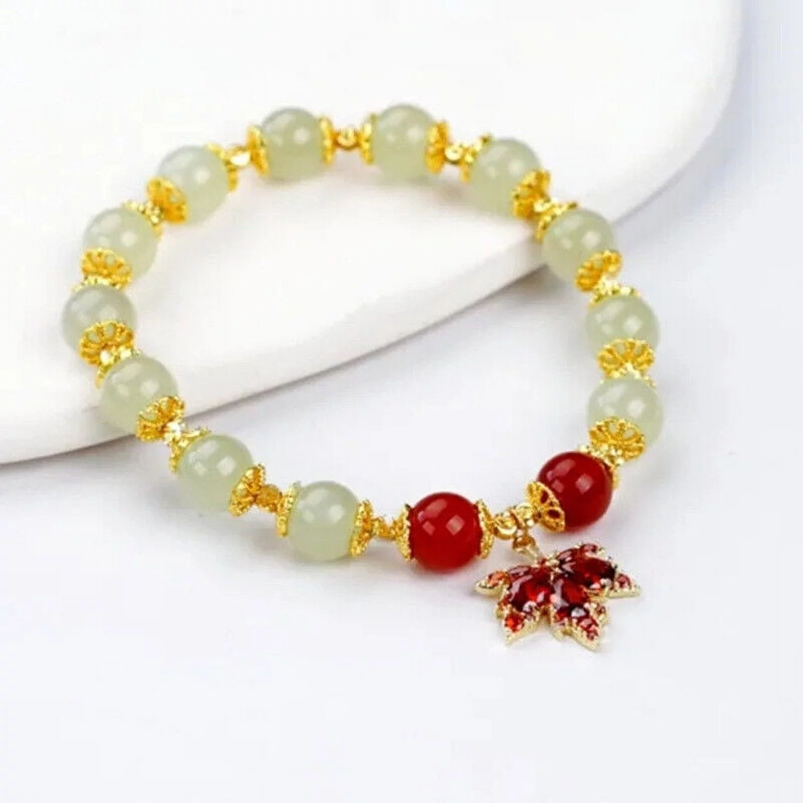 Chinese Natural Green Jade Bracelets for Women,Luck Beaded Jewelry with Elastic - Curated Treasures Market