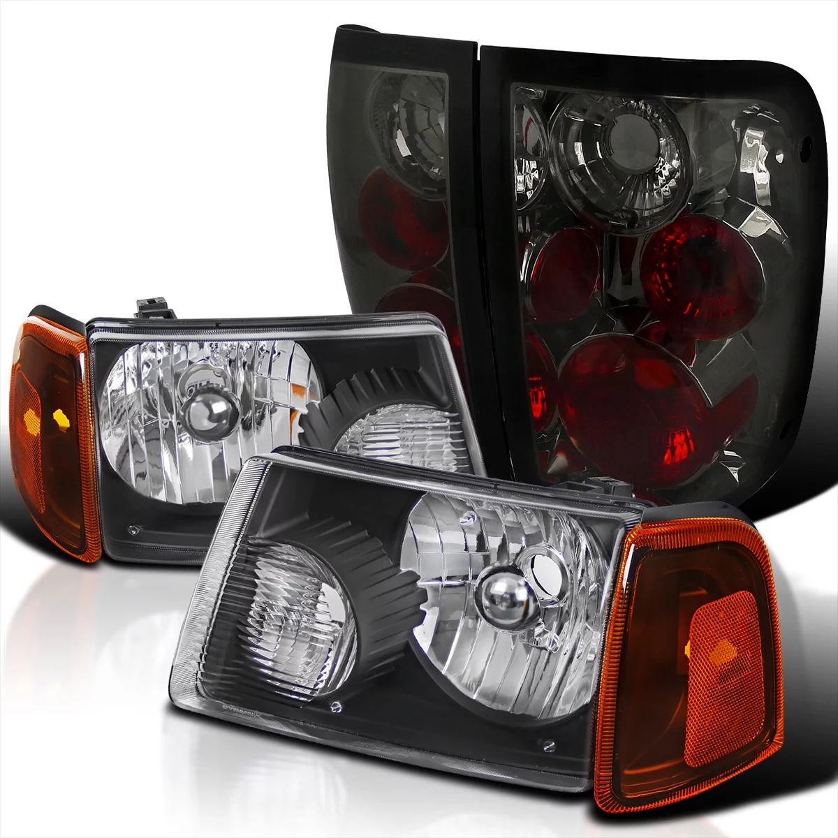 Spec-D Tuning for Ford Ranger Black Headlights+Amber Corner Lamps+Smoke Tail Brake Lights - Curated Treasures Market