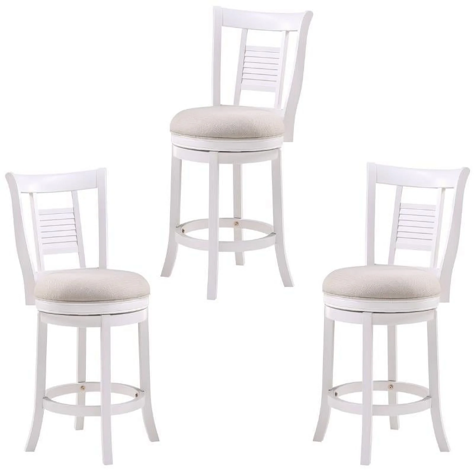 Home Square 3 Piece Upholstered Solid Wood Swivel Counter Stool Set in White - Curated Treasures Market