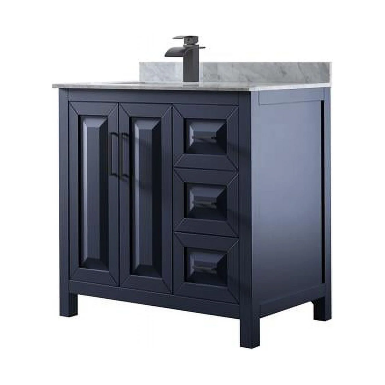 36 in. Daria Single Bathroom Vanity with White Carrara Marble Countertop, Undermount Square Sink & Matte Black Trim - Dark Blue - Curated Treasures Market