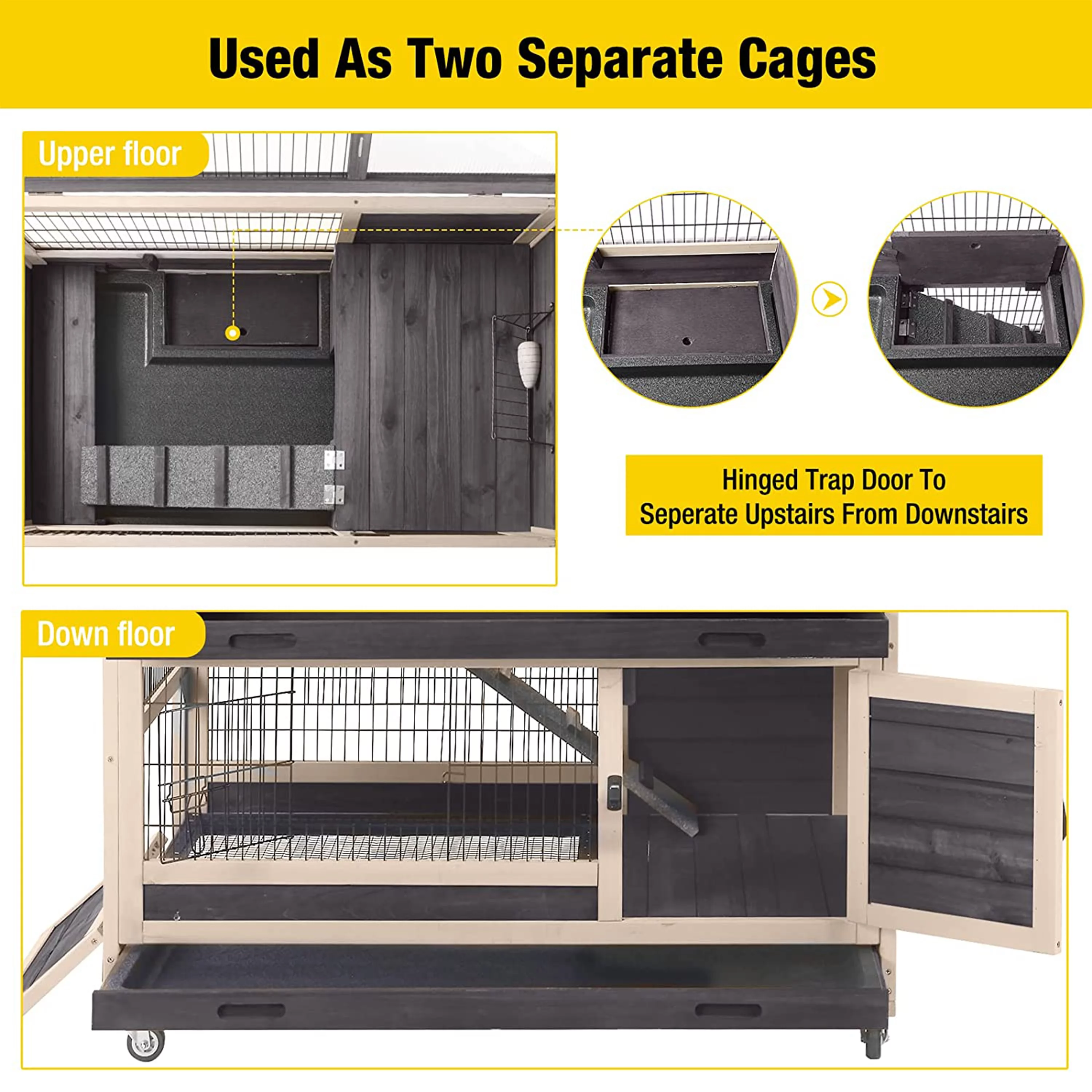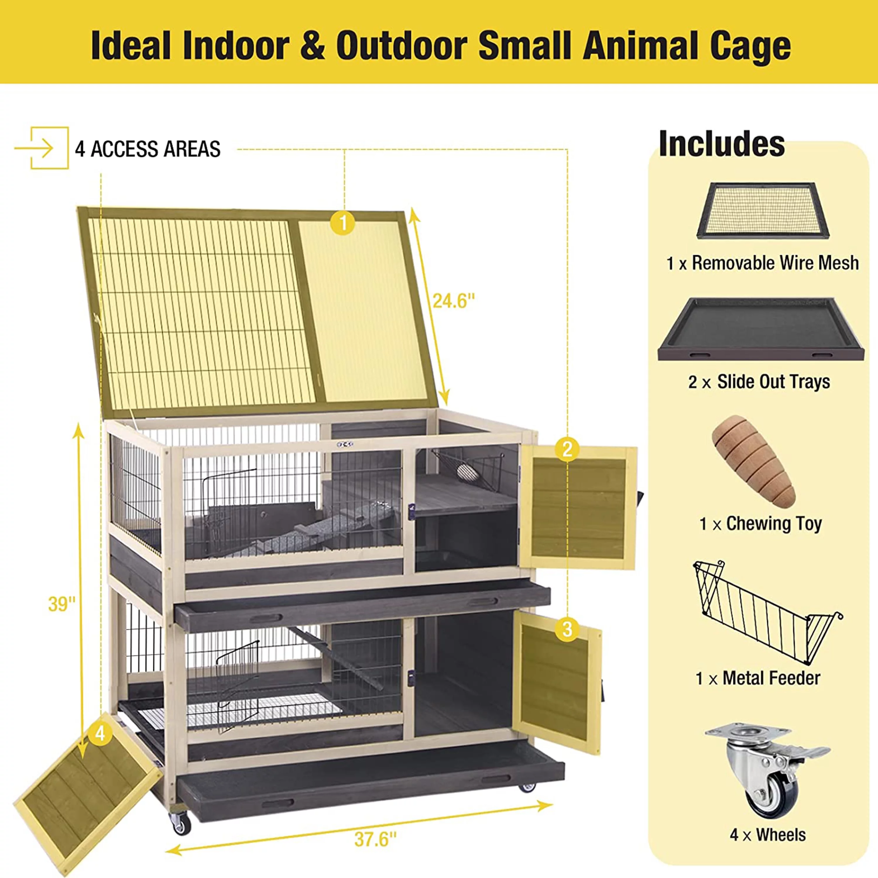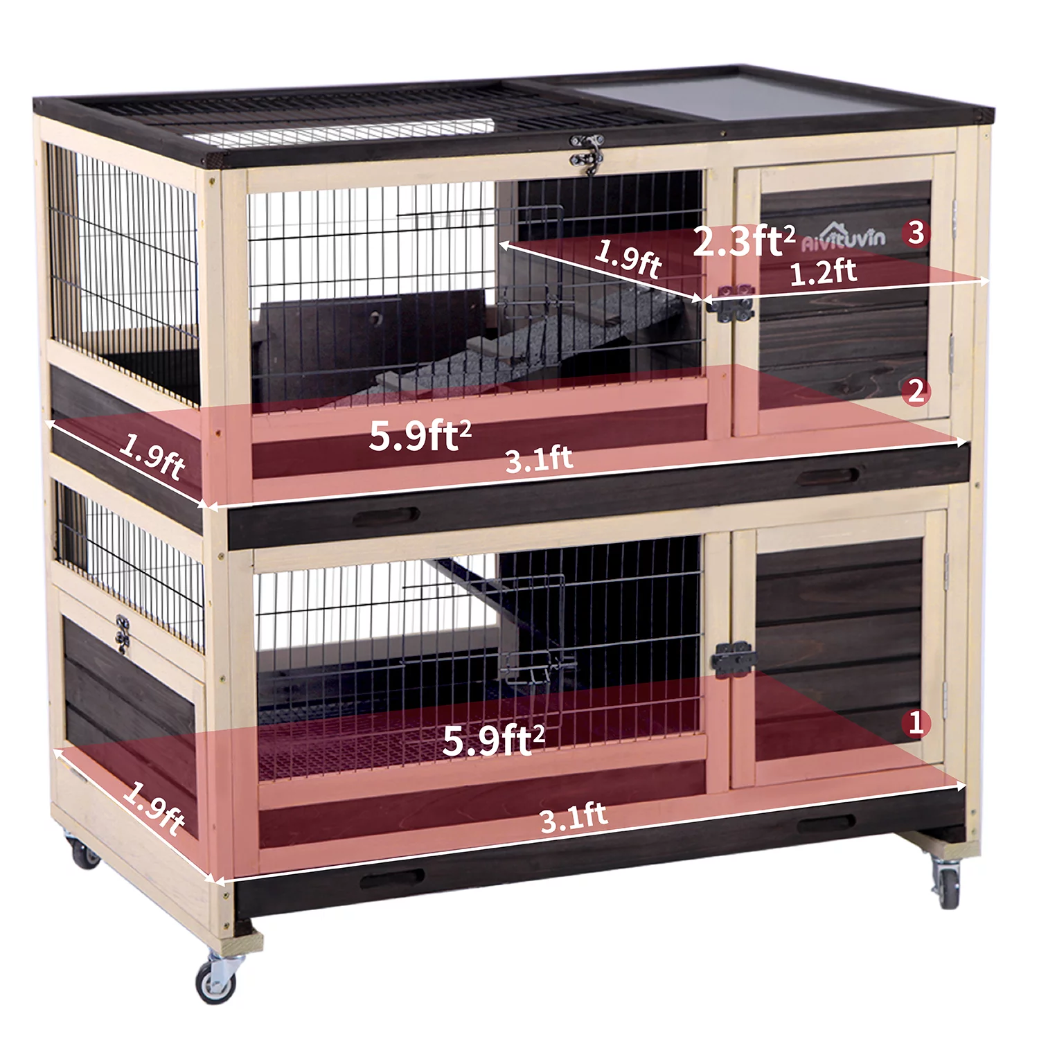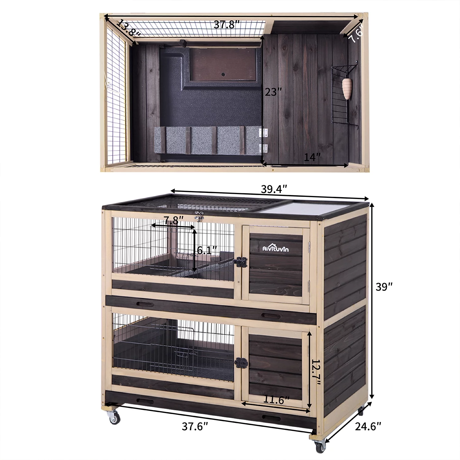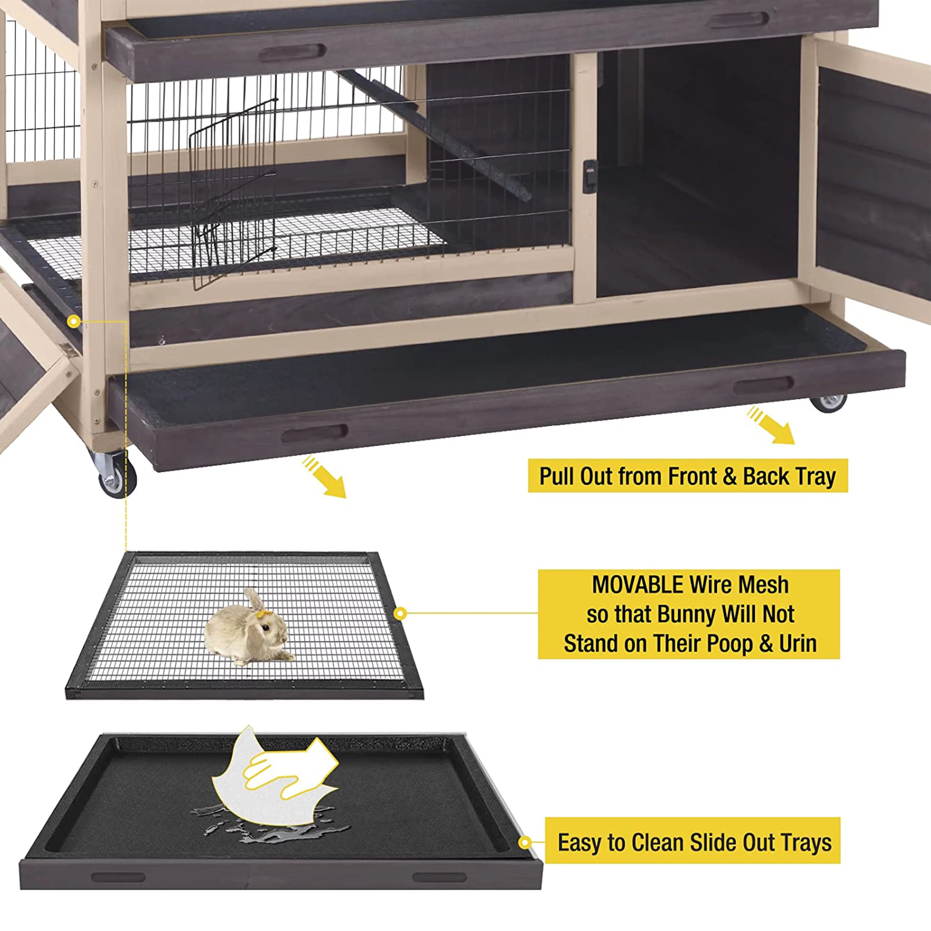 Morgete Outdoor Rabbit Hutch 2 Layer Bunny Cage Indoor-Brown - Curated Treasures Market