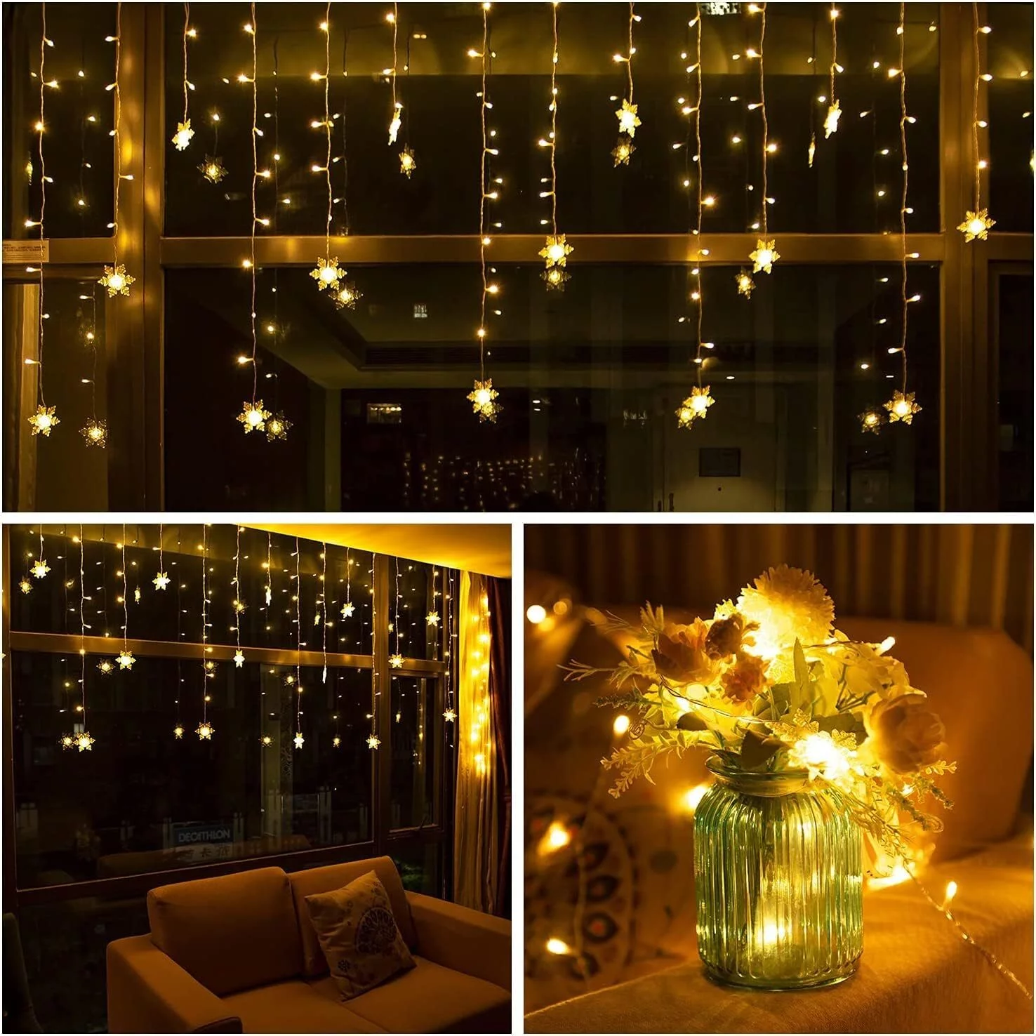Snowflake Window Curtain String Lights - 13.1 ft Multicolor/Warm White/White Color Window Curtain String Connectable Twinkle Light for Christmas Halloween Holiday Decor - Curated Treasures Market