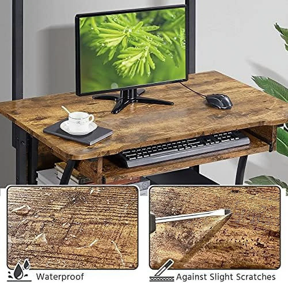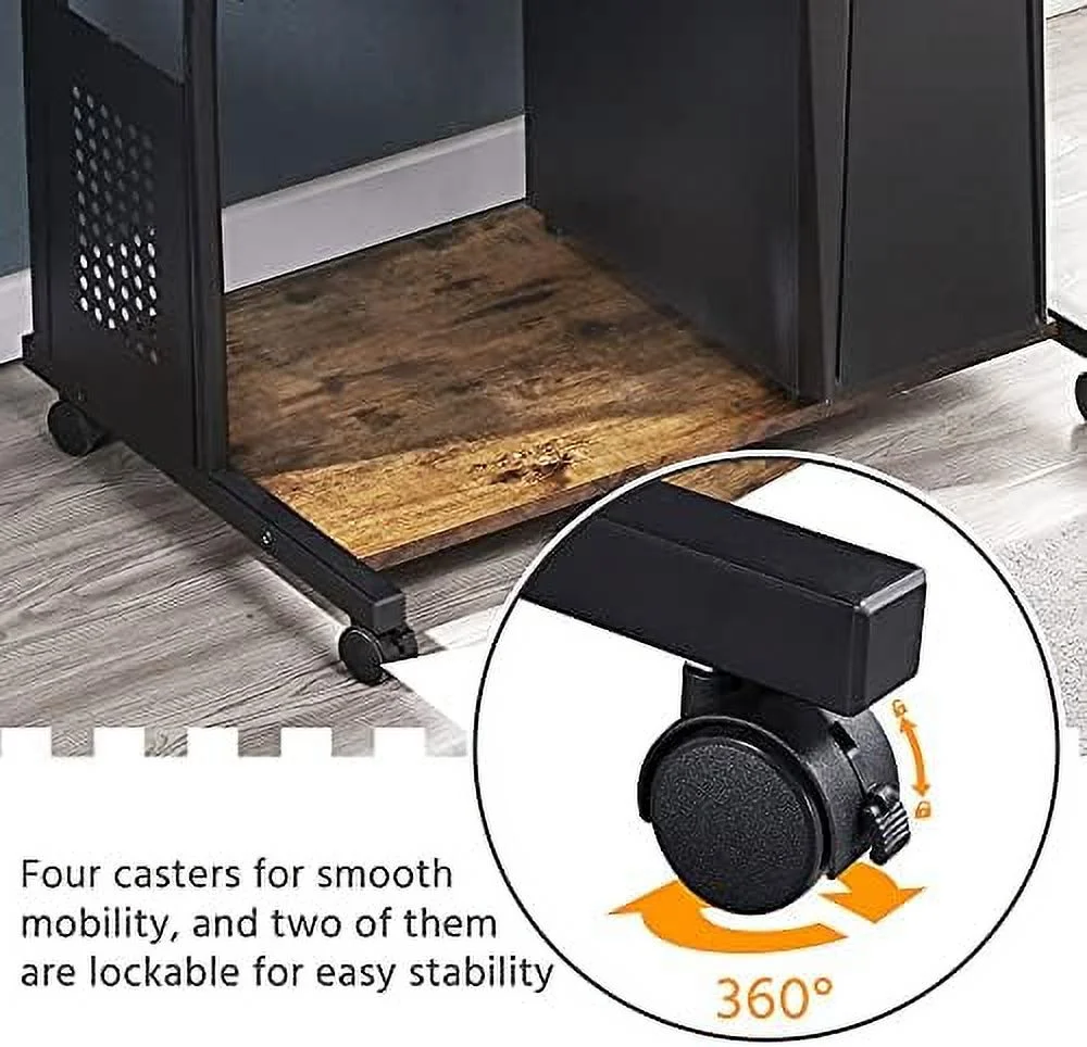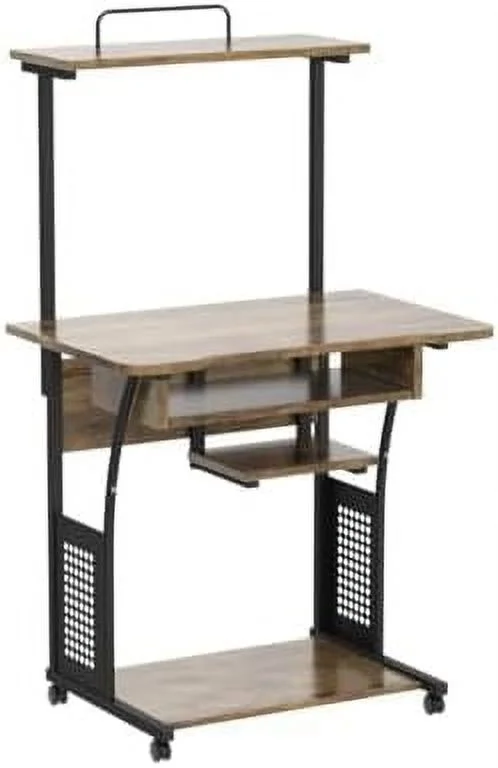 NLTBONNIE 3 Tiers Rolling Computer Desk with Keyboard Tray and Printer for Home Office Mobile Computer Desk for Small Space Retro Computer Table Compact PC Laptop Workstation Rustic B - Curated Treasures Market