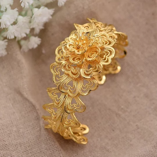 Real 18k Gold Filled cuff Bangles Open wide cuff bangle Dubai Bangle Bracelet - Curated Treasures Market