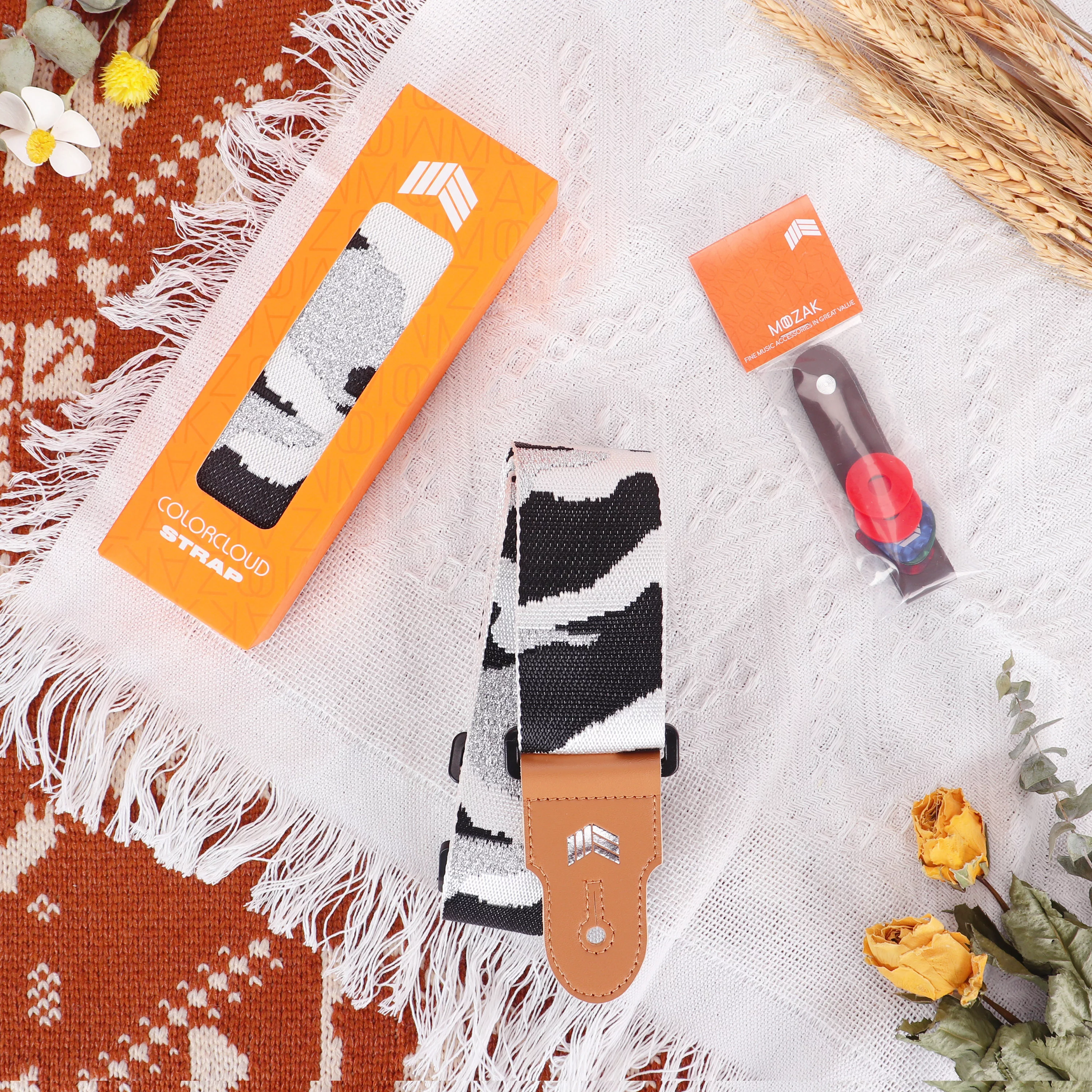 MOOZAK Guitar Strap Set Including 2 Strap Locks, 3 Picks and 1 Strap Headstock Tie (Black White) - Curated Treasures Market