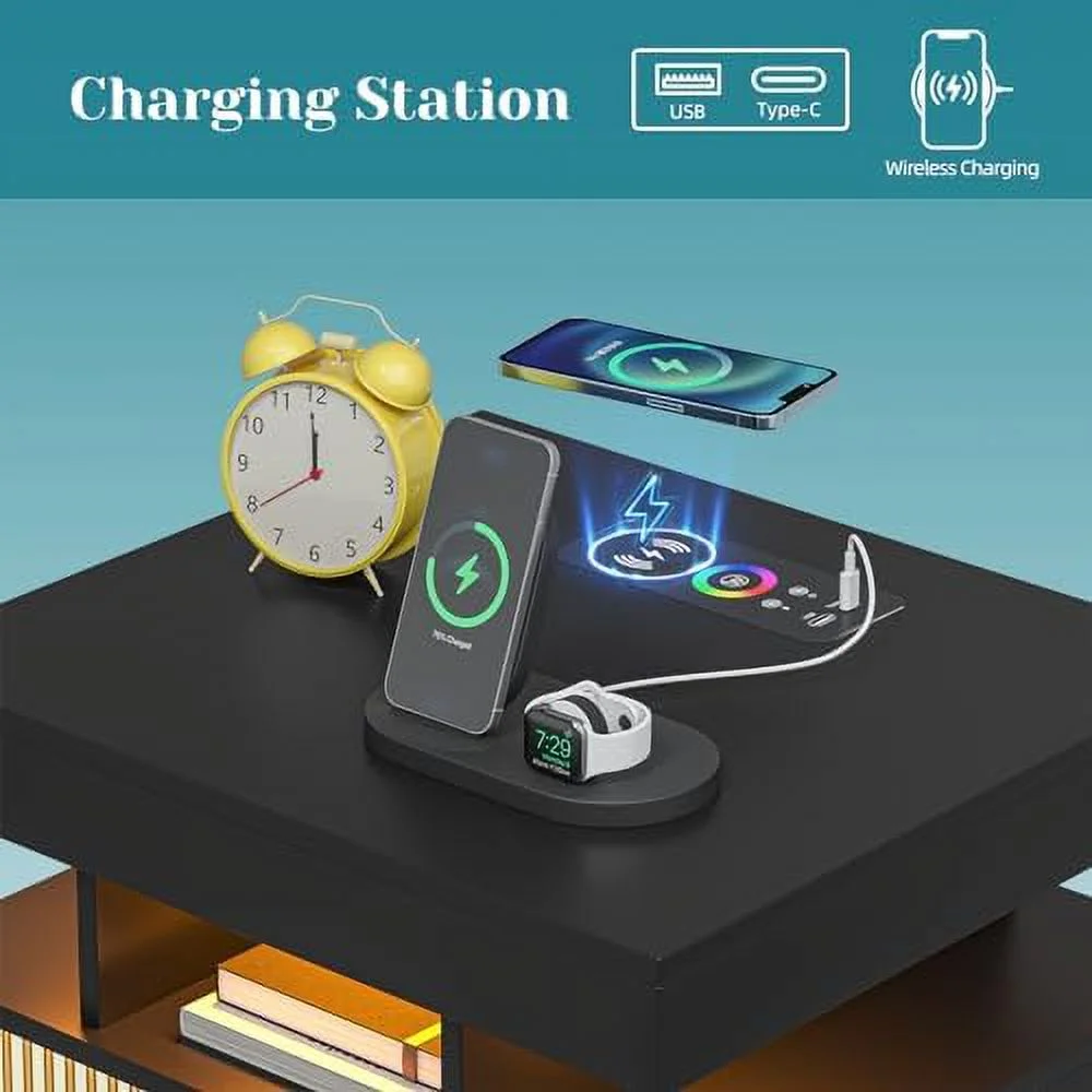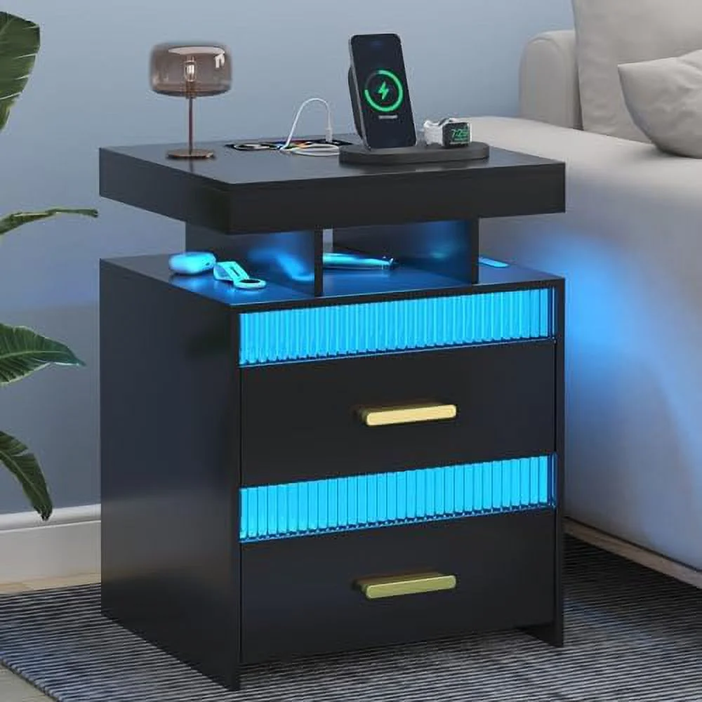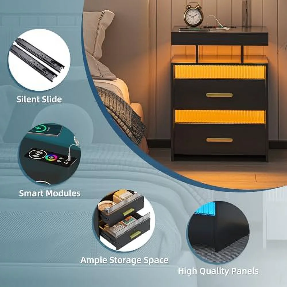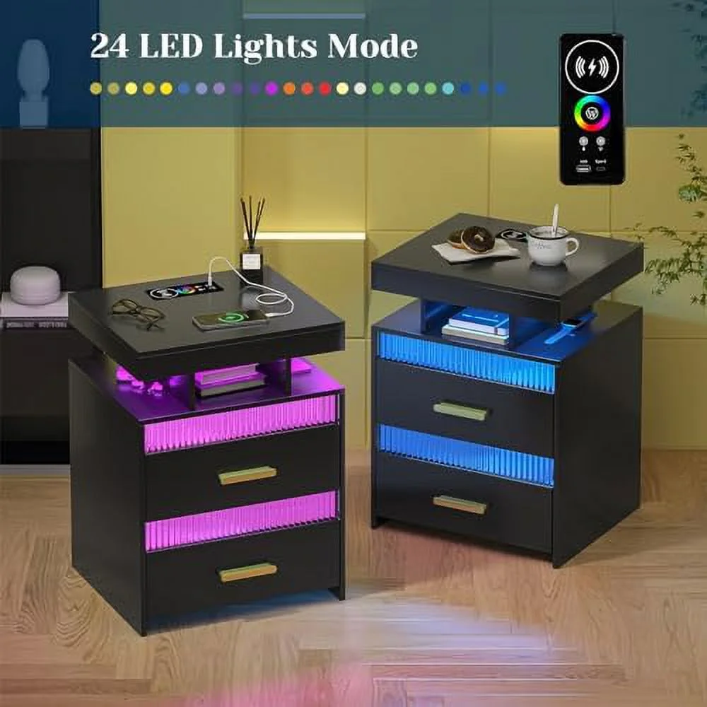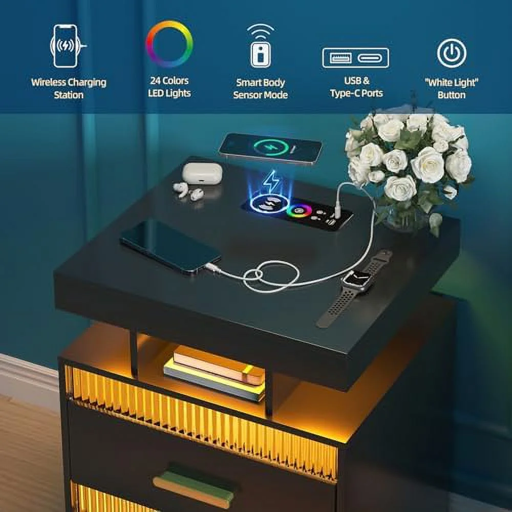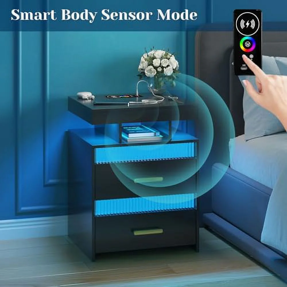 GEROBOOM LED Nightstand with Charging Station Modern End Table with 2 Drawers Bedside Table with with Human Sensor 24 Colors Lights for Bedroom (White ) - Curated Treasures Market