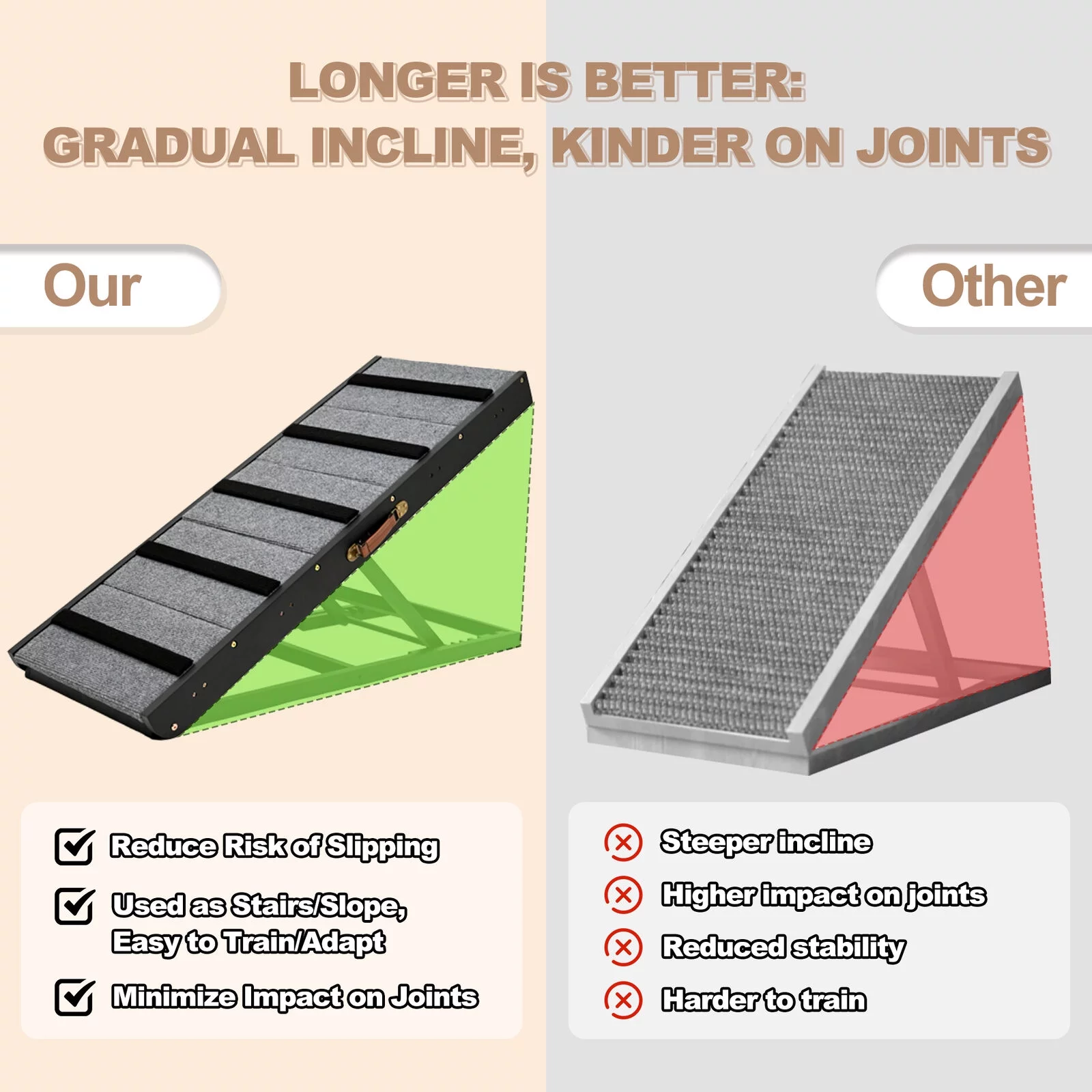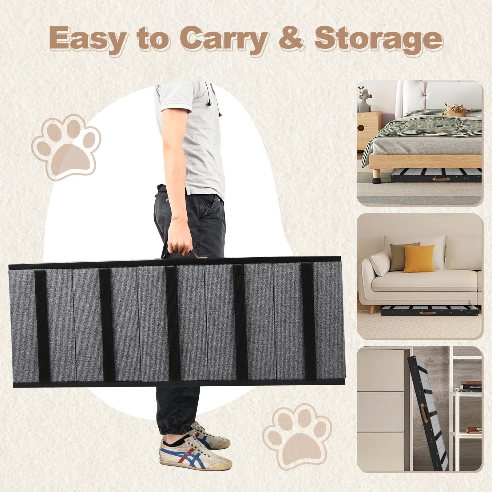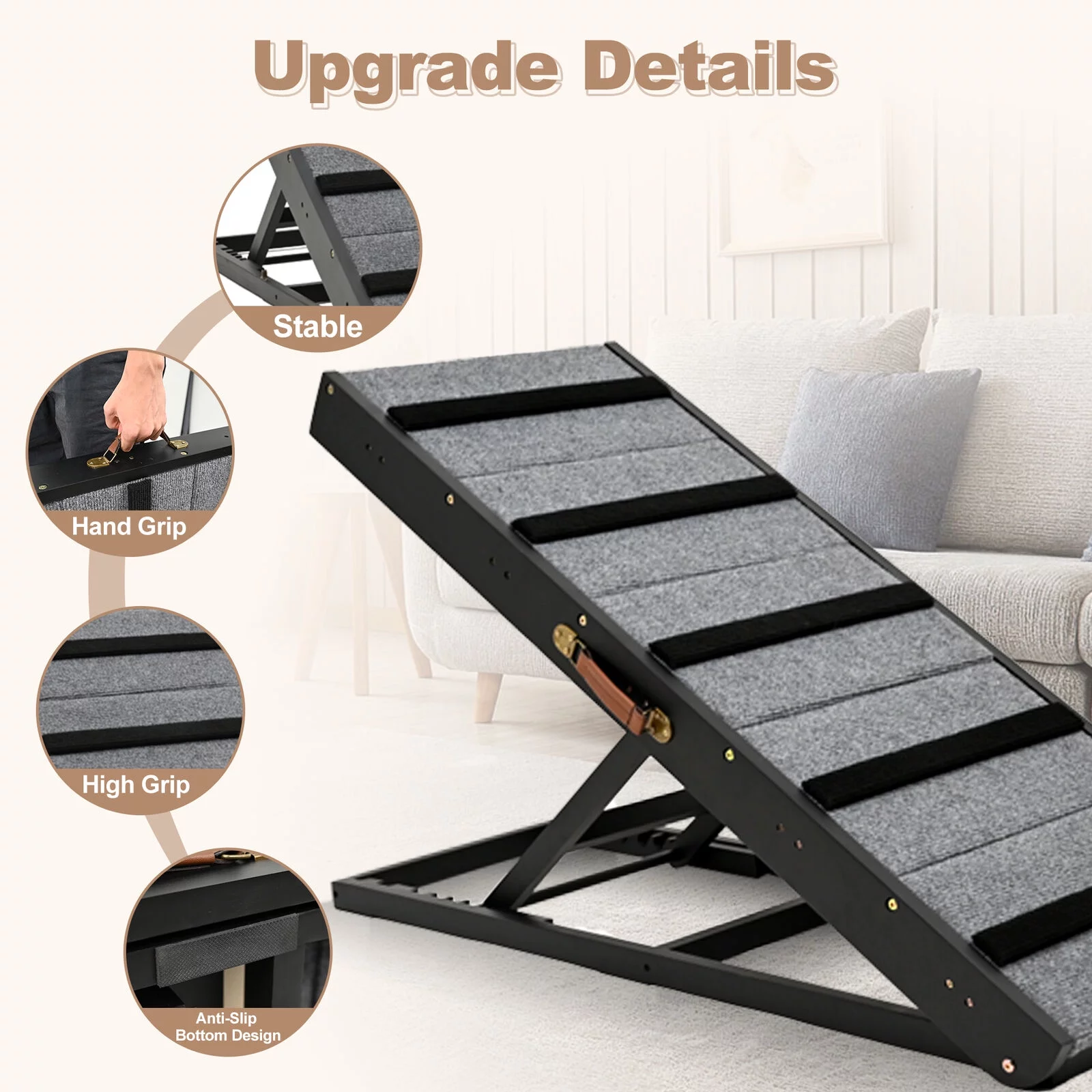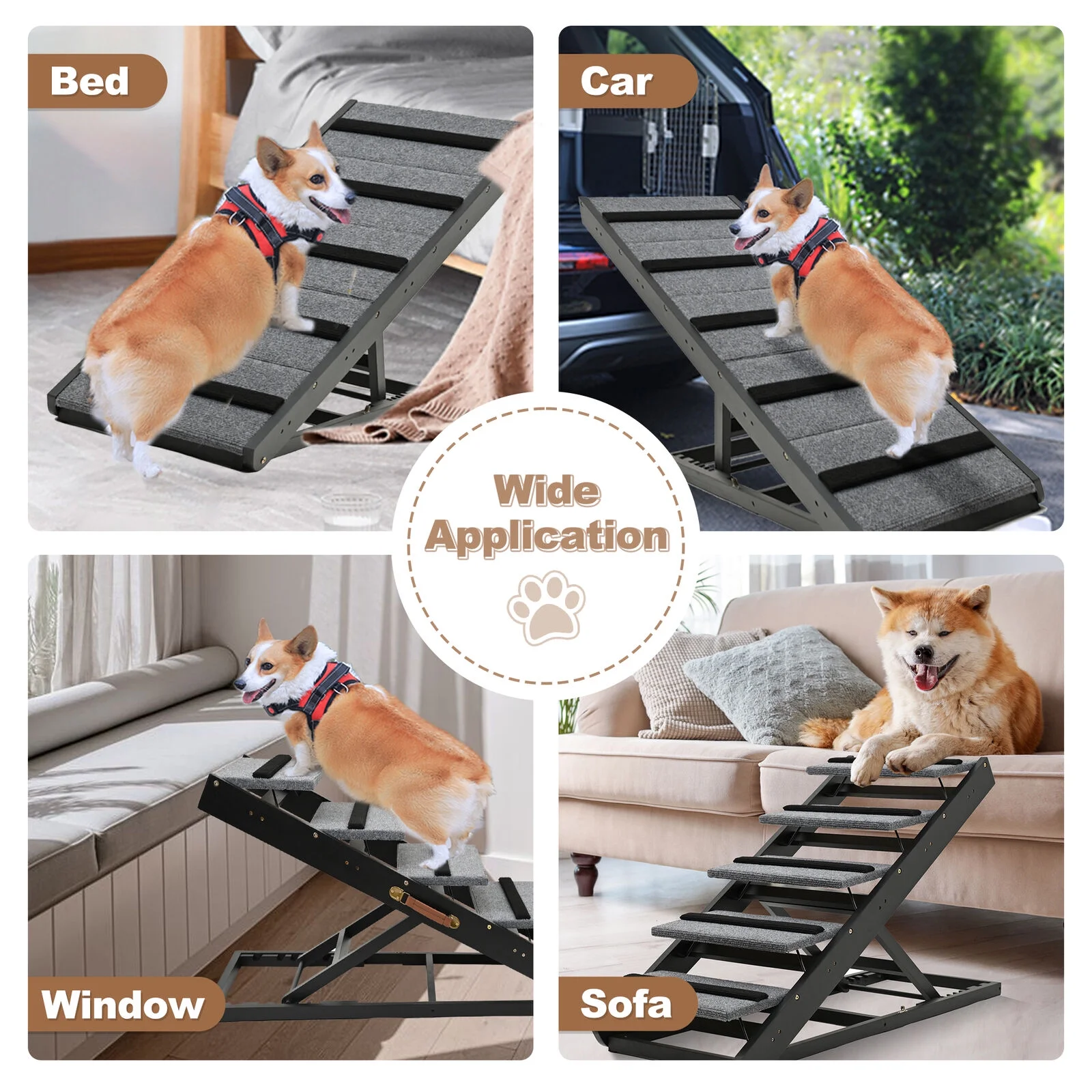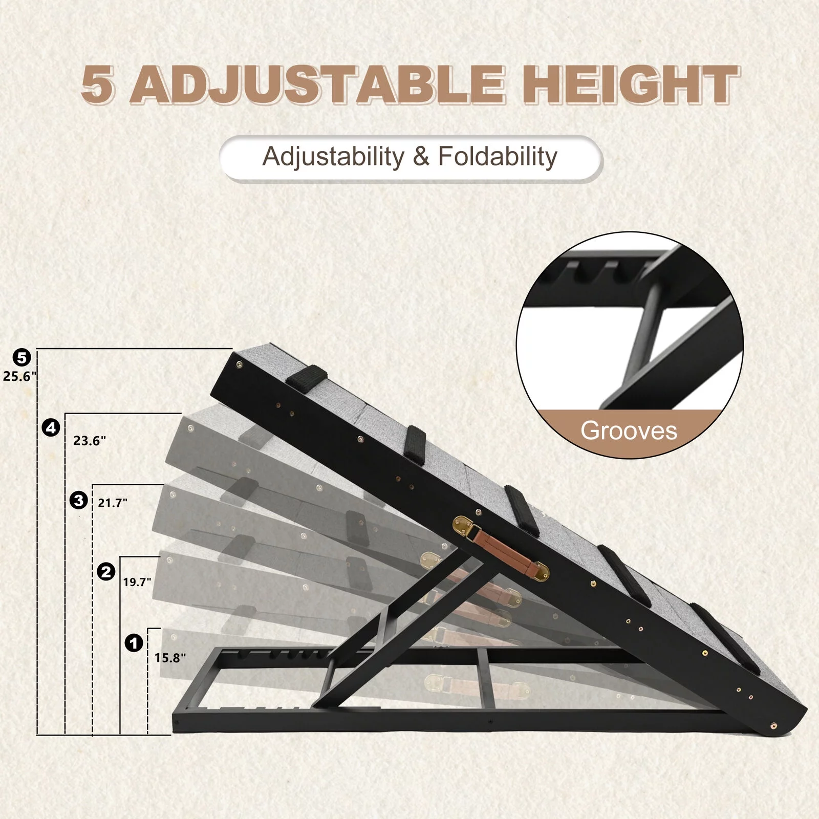 Lilypelle Foldable Pet Ramp , Adjustable Wood Dog Ramp with 5 Heights,Portable Anti-Slip Dog Bed Ramp,200 lbs,Black - Curated Treasures Market