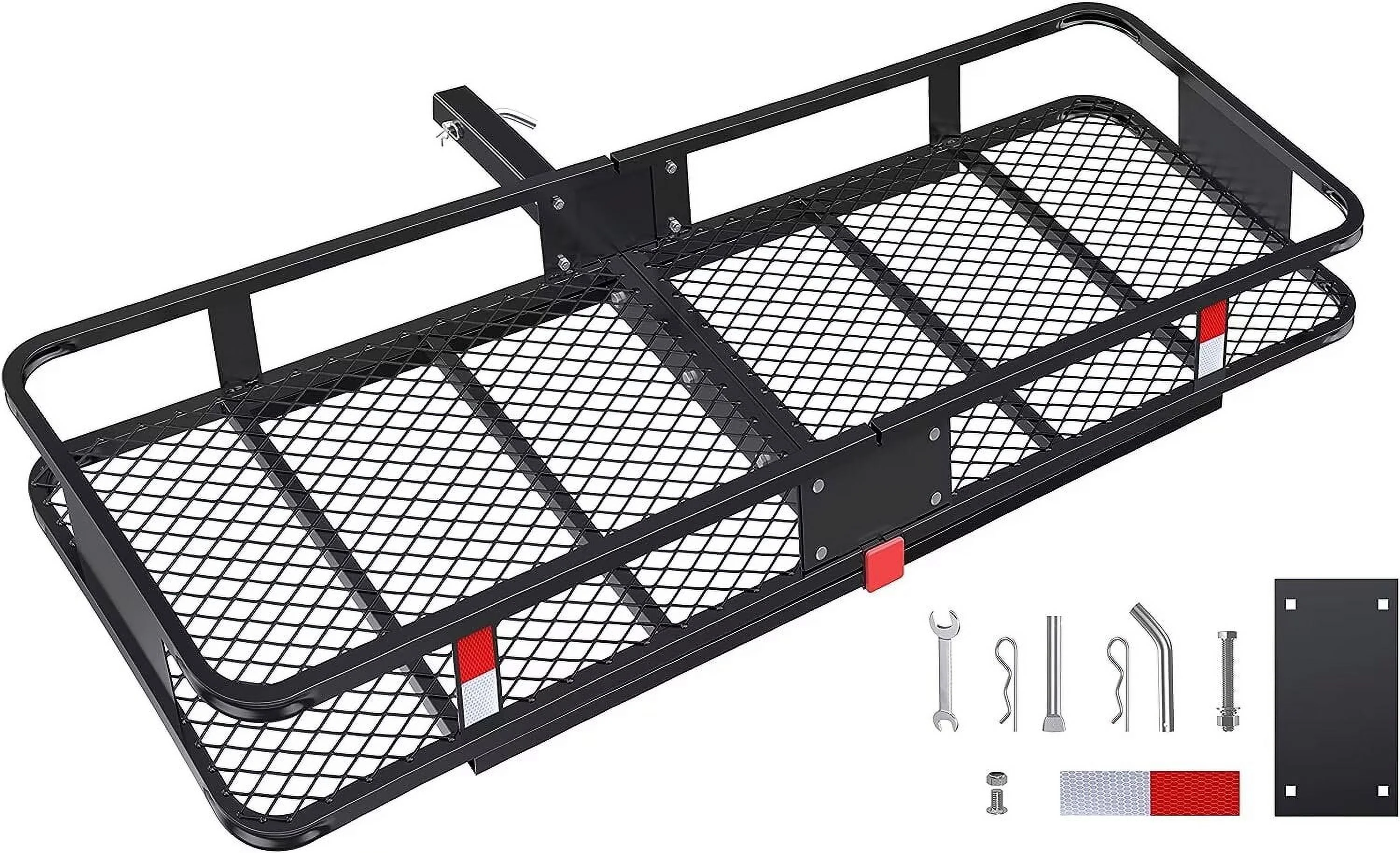 CAMOCOL 60" x 20" x 6" Trailer Hitch Rack Cargo Carrier Folding Hitch Mount Vehicle Cargo Basket 500lb Capacity - Curated Treasures Market