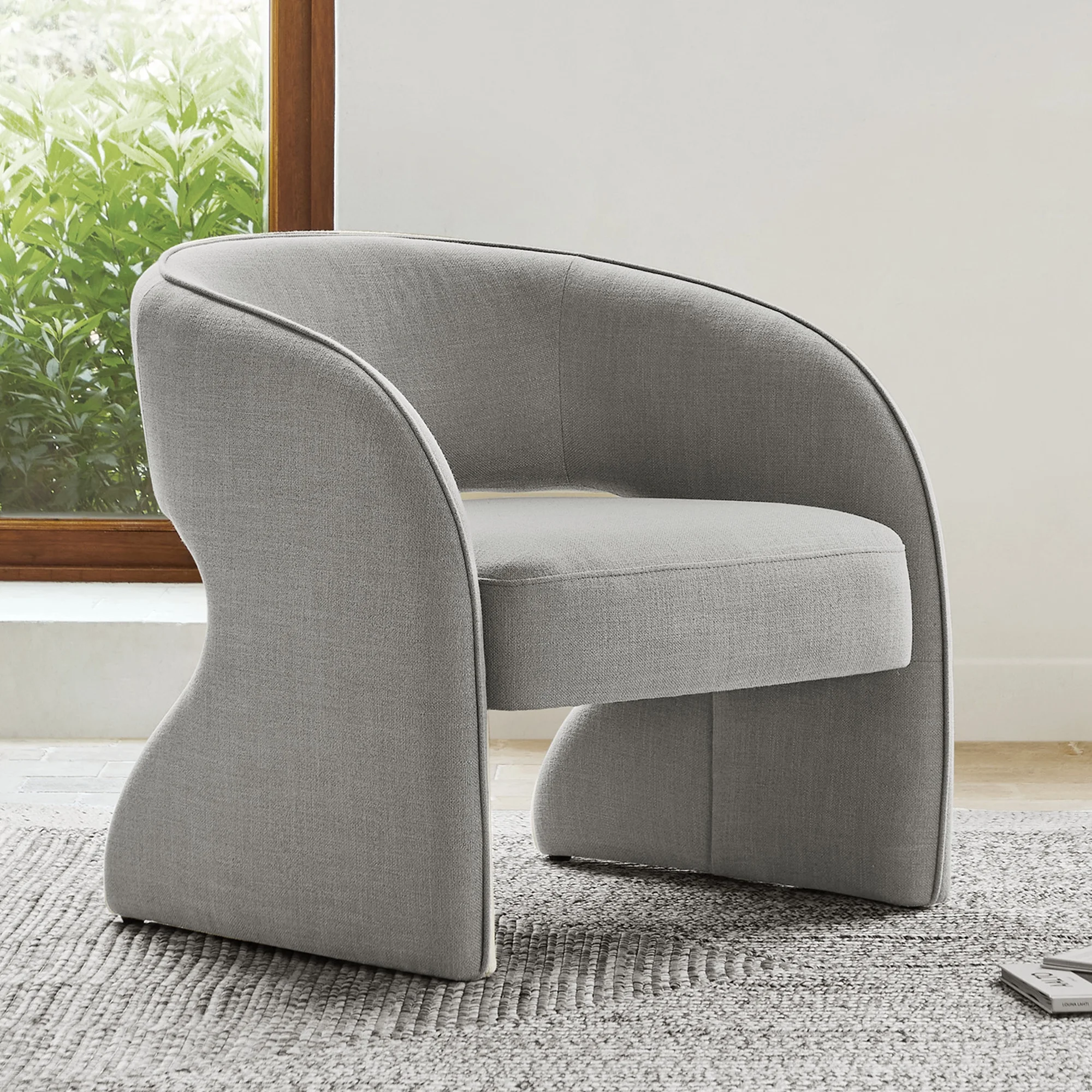 Modern Accent Chair Open Back, Upholstered Arm Chair for Living Room Bedroom, Gray - Curated Treasures Market