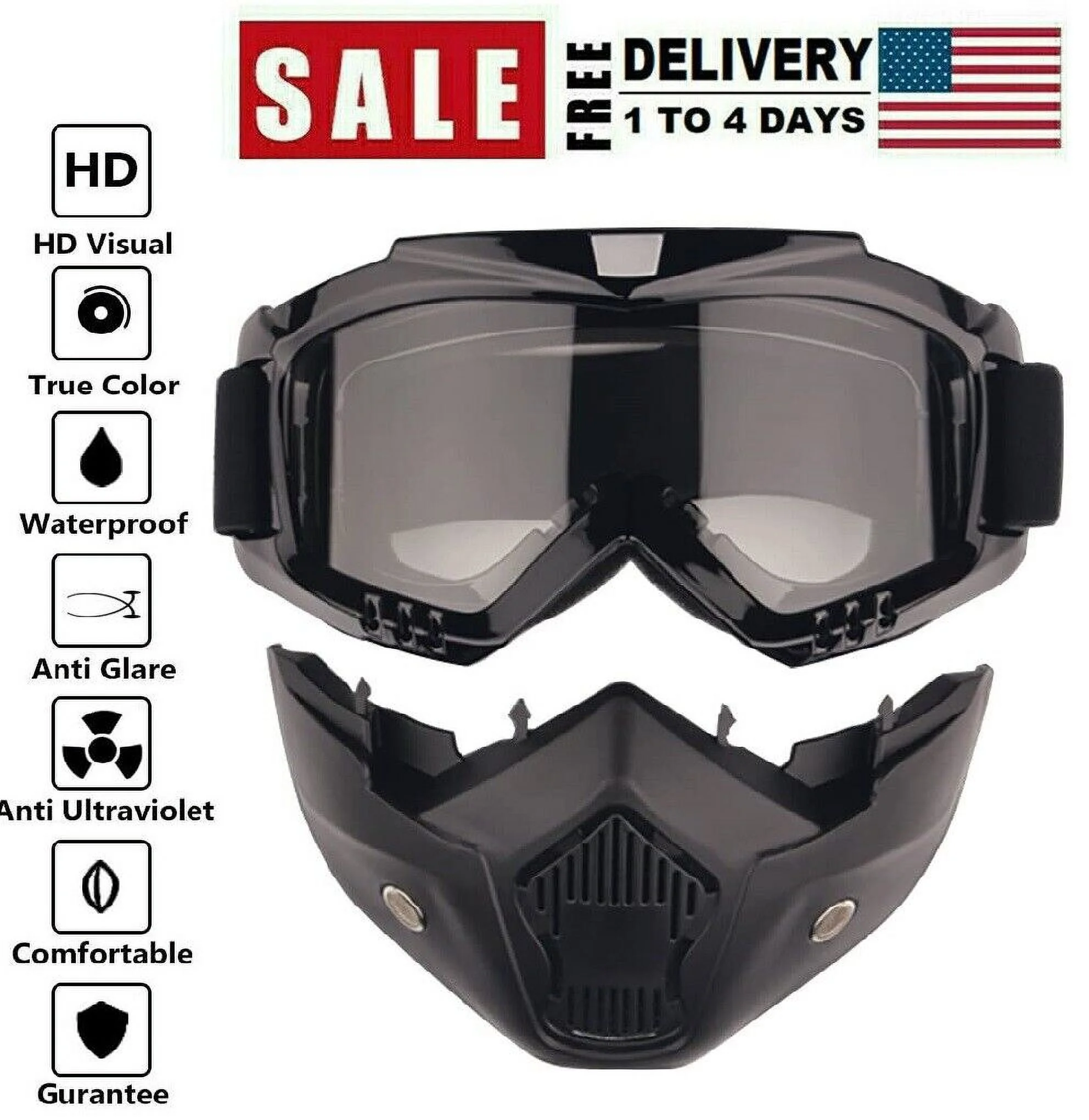 Motorcycle Detachable Face Mask Goggles Motocross Dirt Bike ATV Off-Road Eyewear - Curated Treasures Market