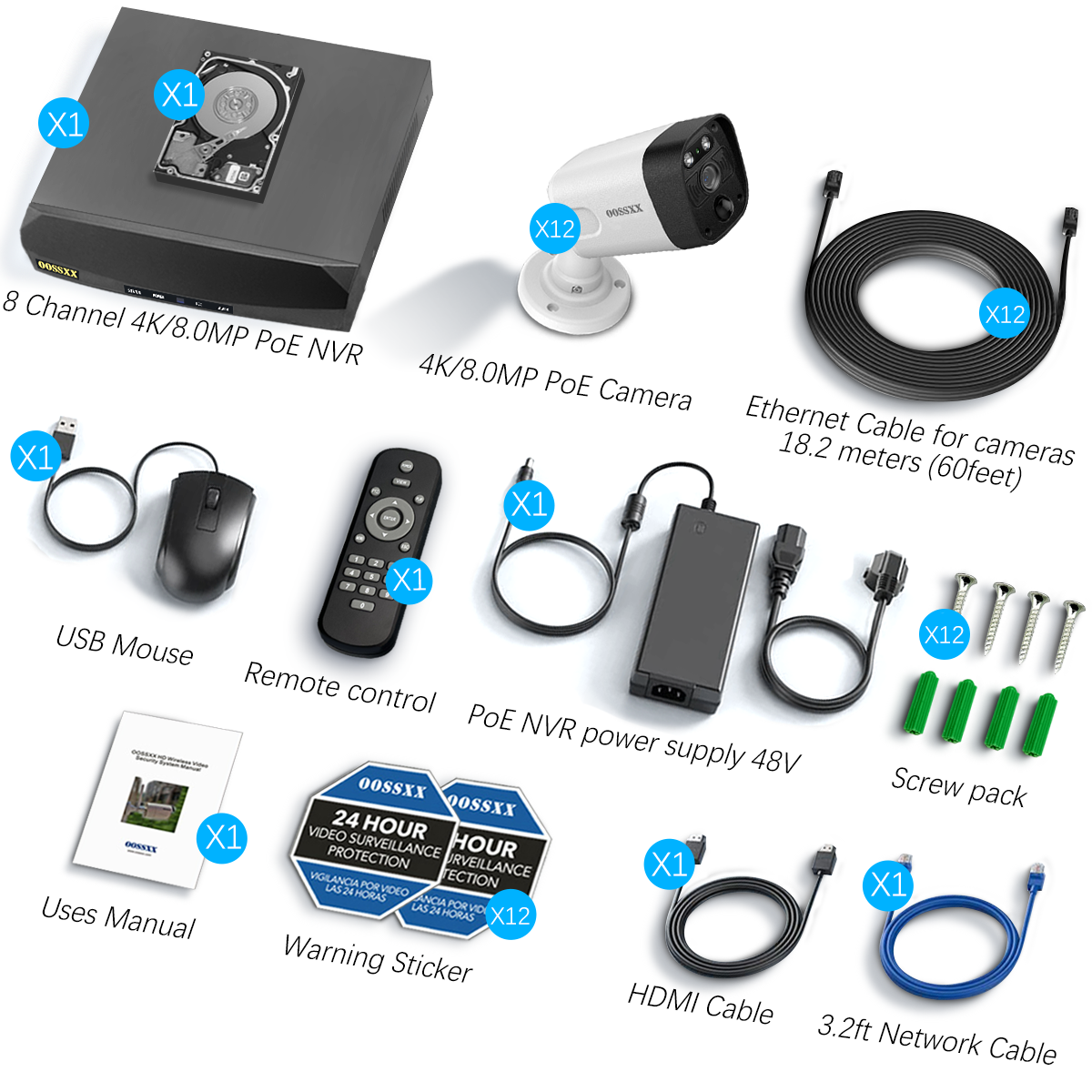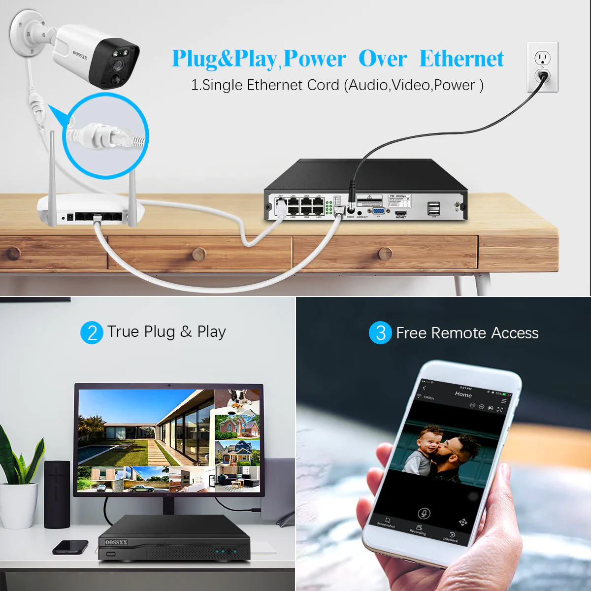 OOSSXX 2-Way Audio Megapixel Poe Security Camera System,4K Hardwired Outdoor Cameras with Motion Detection - Curated Treasures Market