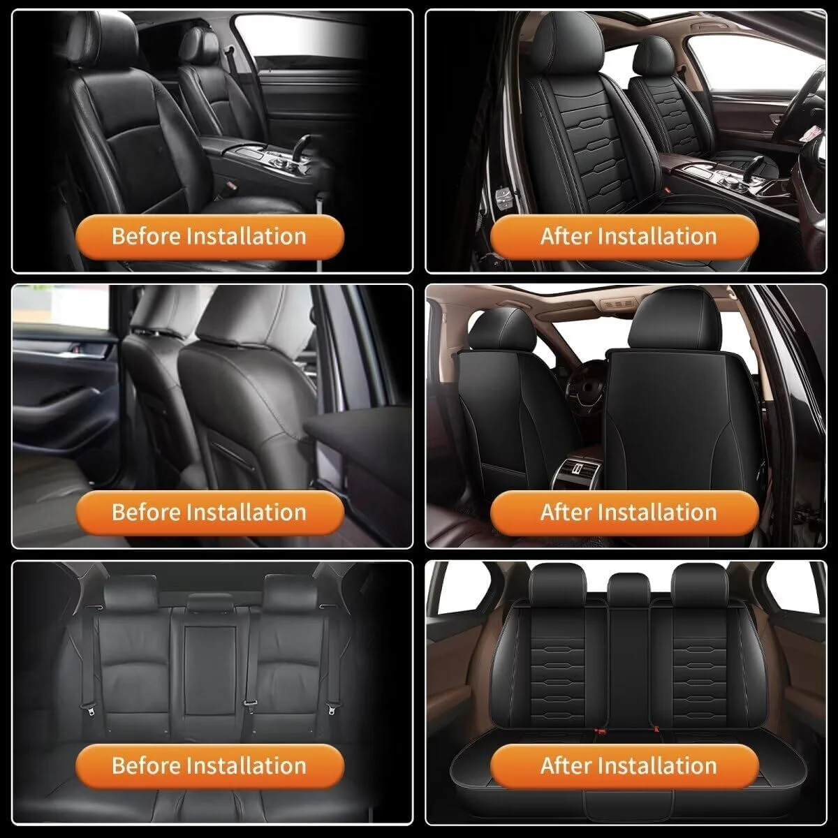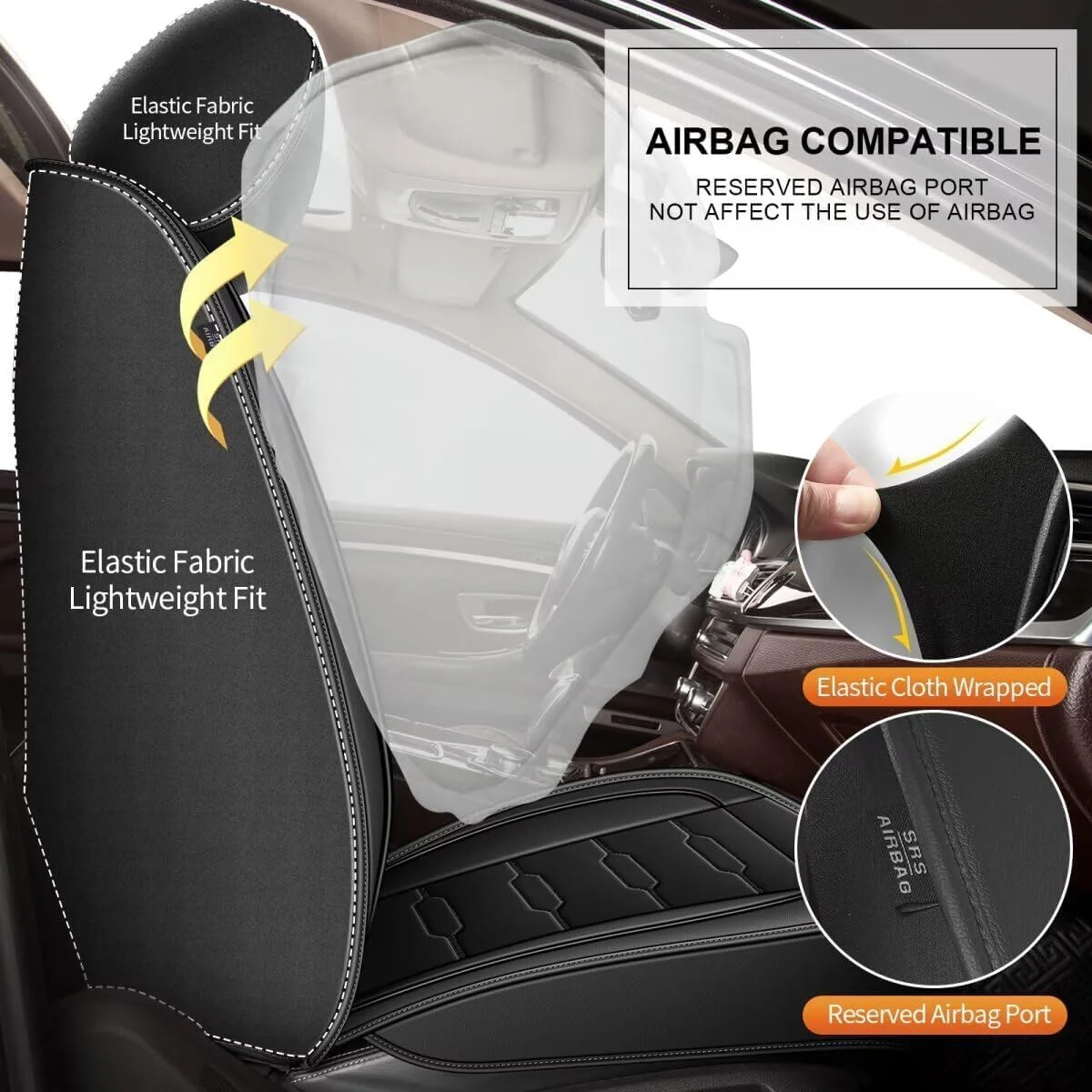 AOMSAZTO Full Set Car Seat Covers Fit JEEP Wrangler 4 Door 2008-2024 Faux Leather Seat Cover 2 Rows 5 Seats Waterproof Anti-Slip Car Cushion Vehicle Accessories (Black Line) - Curated Treasures Market
