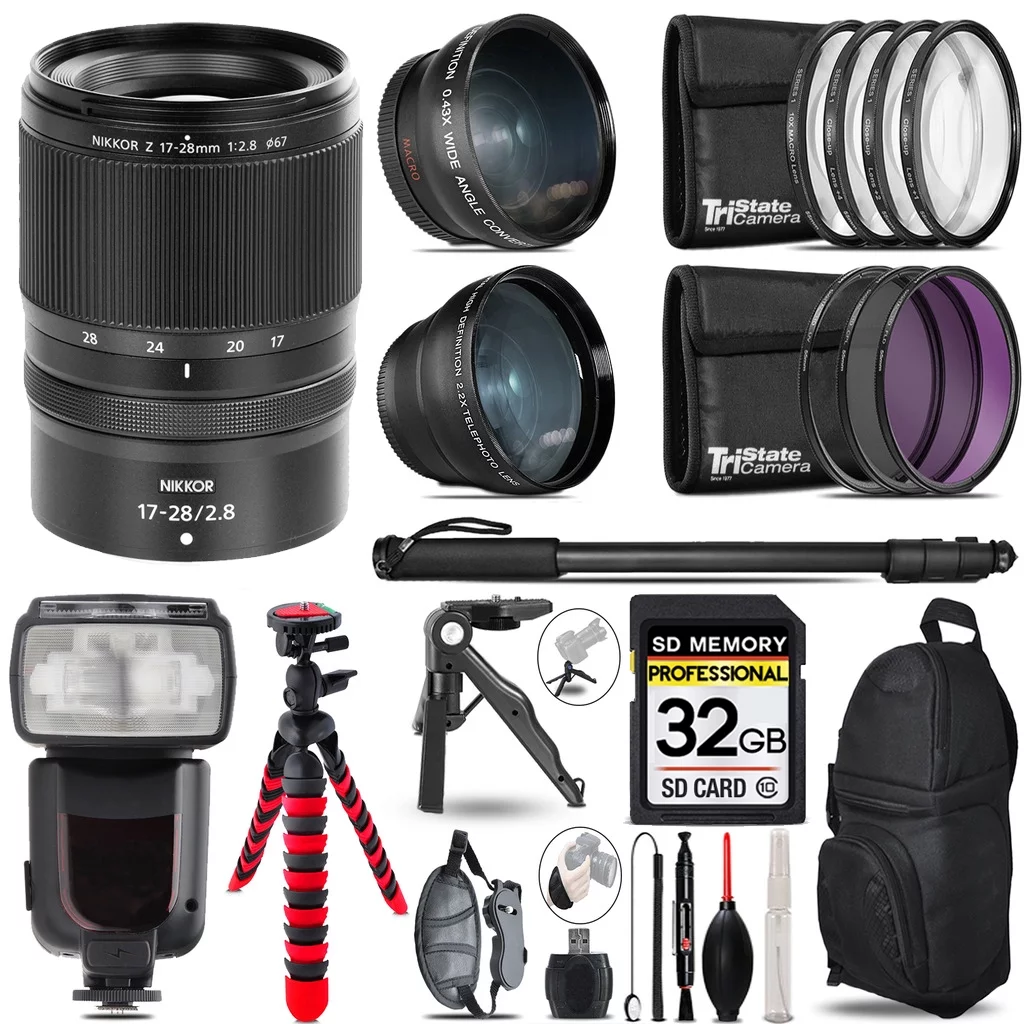 Nikon NIKKOR Z 17-28mm f/2.8 Lens- 3 Lens Kit + Professional Flash - 32GB Accessory Bundle - Curated Treasures Market