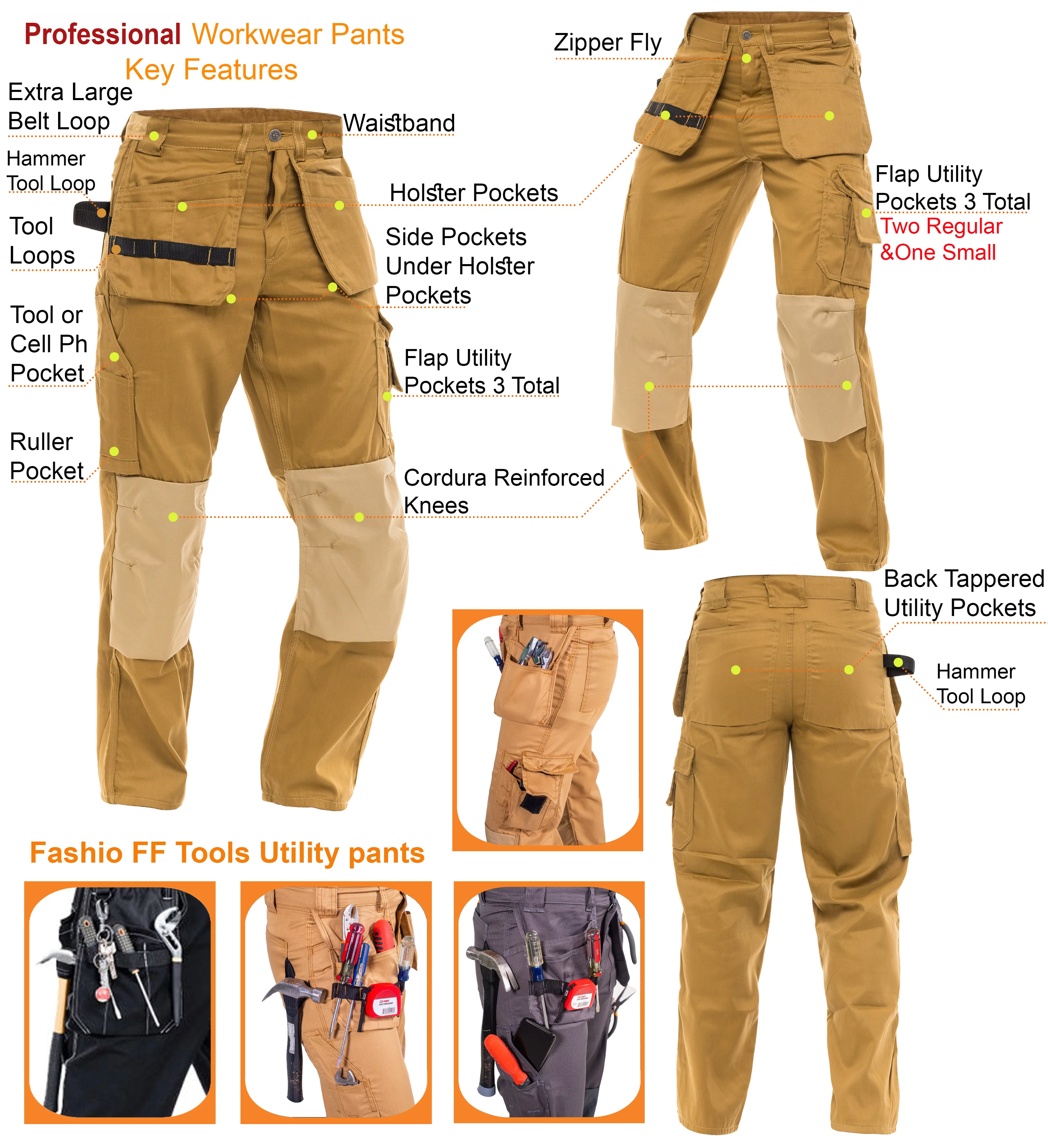 Skylinewears Men cargo pants Workwear Trousers Utility Work Pants with Cordura Knee Reinforcement Khaki W30-L30 - Curated Treasures Market