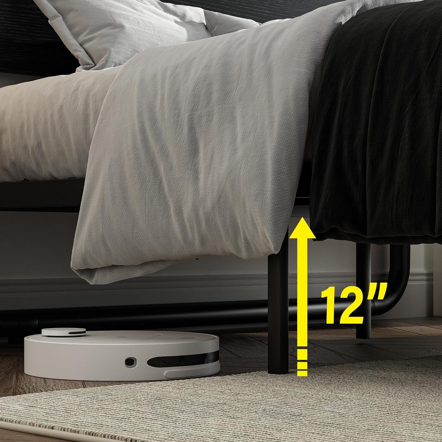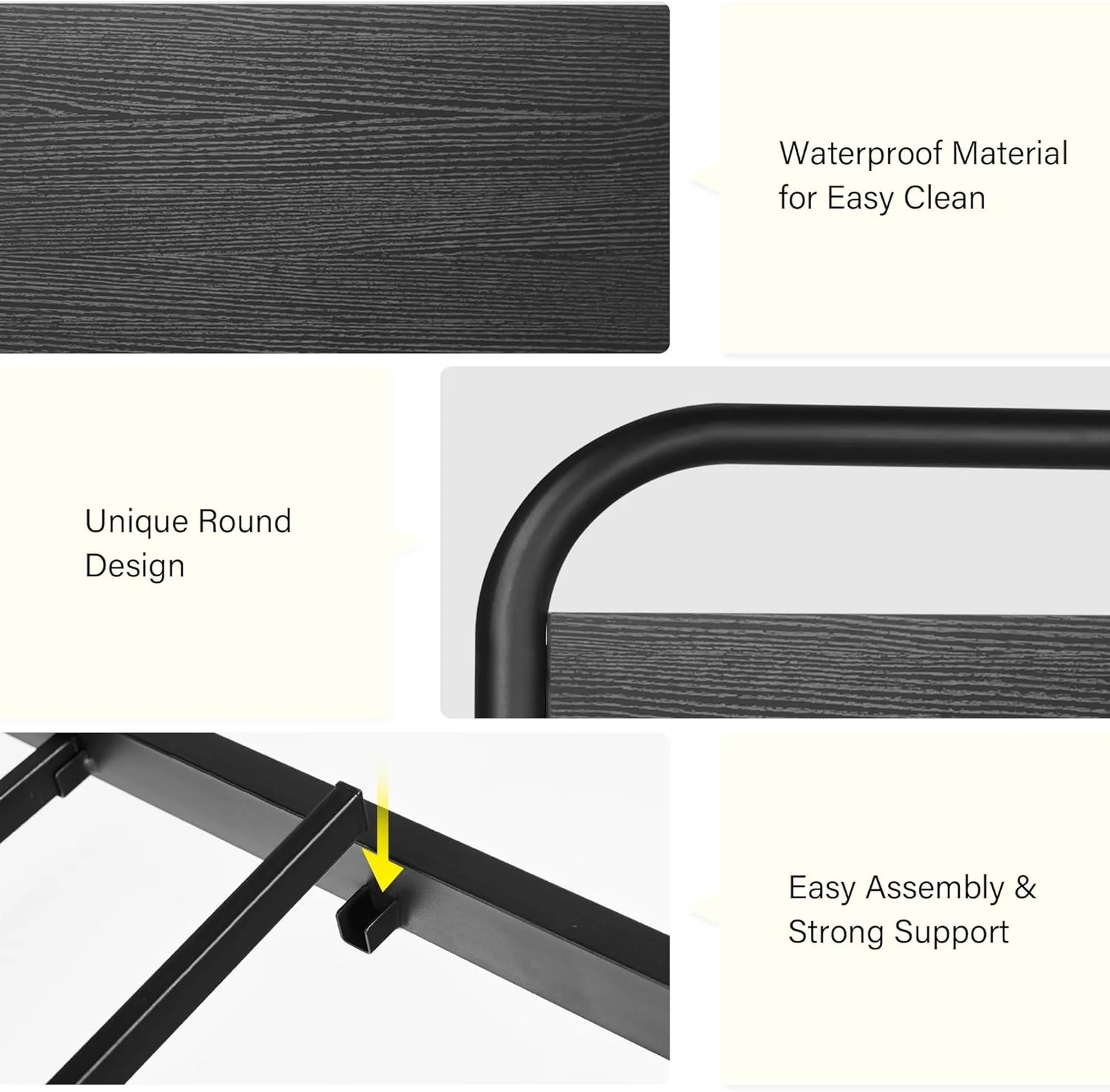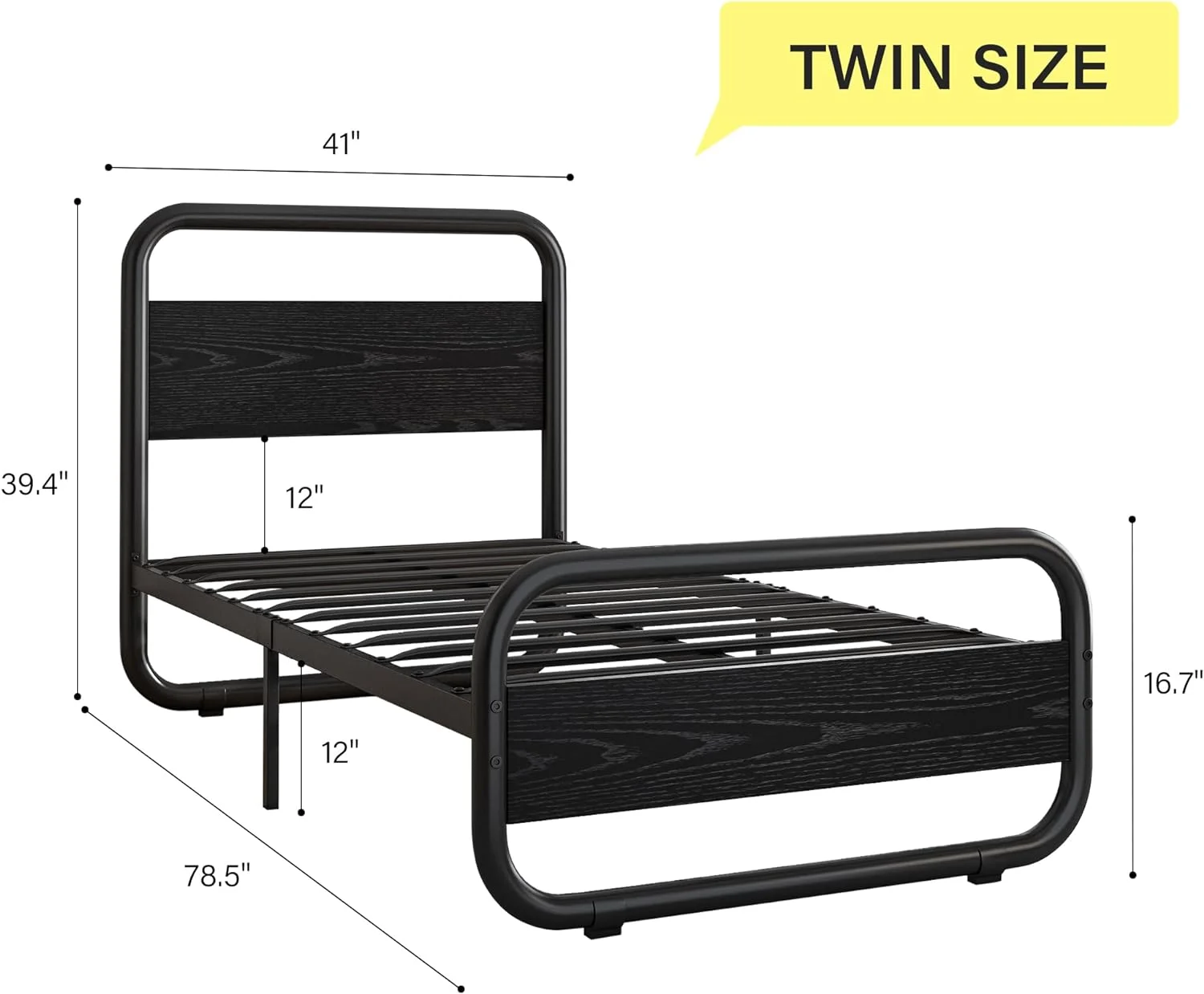 4 EVER WINNER Twin Size Bed Frame with LED Light Headboard, LED Platform Metal Bed Frame with Rustic Wooden Headboard, Black - Curated Treasures Market
