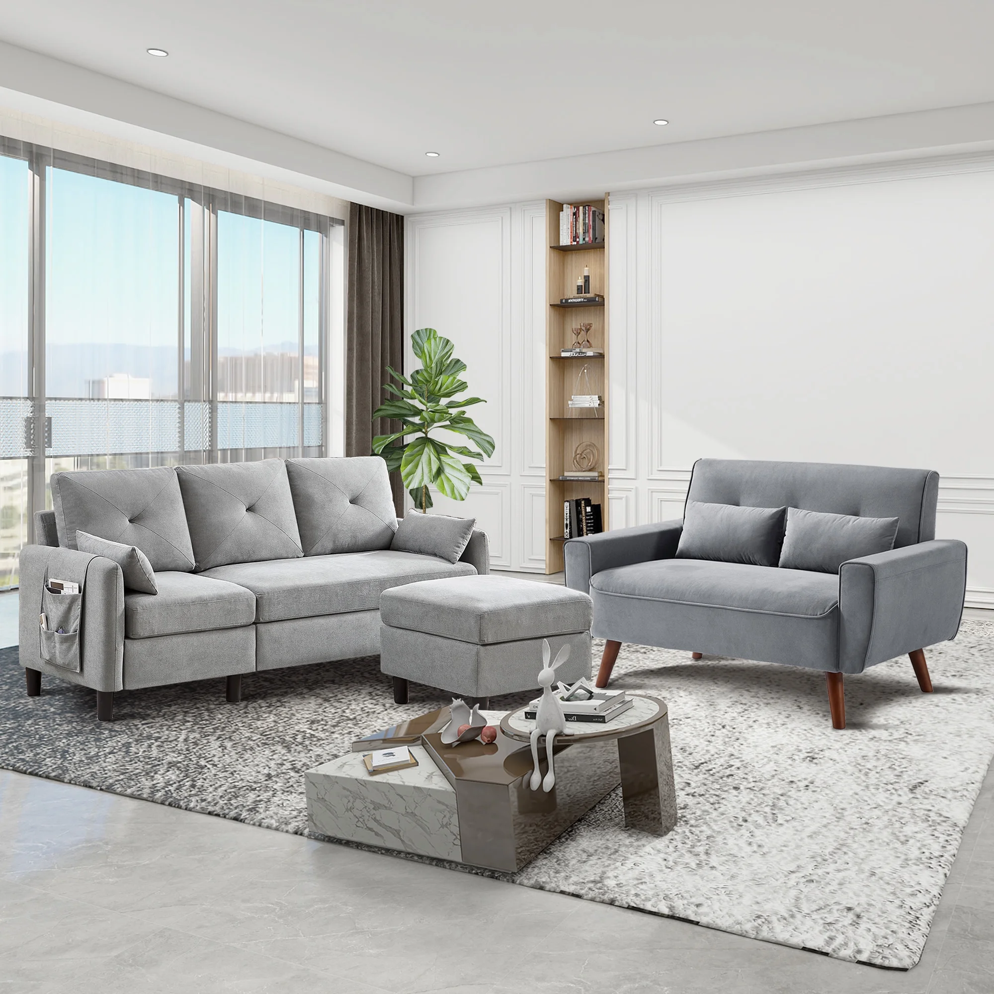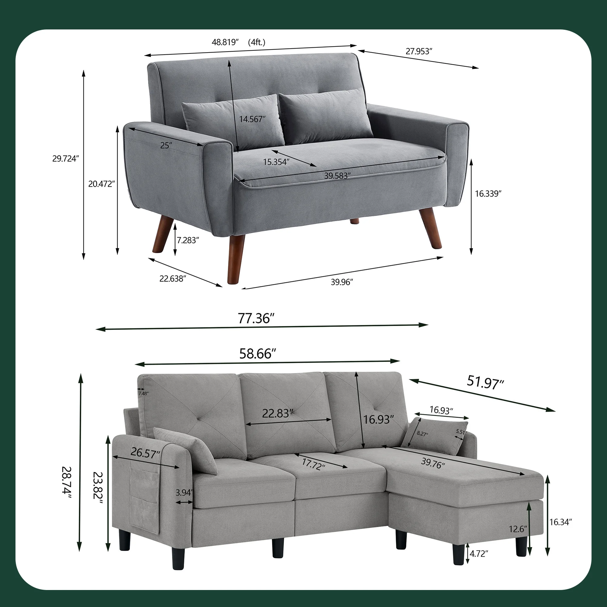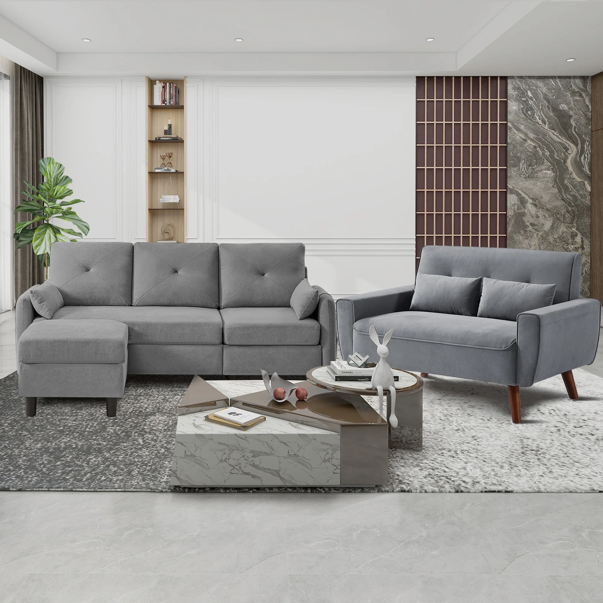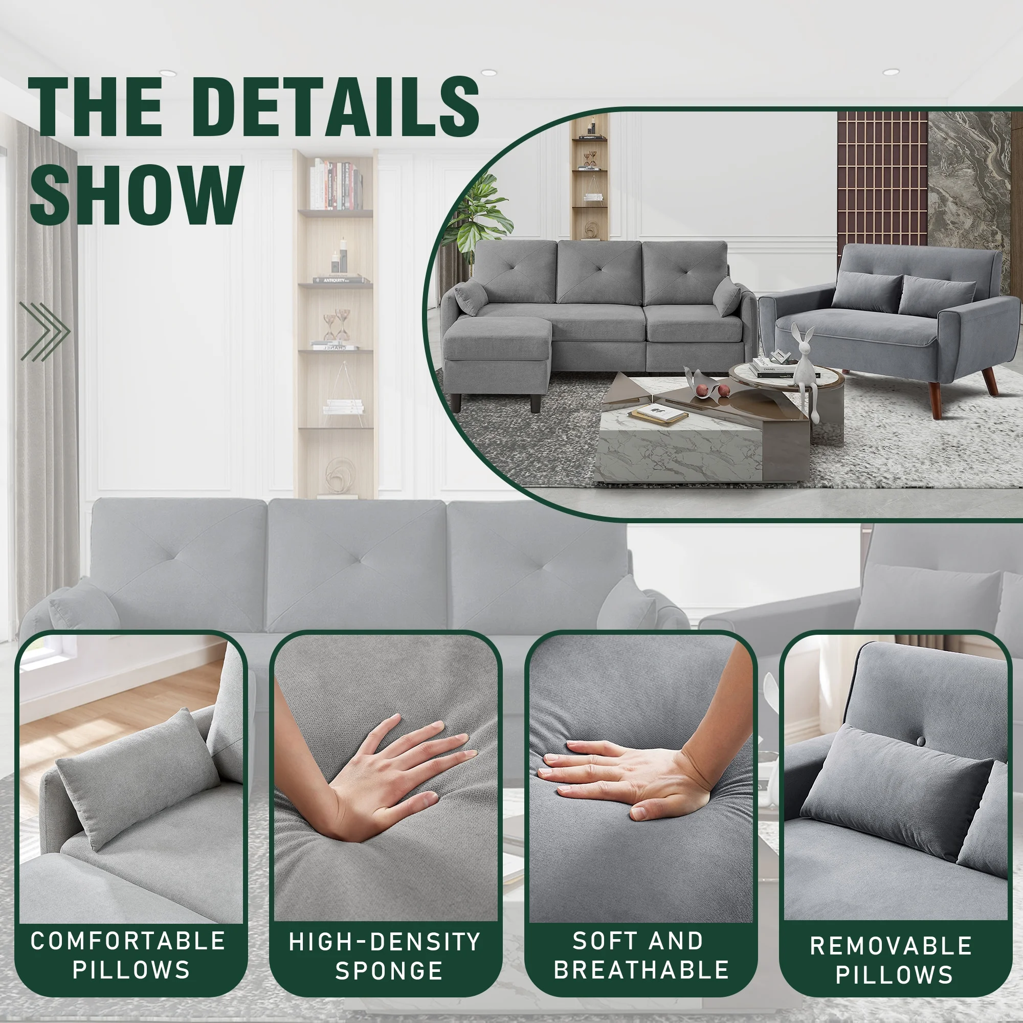 79" Convertible Sectional Sofa Set, Small L Shaped 3-Seat Couch with Reversible Chaise and Accent Chair, Modern Linen Sofas Couches for Living Room, LightGrey - Curated Treasures Market