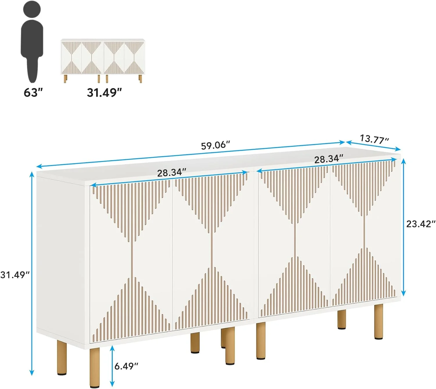 Tribesigns Classic 59" Modern Storage Cabinet Set, Wood Sideboard with Doors, White - Curated Treasures Market