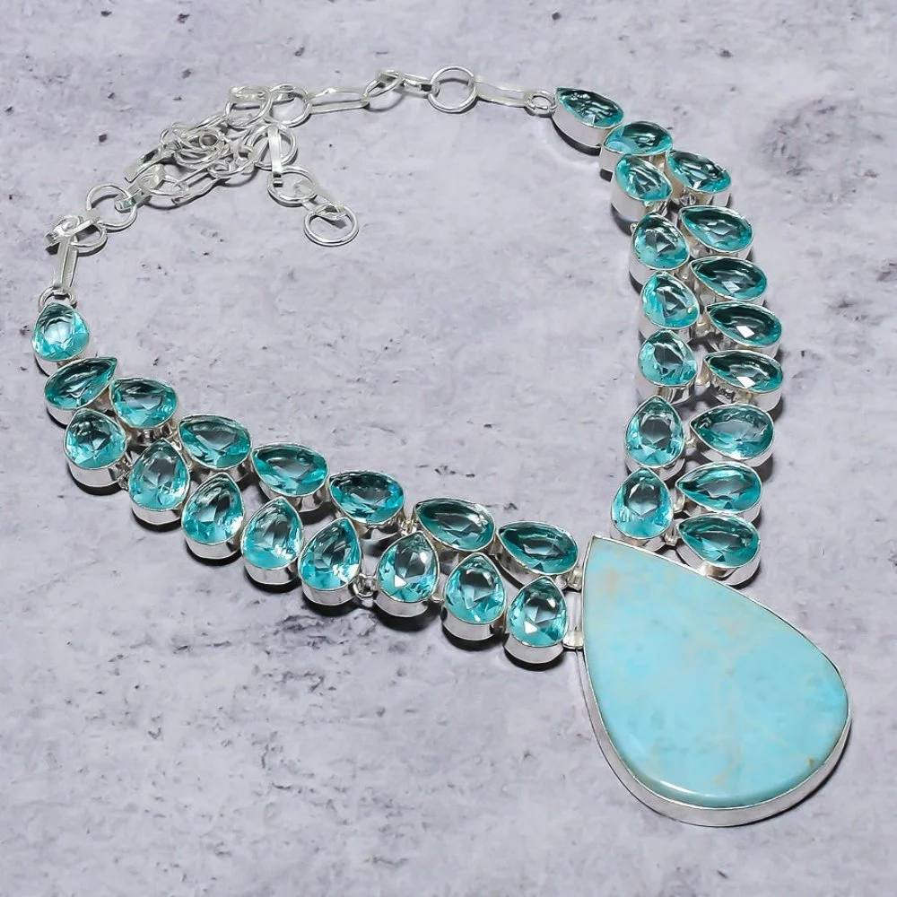 Natural Caribbean Larimar, Blue Topaz 925 Sterling Silver Necklace 18" - Curated Treasures Market