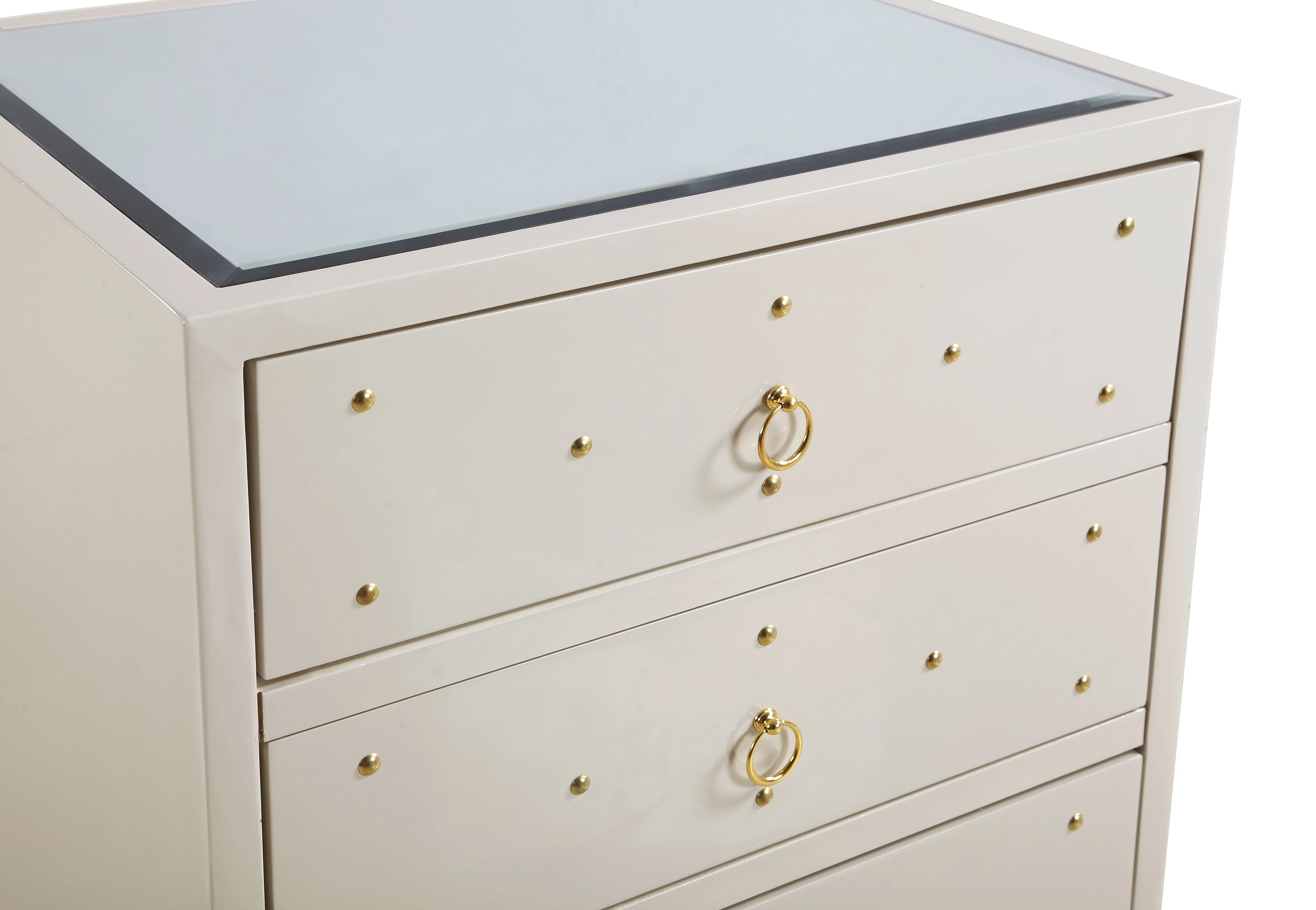 Chic Home Arezzo Nightstand Side Table Mirror Glass Top with 3 Self Closing Drawers - Curated Treasures Market