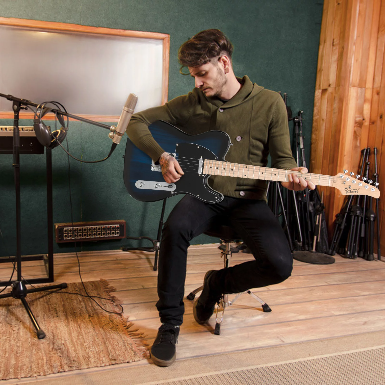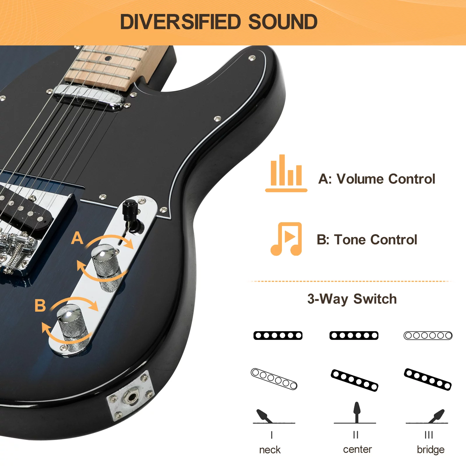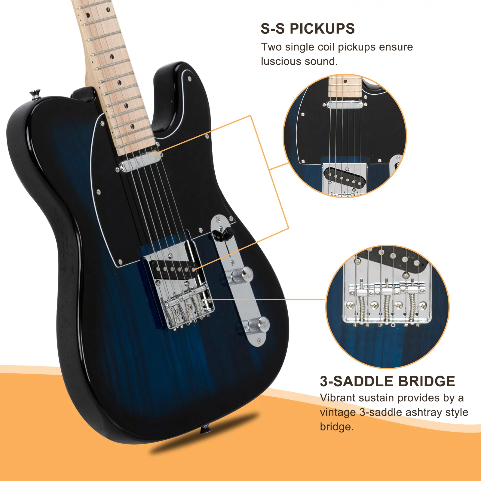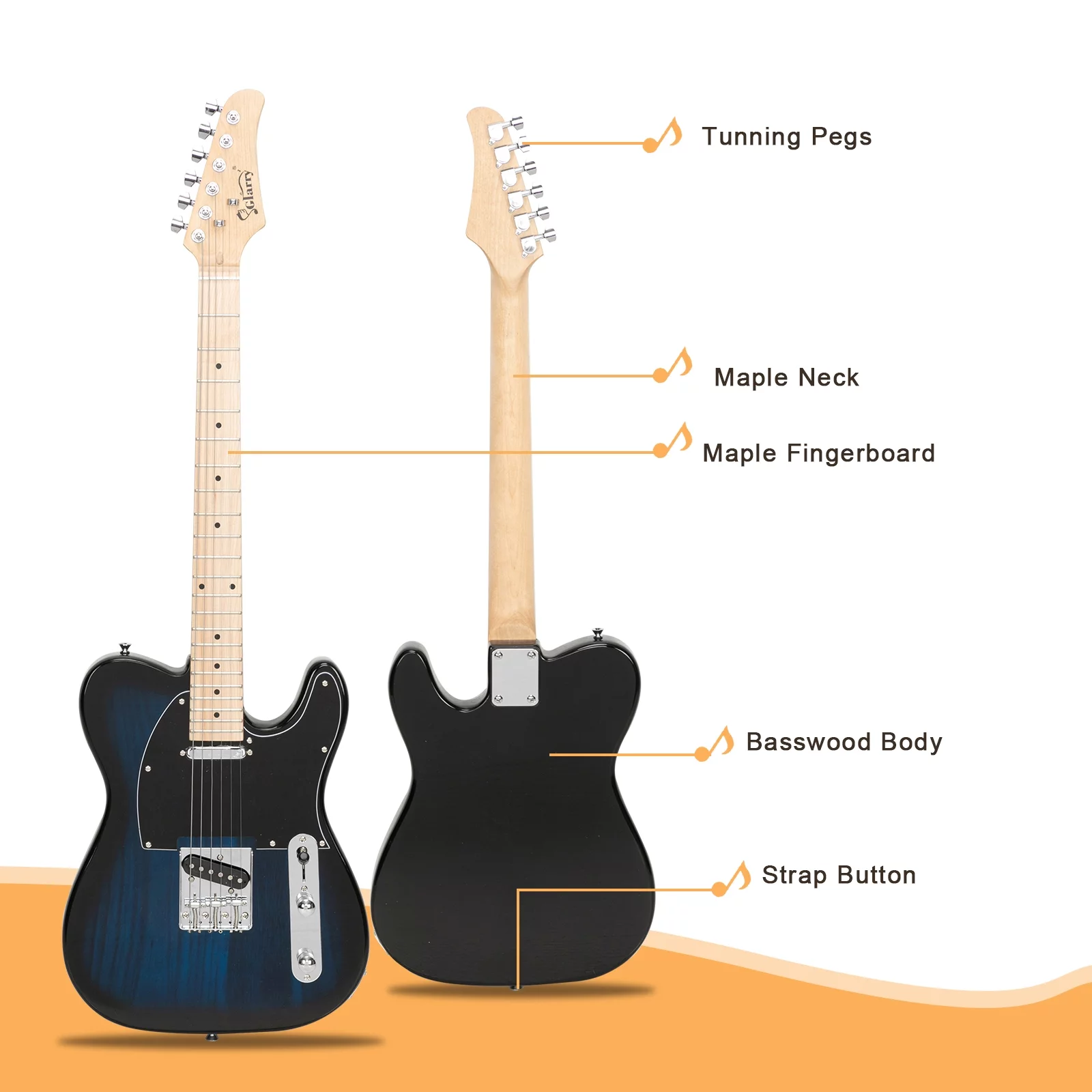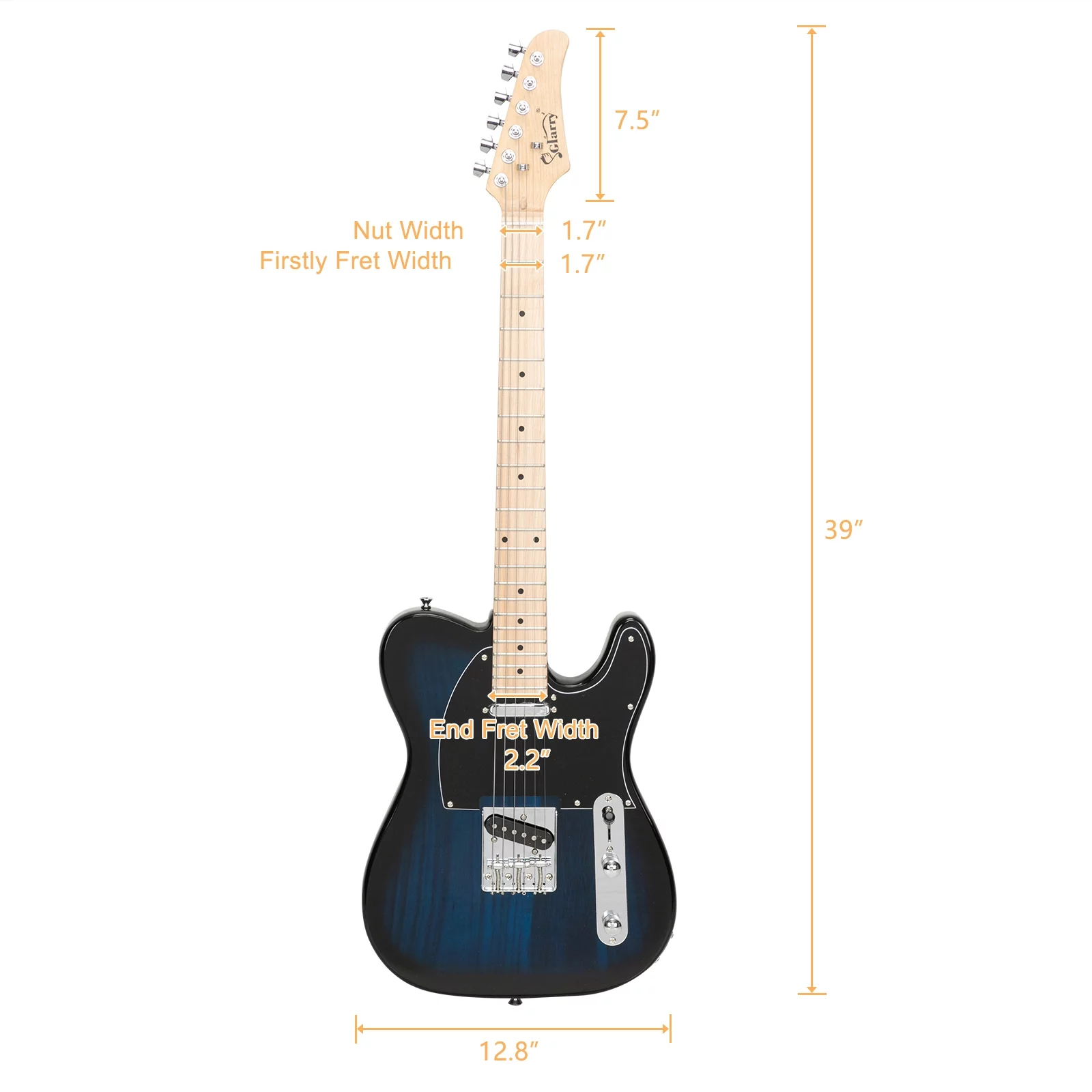 GLARRY 39" GTL Electric Guitar Solid Body Maple with Bag Beginner Dark Blue - Curated Treasures Market