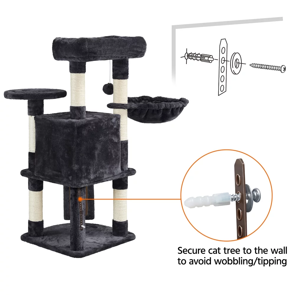 Easyfashion Professional Cat Tree Plush Tower with Basket for Small Kittens, Indoor, Black - Curated Treasures Market