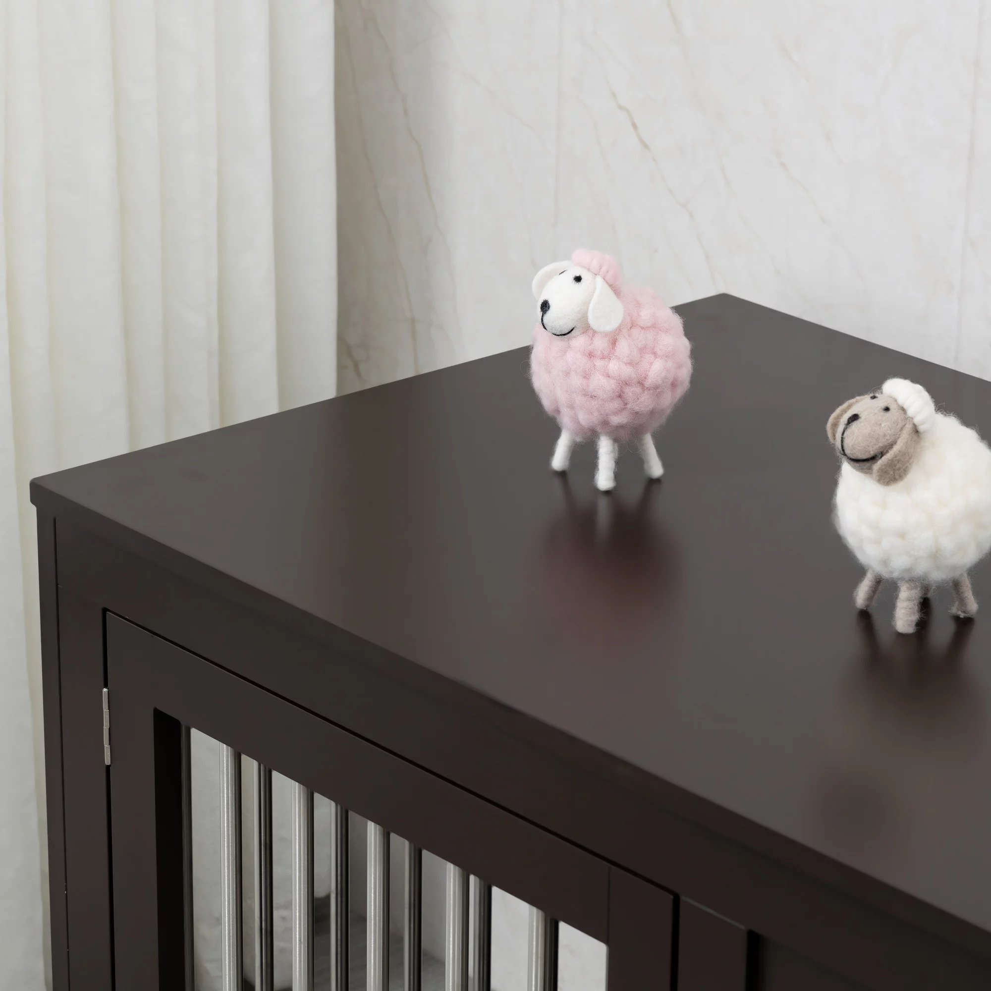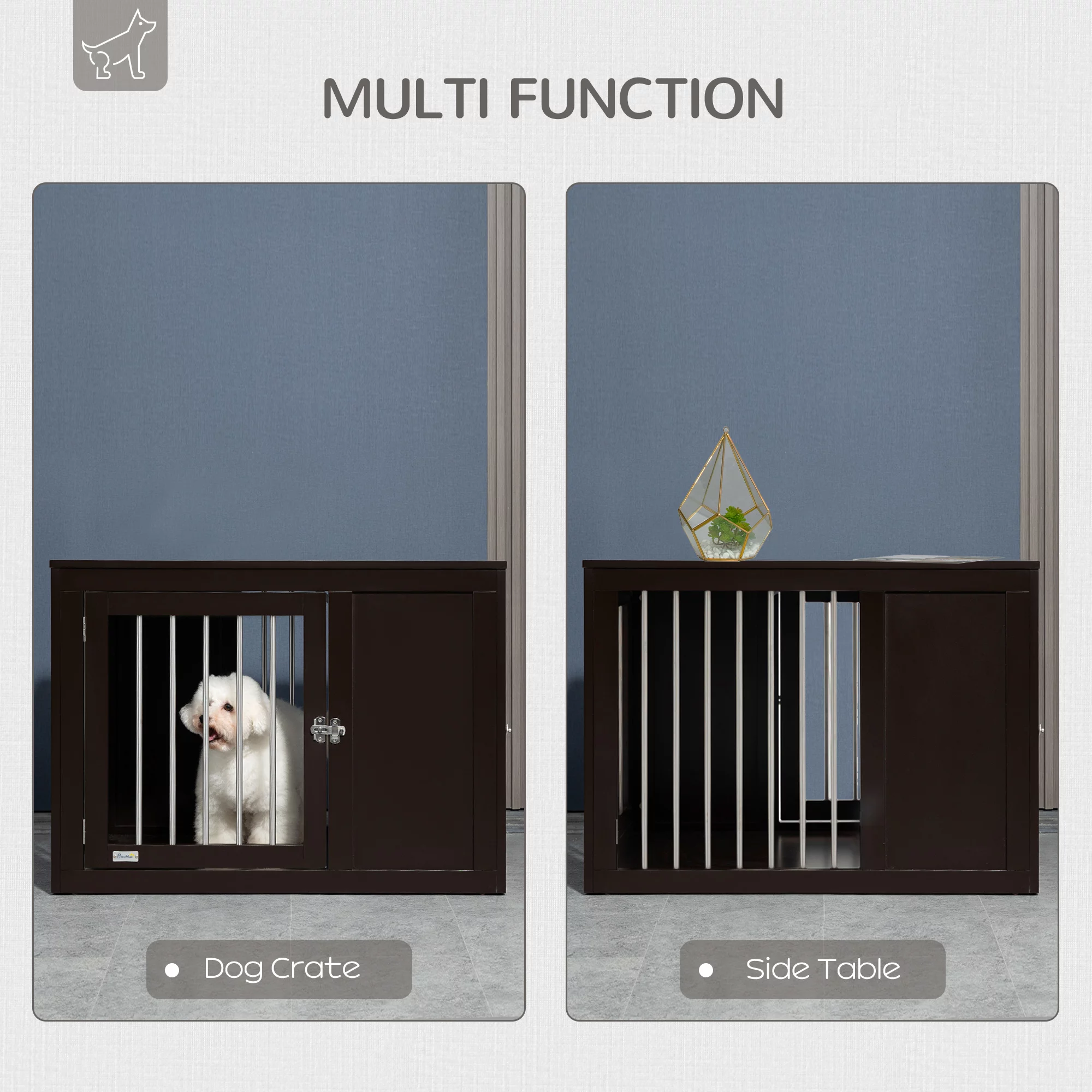 Pawhut Wooden Dog Crate Furniture Wire Pet Cage Kennel, End Table with Double Doors, and Locks, for Medium and Large Dog House Indoor Use, Coffee - Curated Treasures Market